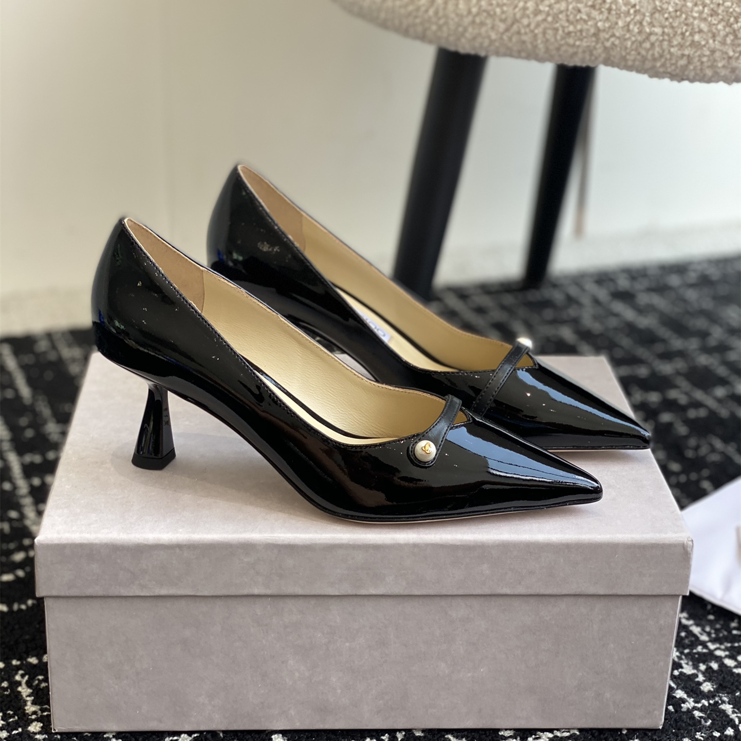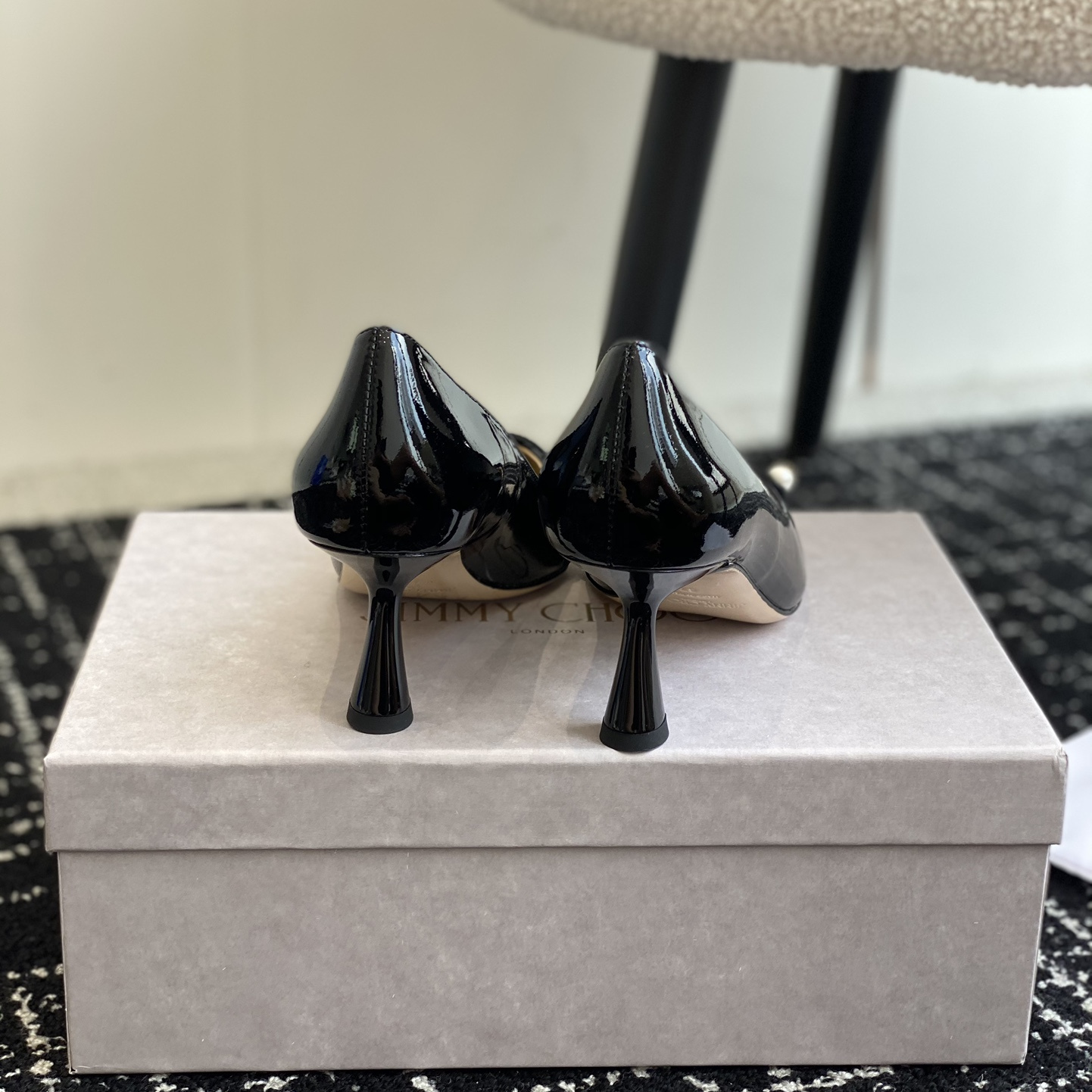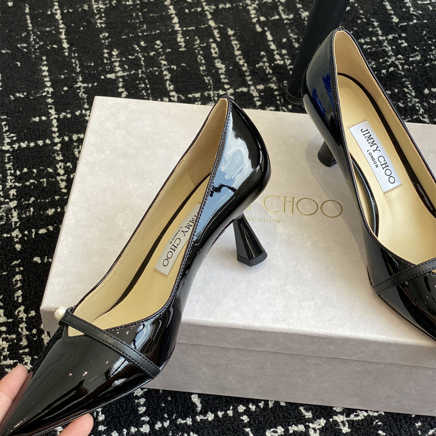 高仿JimmyChoo*ROSALI6水晶漆皮高踭鞋黑色6.5CM免檢版
