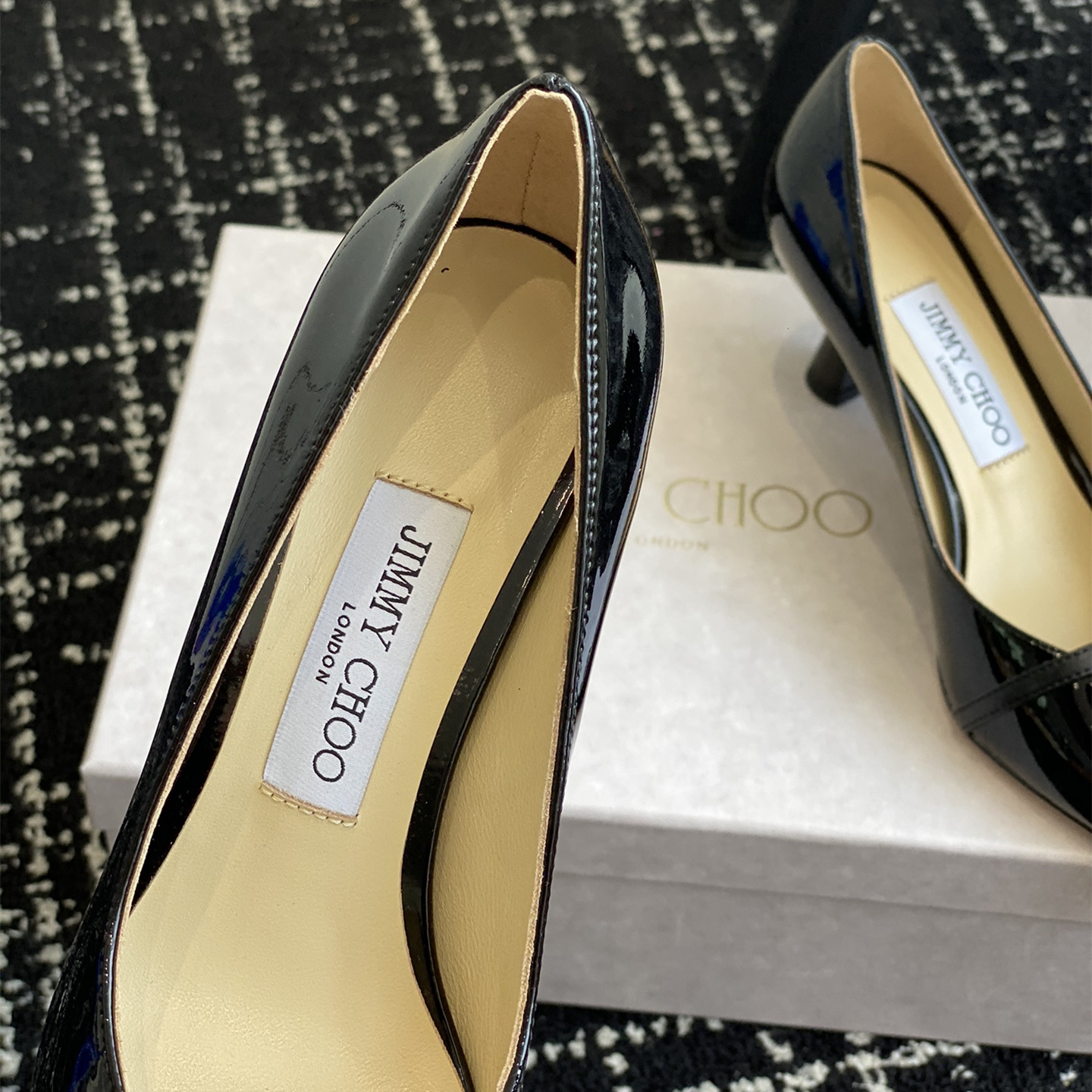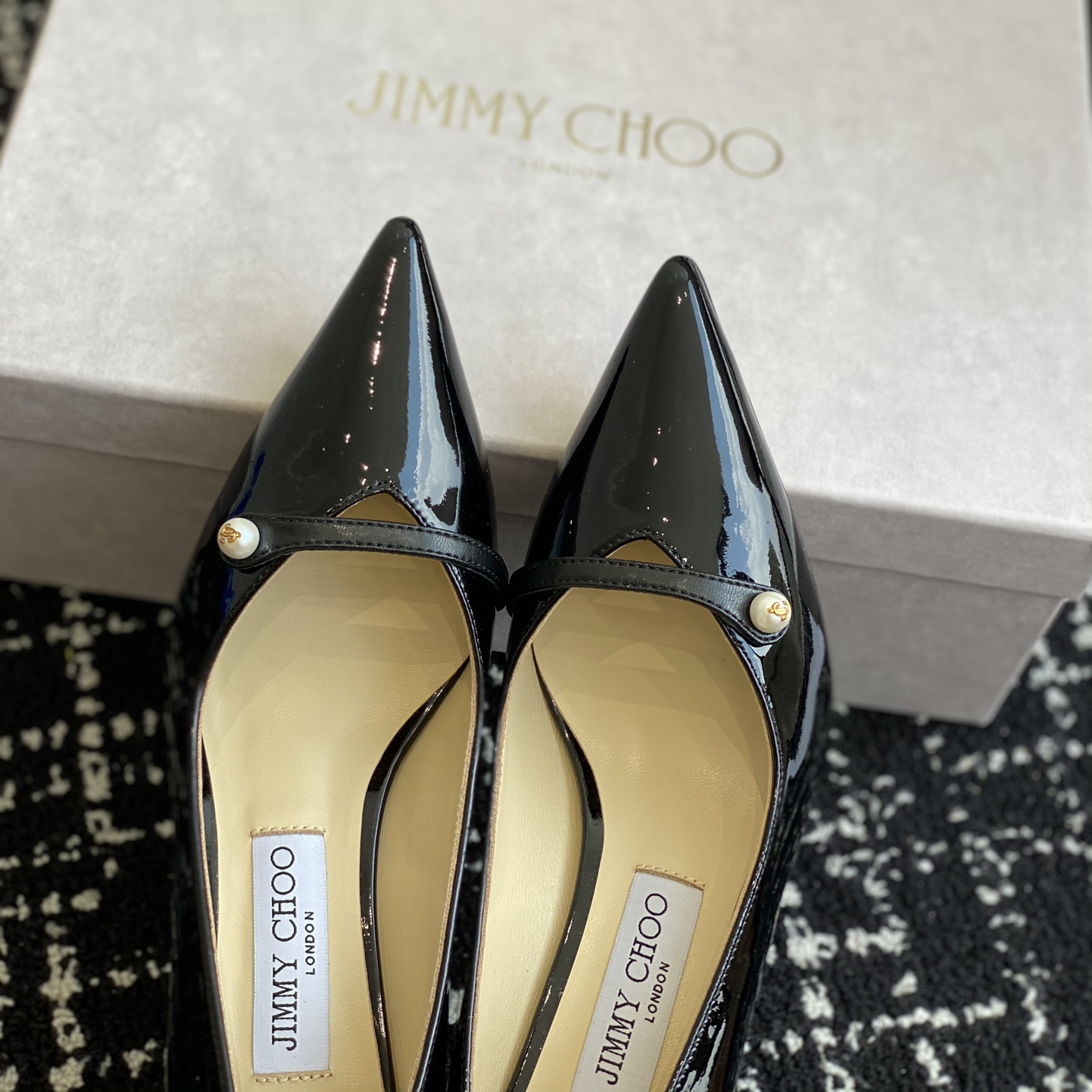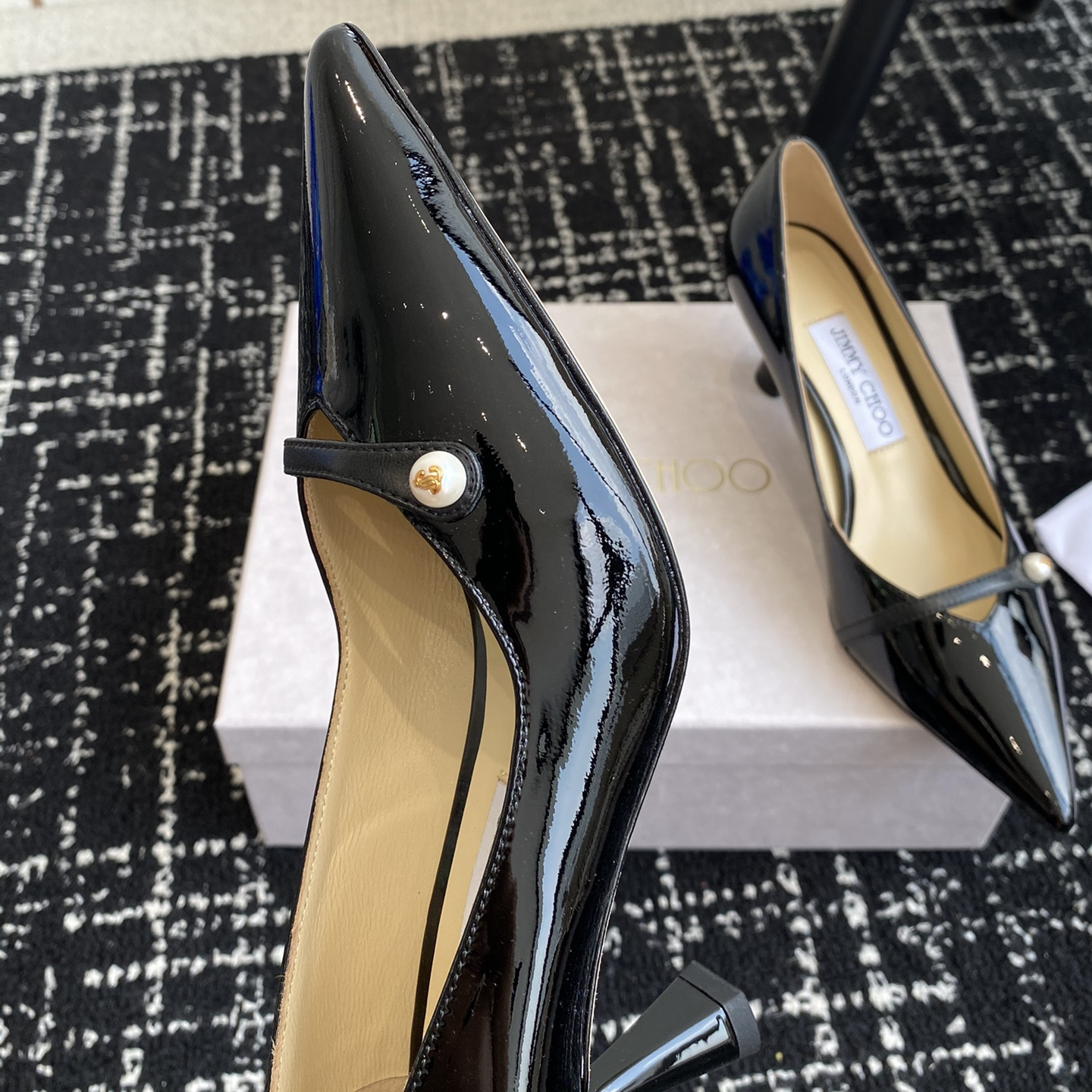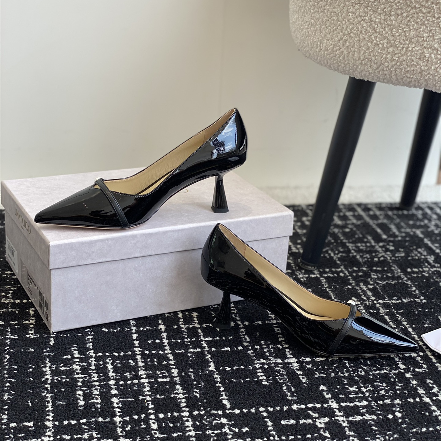 高仿JimmyChoo*ROSALI6水晶漆皮高踭鞋黑色6.5CM免檢版