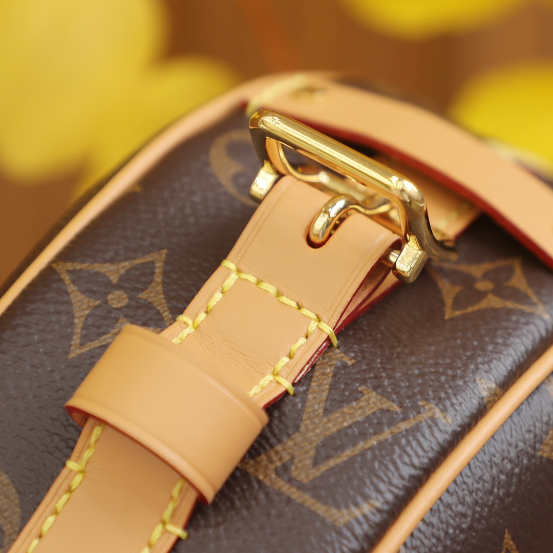 一整張帆布的裁剪到圓邊型的弧度採用真皮革包邊處理,精緻且圓潤的包體感完美呈現.正面部分配備了專屬縫製的皮革LOGO.不難看出純手工的縫製斜線設計,對比原版基本做到無差別的工藝.肩帶與金屬扣具的高品質材質,1:1精度還原,高仿LV圓餅包值得擁有的是性價比.