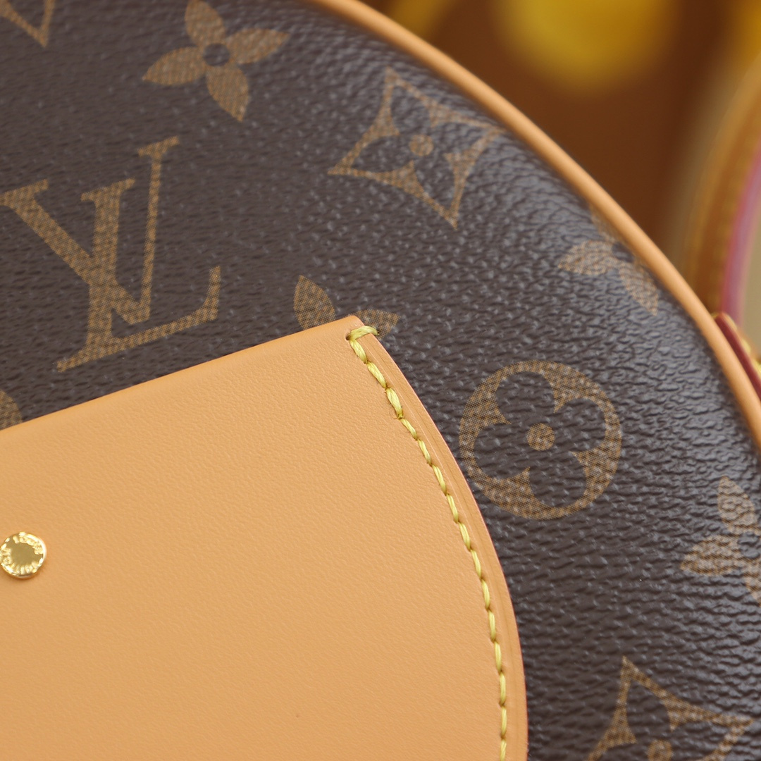 繼承了傳統高仿A貨的品質,原單LV圓餅包所使用到的材質均為法國進口Monogram帆布和源皮革,並非市面上劣質版本使用的人造皮革,異味大並且手感與專櫃不一致.這一隻圓餅包的製作工藝詮釋了頂級原單A貨的高端品質,純手法縫合的細節處理更加突顯標準質檢規格.
