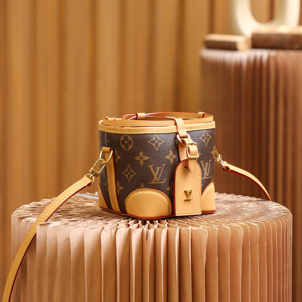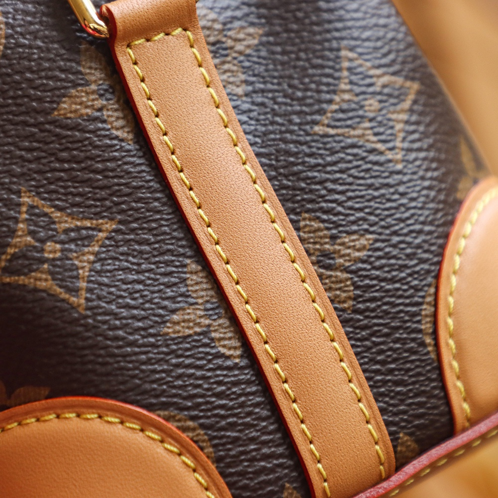 爆款斷貨王高仿LV水桶包繼承了原裝正品大小精細工藝,被譽為小燒麥的水桶包精緻小巧是眾多女士愛不釋手的首選包形.即便是單肩或者是後背日常使用非常方便.而針對小型包體的製作頂級復刻LV經過純手工製作還原專櫃品質,每一處的帆布印花相對應同步沒有任何誤差.