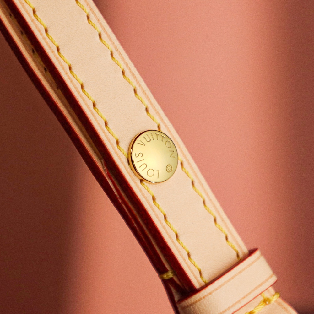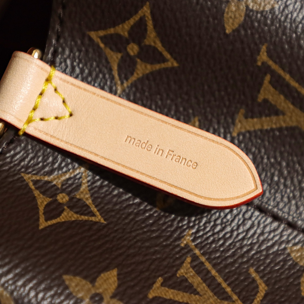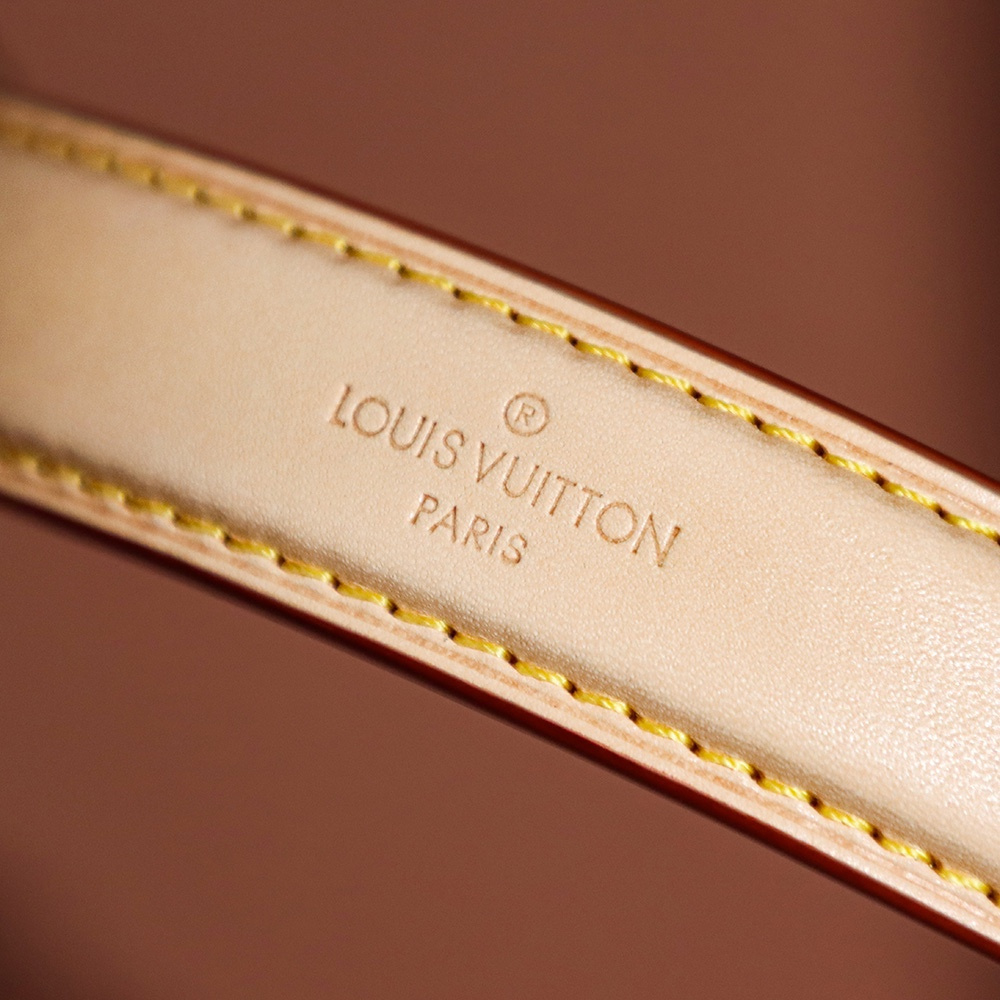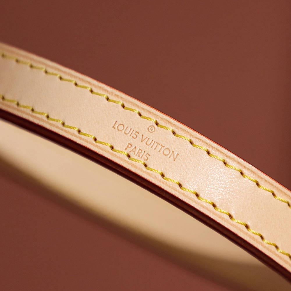 包口設計為束口形狀,弧度把控恰到好處.原單LV水桶包展現了包底到包口的精準還原.包括Monogram帆布的印花,每一處LOGO在對應的位置上跟正品比對毫無假包缺陷,包括皮穿帆布的扣具孔位同樣也是.純手法製作的高仿包包在細節處理中無限還原,對比原版百分之98.