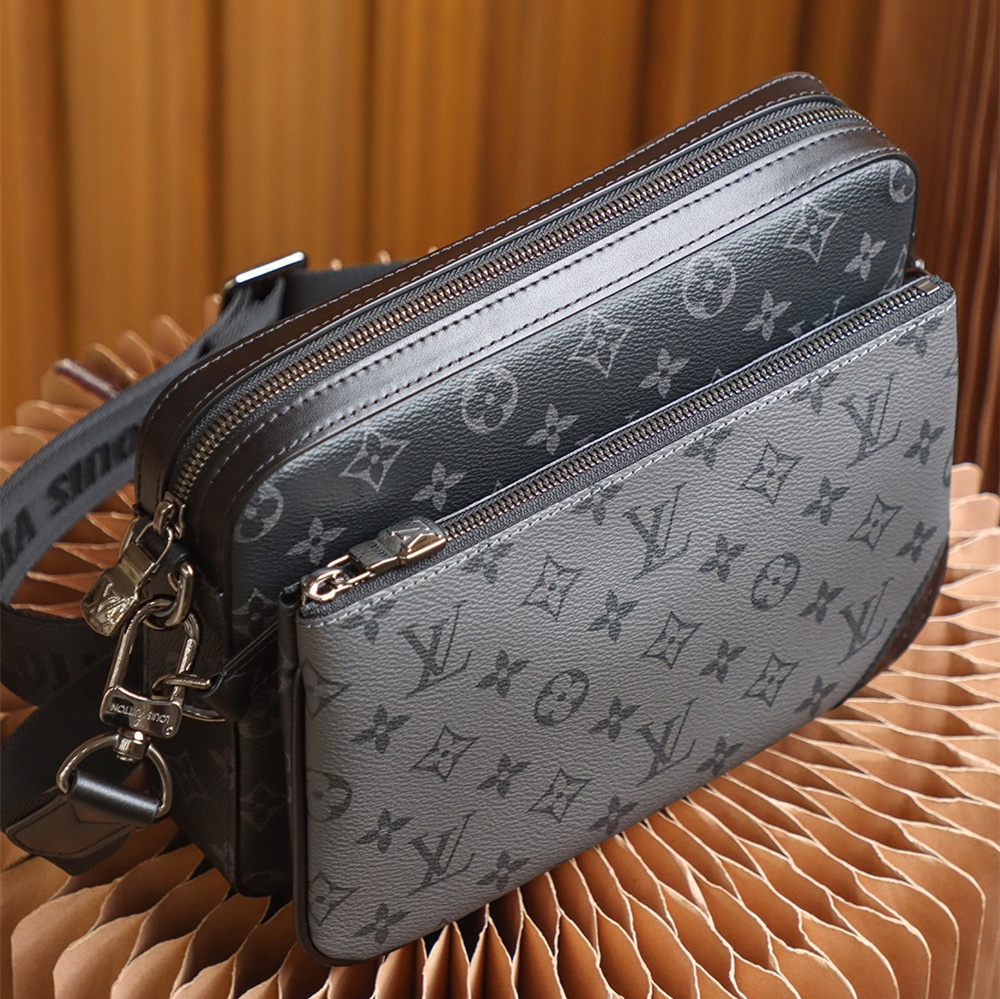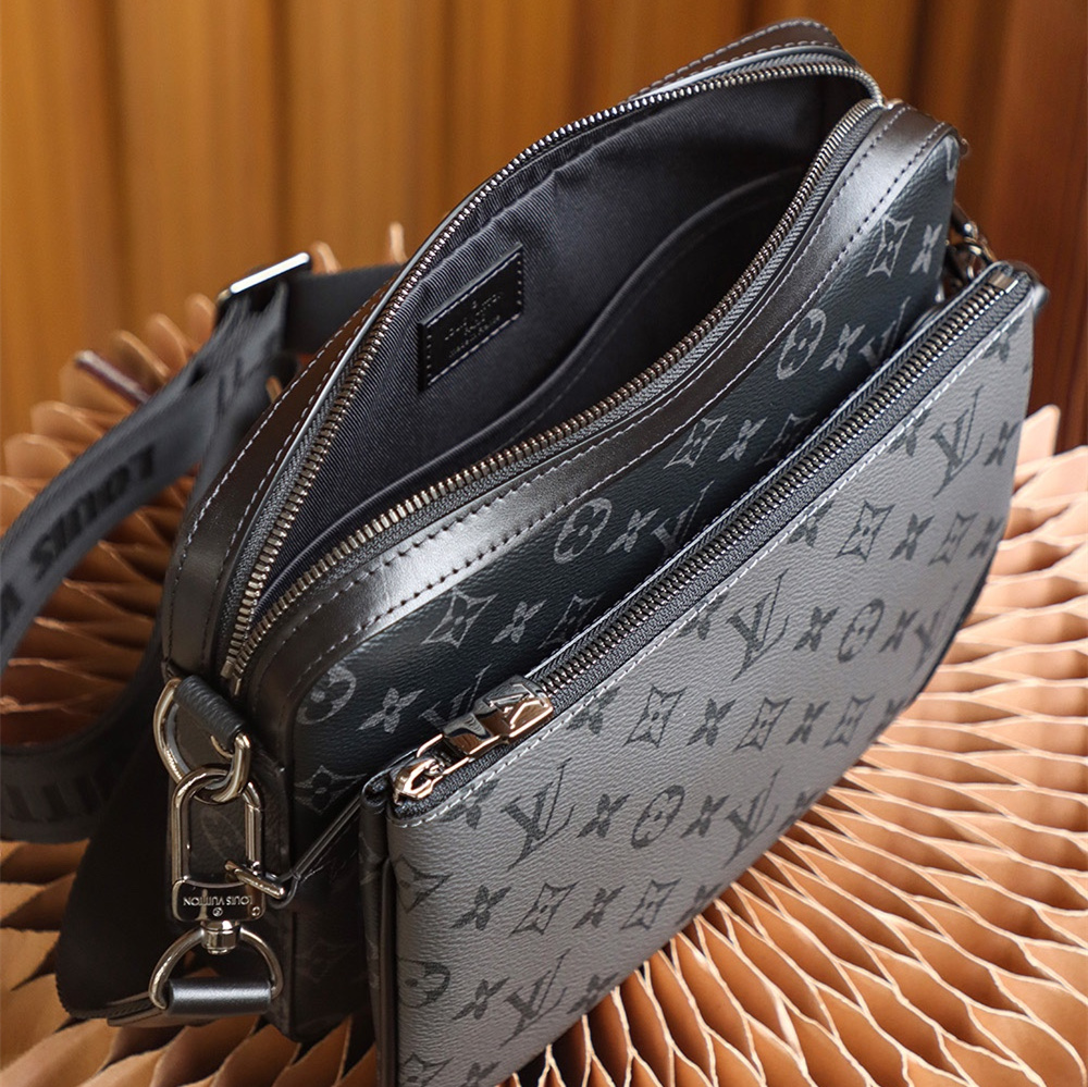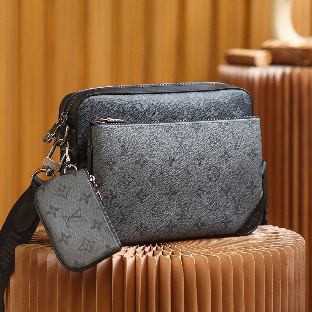 男士首選必入款式三合一高仿LV男包,不僅外觀顏值搭配任意風格,而且實用性也非常高,通勤使用,休閒佩戴,時尚穿搭均可拆卸相關包具進行多種方式攜戴.這一隻黑花帆布純手工製作的LV復刻男包體現了精湛的手藝技術活,同時針對雙色帆布拼接的難度極為講究細節處理,原版開模1:1精準還原整體結構.