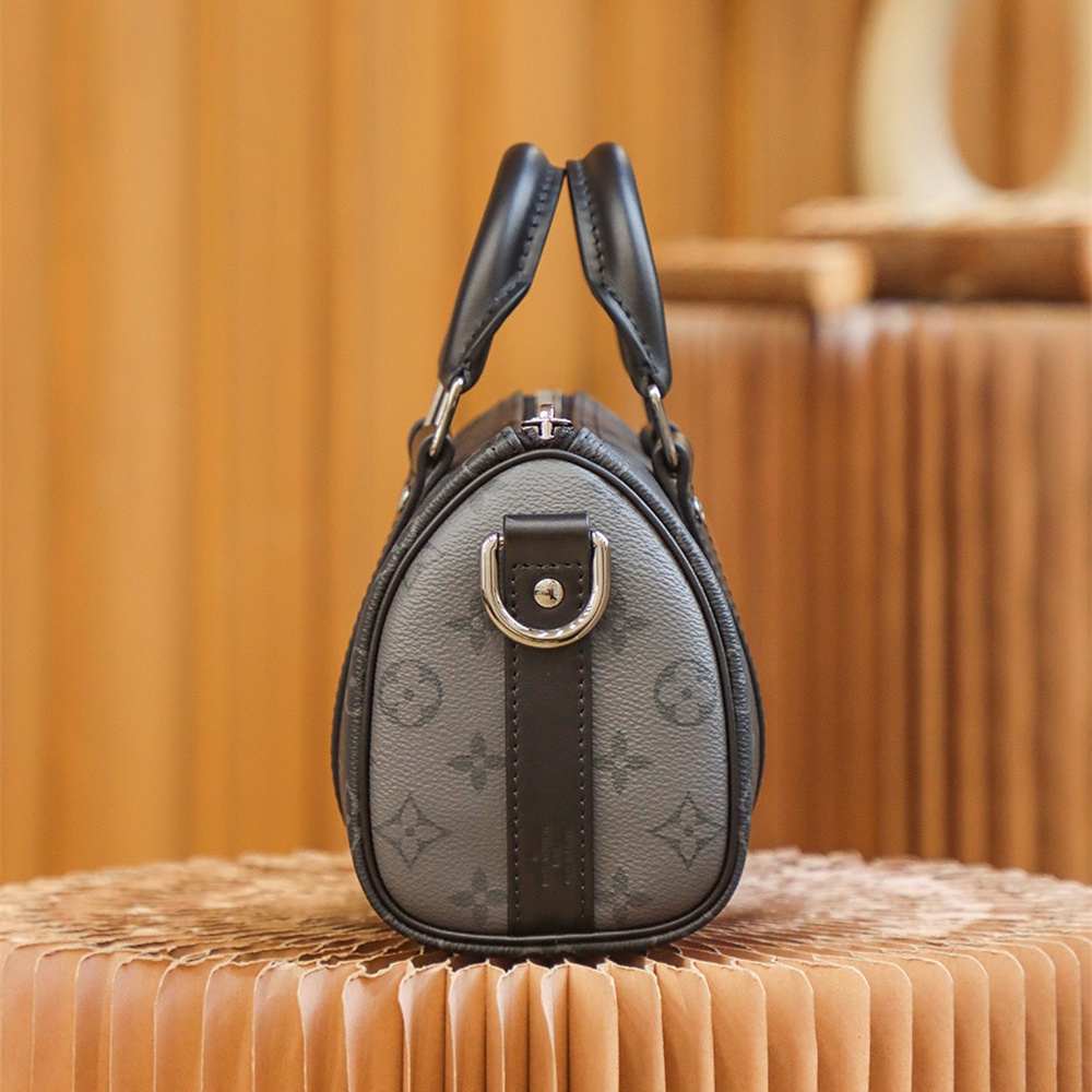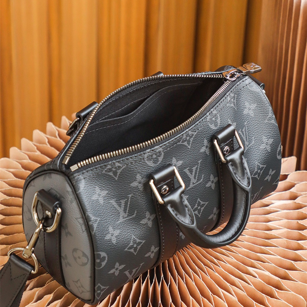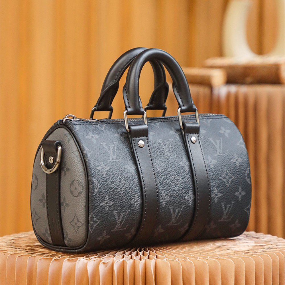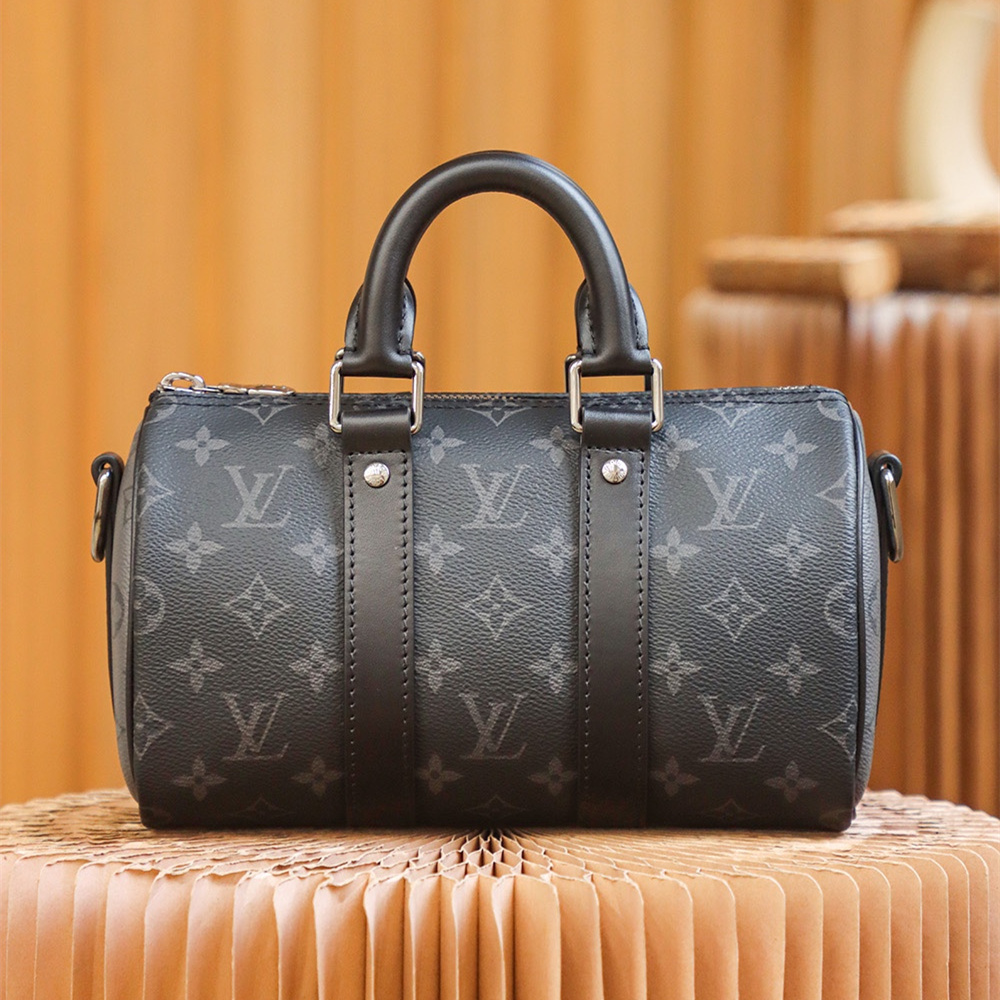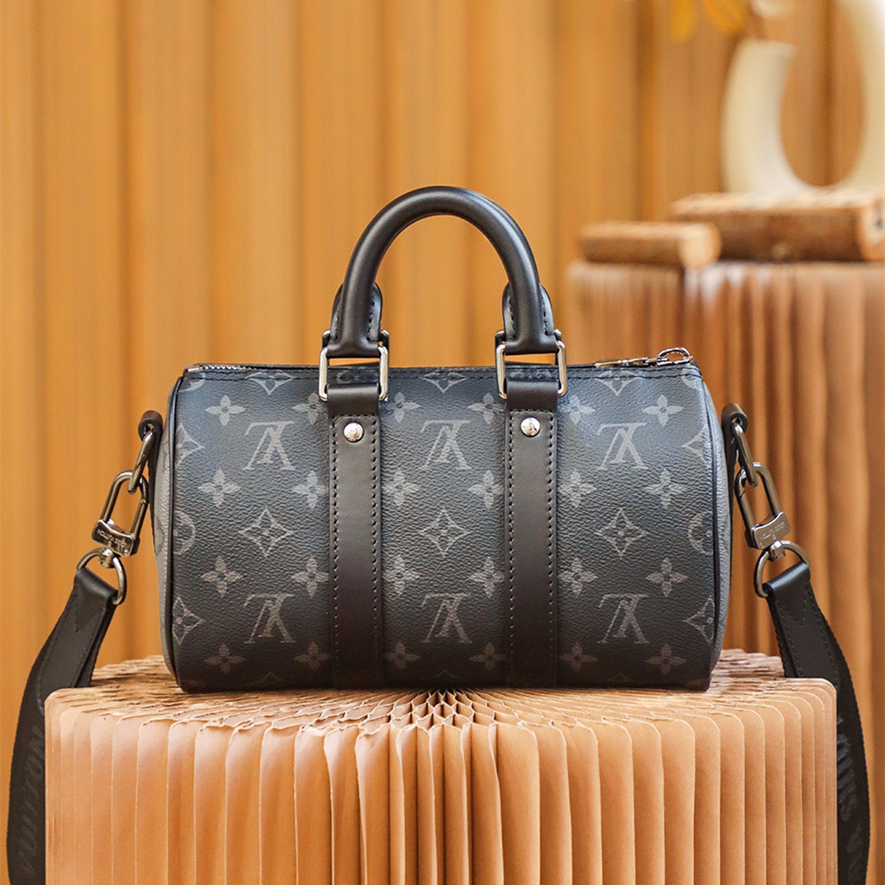 KeePall系列包款是眾多男士首選必備,出勤率最高的單肩包,配備了黑色帆布印花,彰顯出低調內斂的氣質.同時大容量的放置滿足於日常使用,堅固實用性和美觀度.高仿LV單肩包使用官方同步源材質Monogram帆布和進口真皮革獨家製作.包面呈現的印花和邊緣部分印花的把控恰到好處毫無瑕疵.