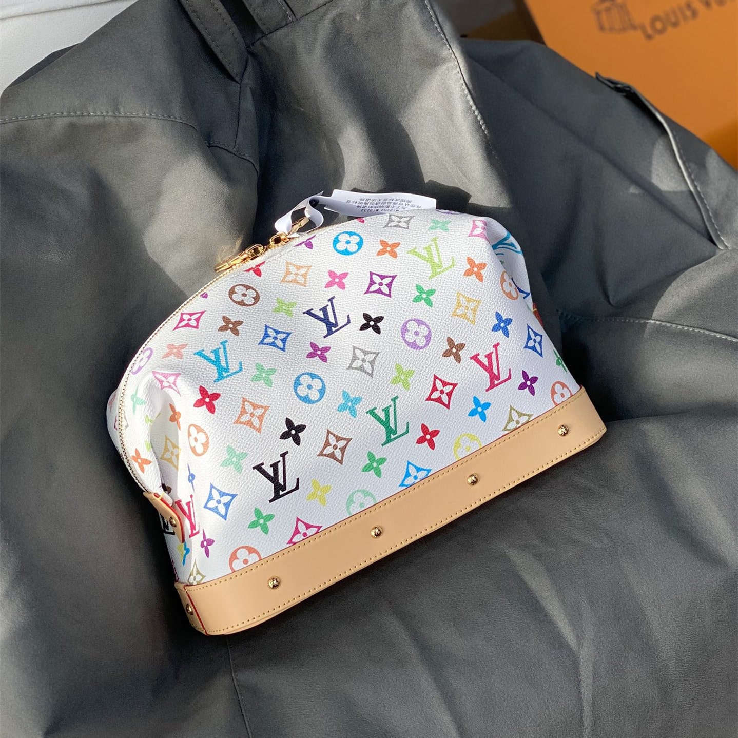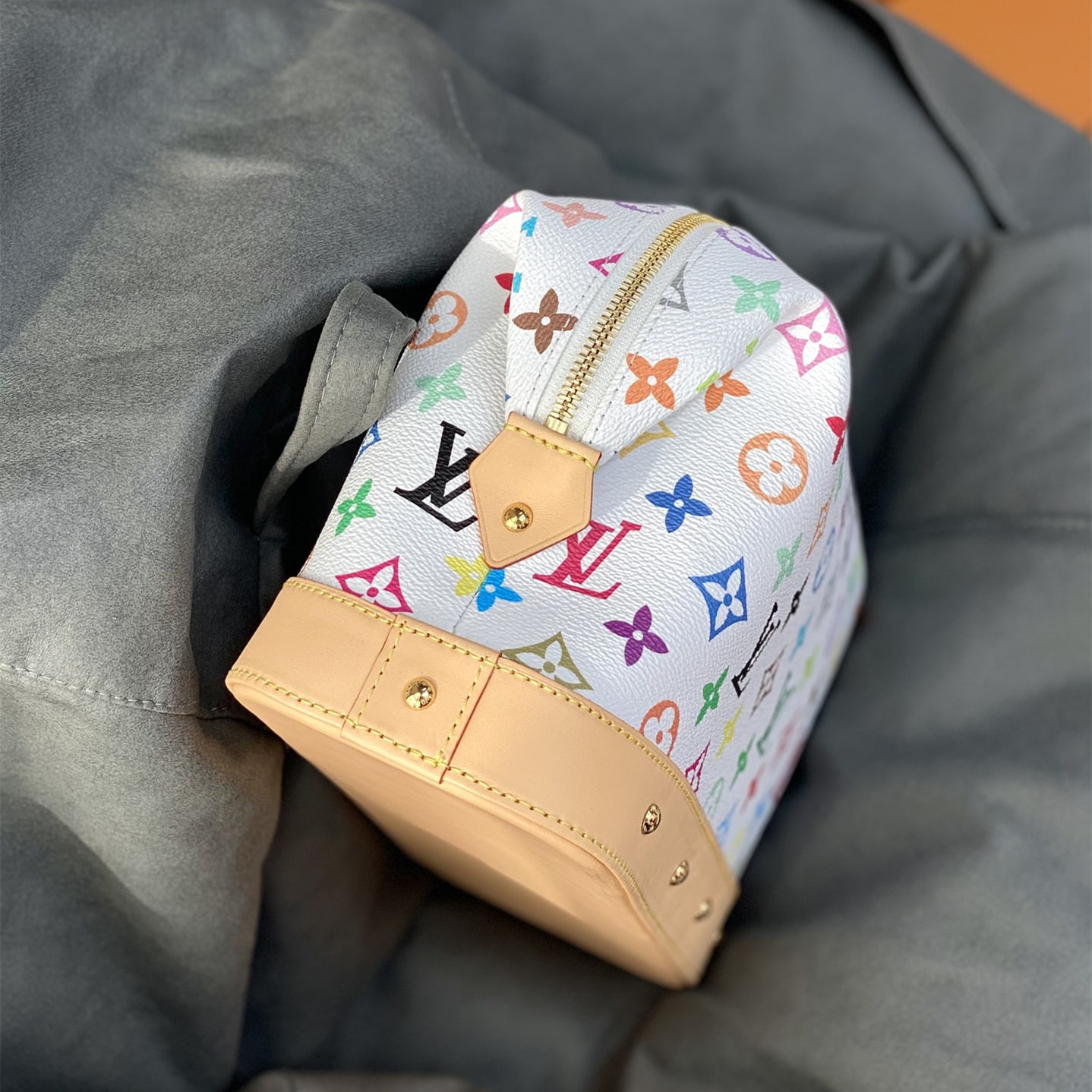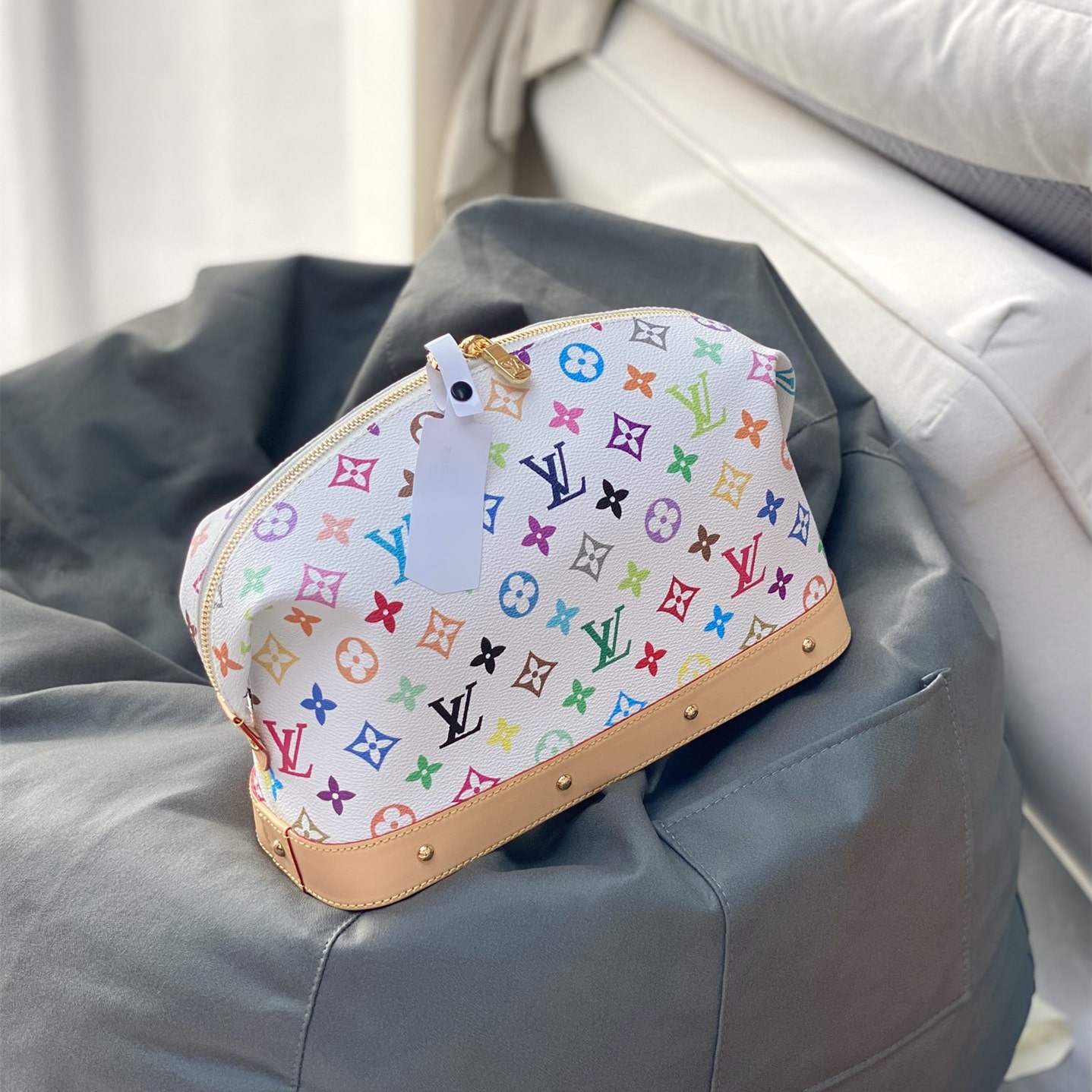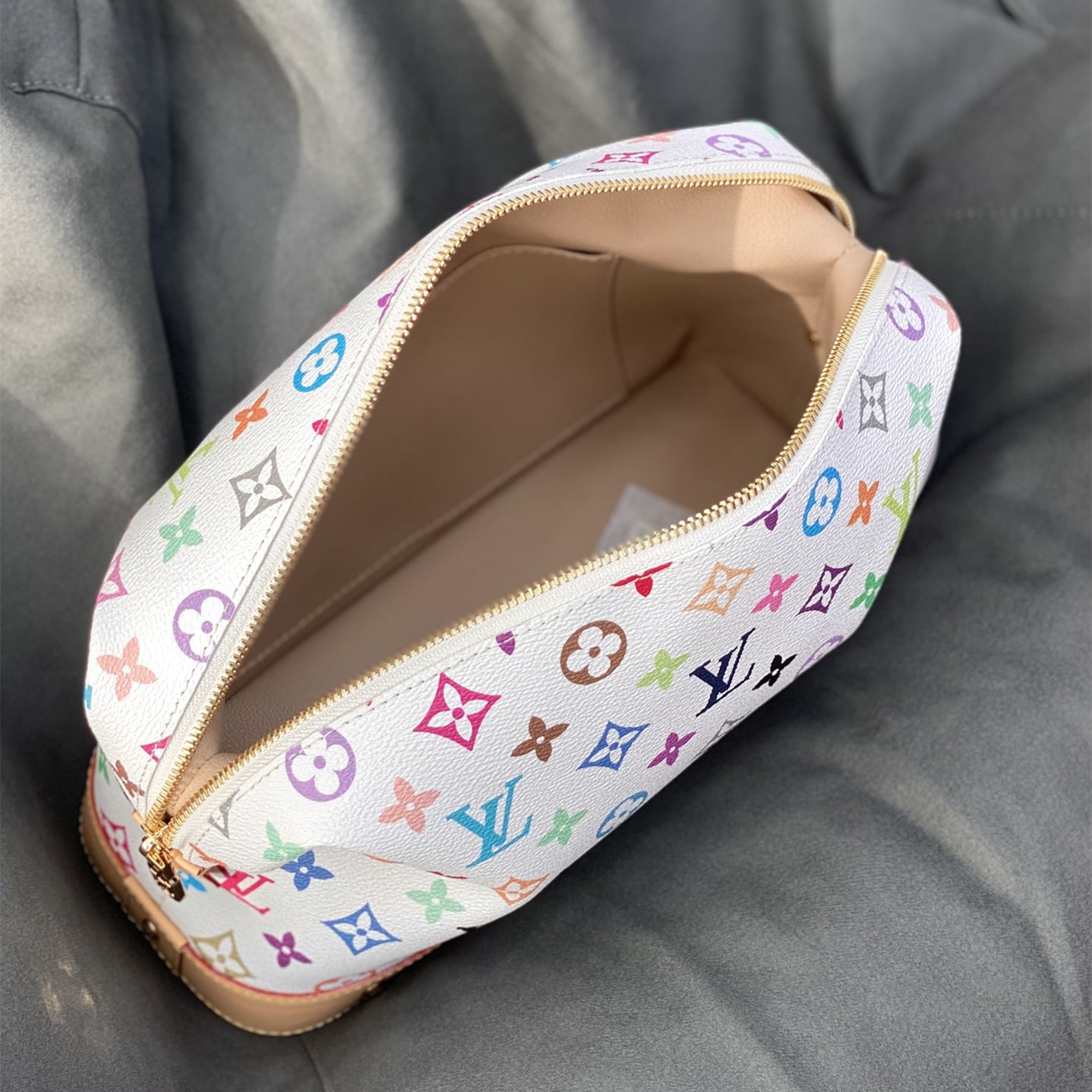 高仿LV聯名款M13743白三彩,2025年最新款LV與Murakami Takashi(村上隆) POCHETTE COSMÉTIQUE大號化妝包