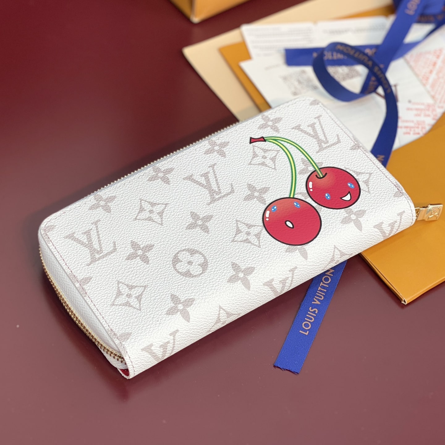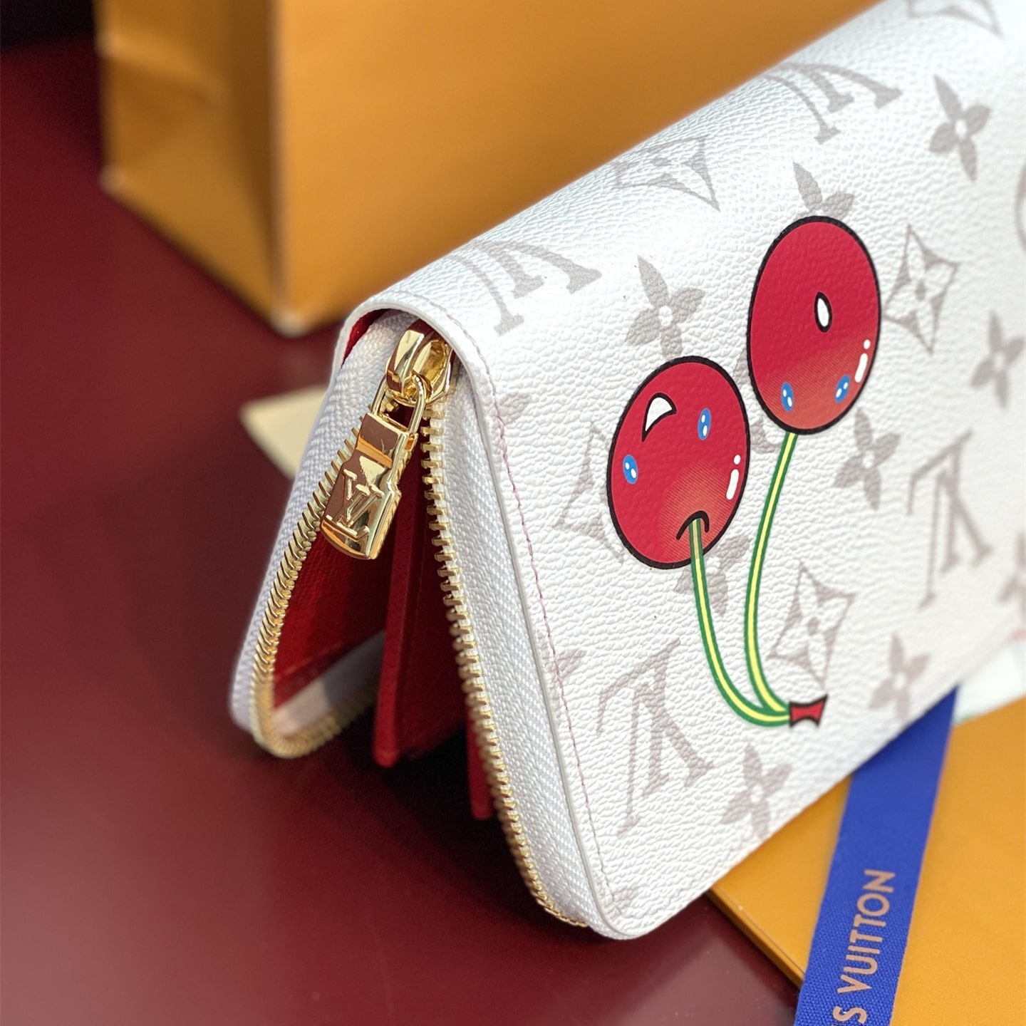 高仿LV*聯名款M14240櫻桃印花圖案錢包白色免檢版