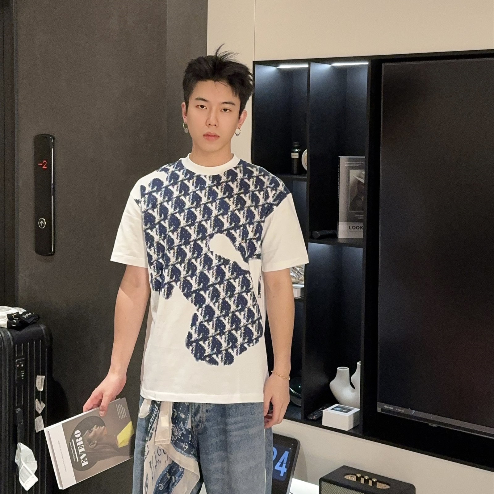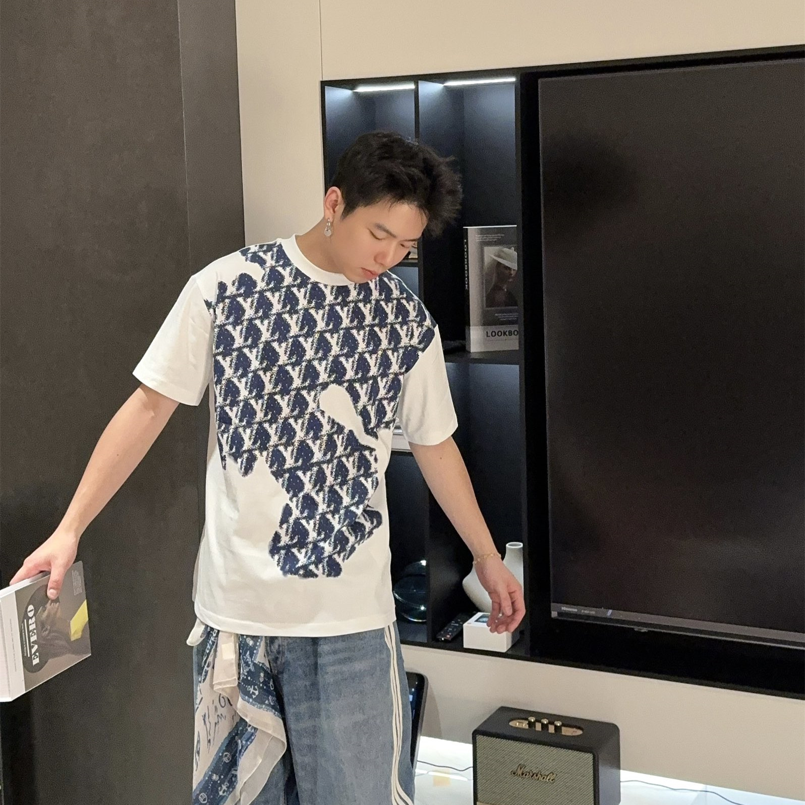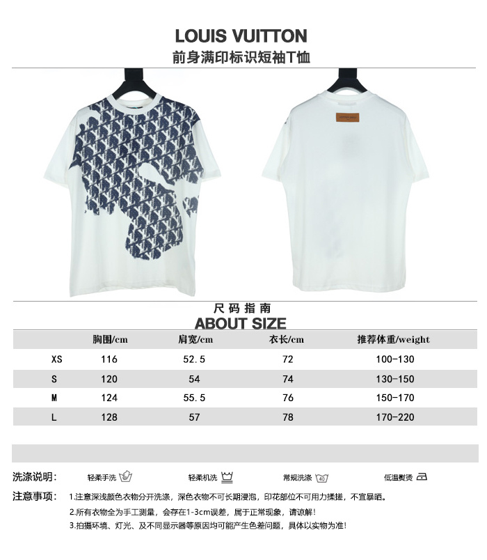 LOUIS VUITTON/路易威登前身滿印標識短袖T恤三標齊全采用高克重克重純棉面料,立體滿印工藝,手感非常舒服,OS落肩版型,時尚又個性,超級百搭的一款.螺紋領口不松垮,高溫固色通肩拉條工藝男女同款.
