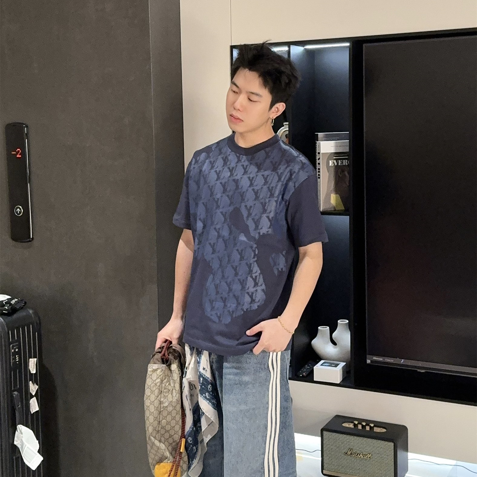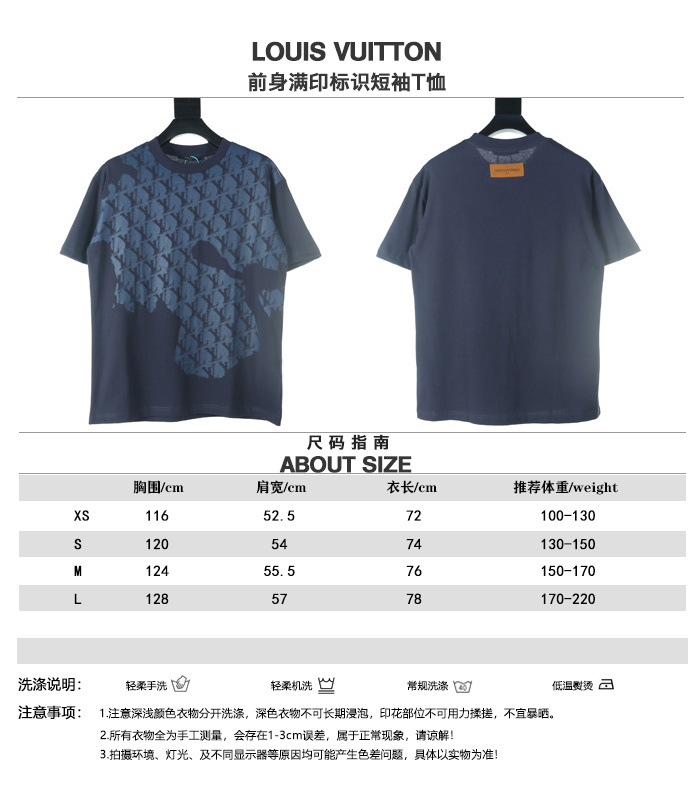 LOUIS VUITTON/路易威登前身滿印標識短袖T恤三標齊全采用高克重克重純棉面料,立體滿印工藝,手感非常舒服,OS落肩版型,時尚又個性,超級百搭的一款.螺紋領口不松垮,高溫固色通肩拉條工藝男女同款.