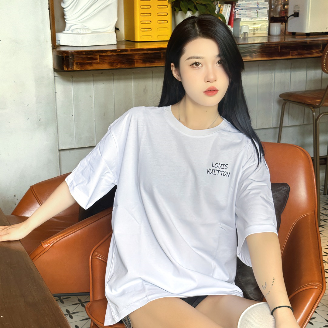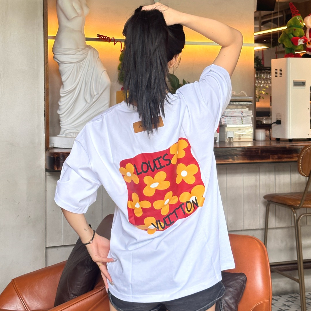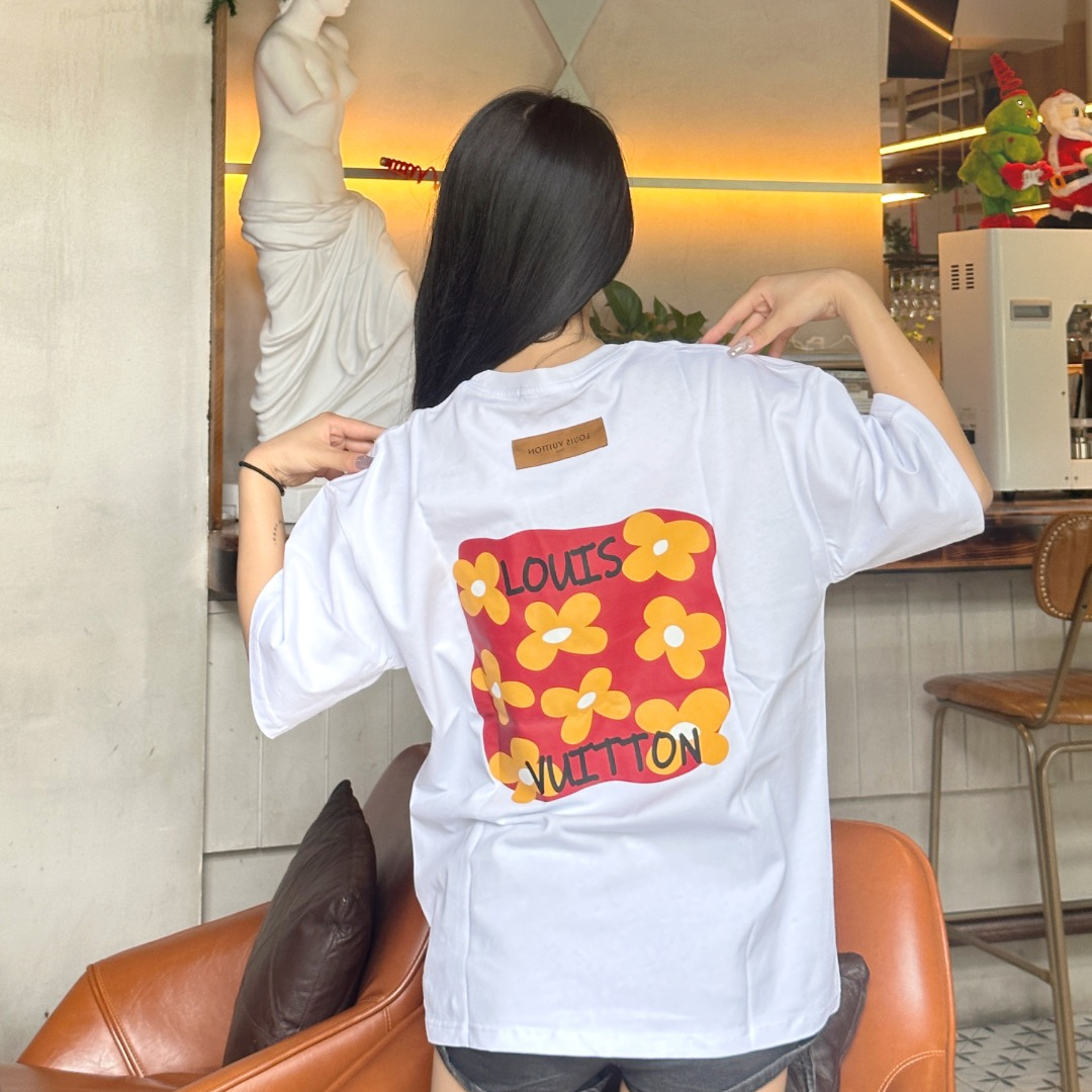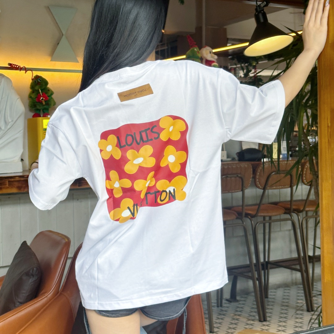 / 高仿LV*1AFR0034背後小花塗層T恤白色