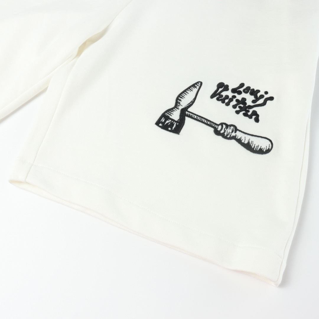 LOUIS VUITTON/路易威登錘子工具短褲耗時1個半月終於出貨 採用了32s雙股400G的抓絨面料,光市場所有活性黑都是紅光面料,所以我們自己定做了面料和螺紋,整條褲子3處百靈達萬針刺繡,完美還原小細節,輔料五金也是開模定做.
