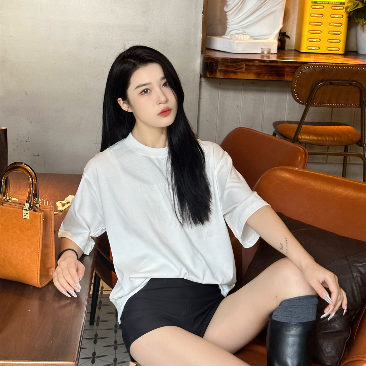 VUITTON/路易威登胸前小字母壓膠短袖T恤.男女同款全新美學靈感趣味設計,渠道性質精品.讓整體造型設計更加優雅時尚,今夏最火繫列,無數明星潮人追捧.裁剪工藝細節處理工整為玩味時尚增添色彩!工整細致.合身的版型構造更是獨具匠心,上身不僅有著出彩的辨識度更是減齡青春.一款穿著意義還有穿搭性能都很極致的款式,絢麗的色繫調配,此款的工藝必然也是極致非凡,上身的舒適度絕對足夠的強大,也是奢品本質的一種彰顯.柔軟輕薄,觸感更是極端撩人,透氣性能十分之強大,尤為適合春夏季節的穿搭所需,妥妥的穿著享受,併且各處的細節以及織帶的工藝都是盡善盡美,更顯高級感.