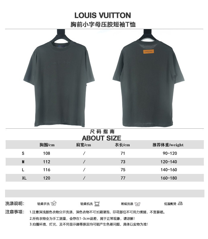 VUITTON/路易威登胸前小字母壓膠短袖T恤.男女同款全新美學靈感趣味設計,渠道性質精品.讓整體造型設計更加優雅時尚,今夏最火繫列,無數明星潮人追捧.裁剪工藝細節處理工整為玩味時尚增添色彩!工整細致.合身的版型構造更是獨具匠心,上身不僅有著出彩的辨識度更是減齡青春.一款穿著意義還有穿搭性能都很極致的款式,絢麗的色繫調配,此款的工藝必然也是極致非凡,上身的舒適度絕對足夠的強大,也是奢品本質的一種彰顯.柔軟輕薄,觸感更是極端撩人,透氣性能十分之強大,尤為適合春夏季節的穿搭所需,妥妥的穿著享受,併且各處的細節以及織帶的工藝都是盡善盡美,更顯高級感.