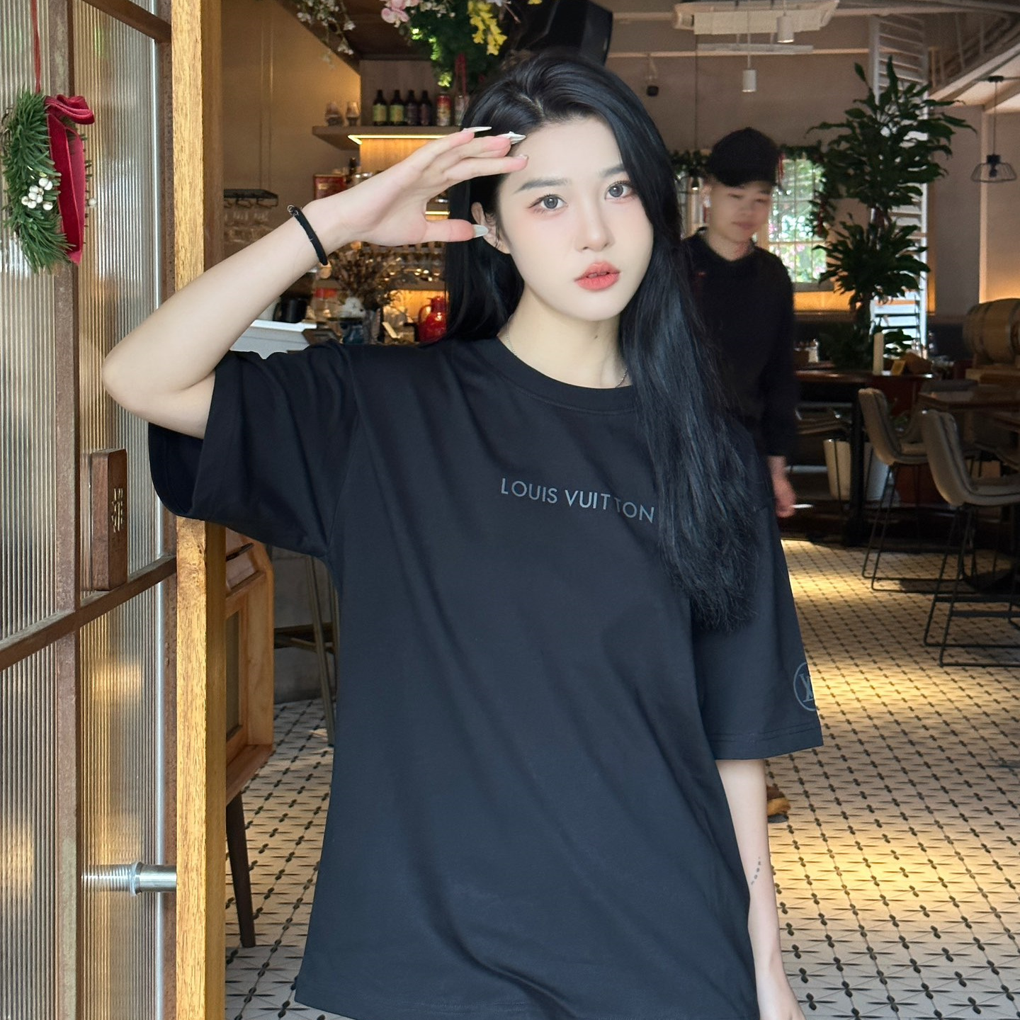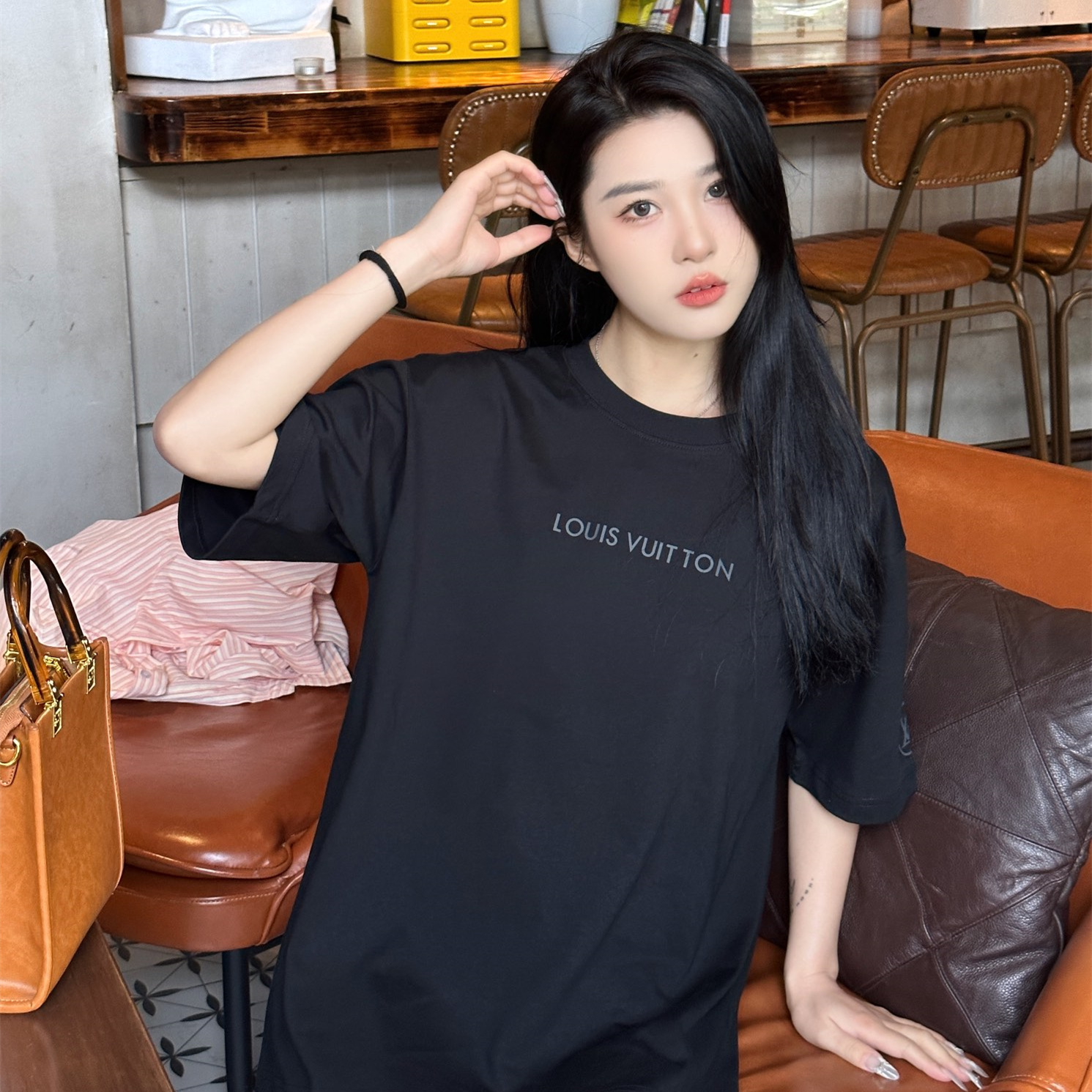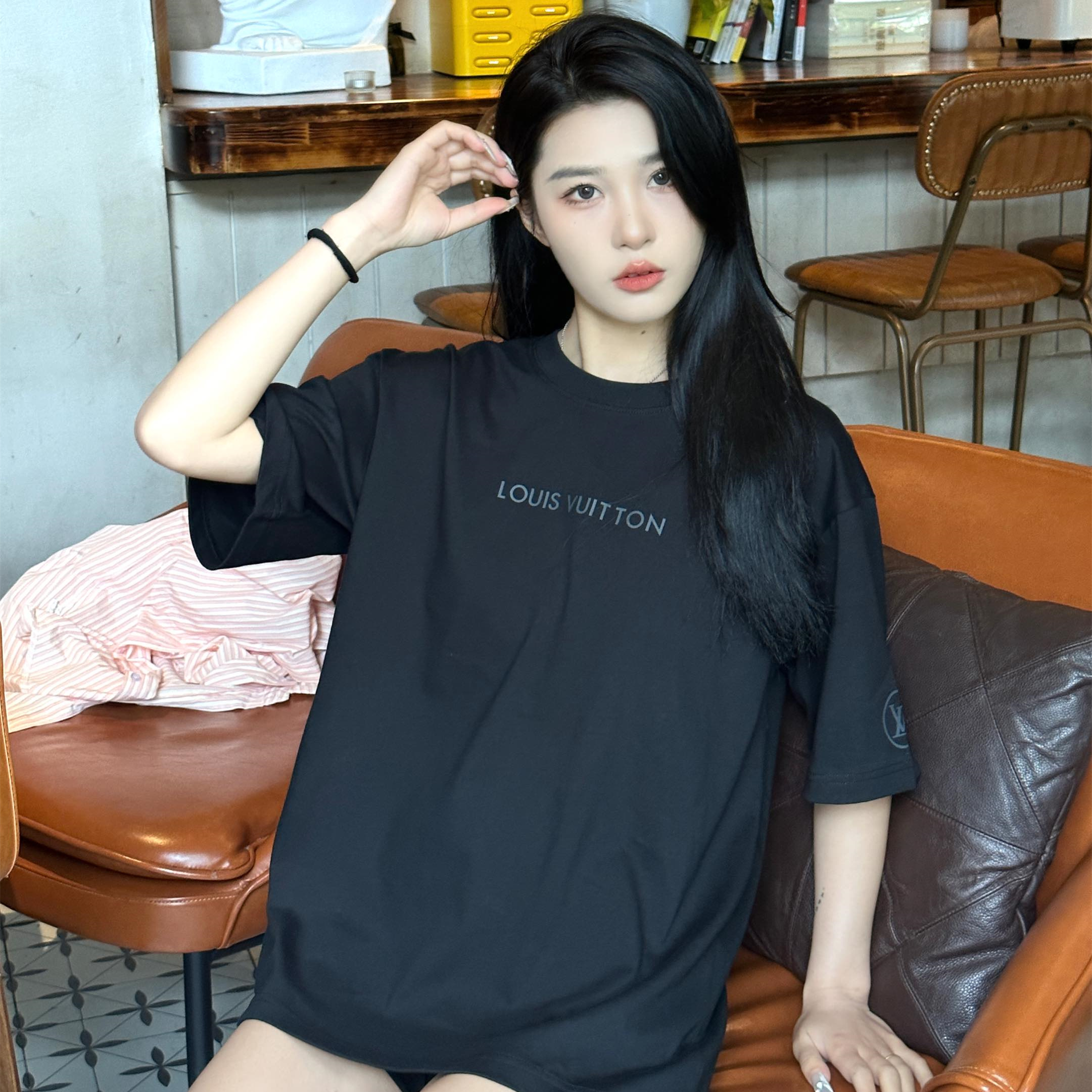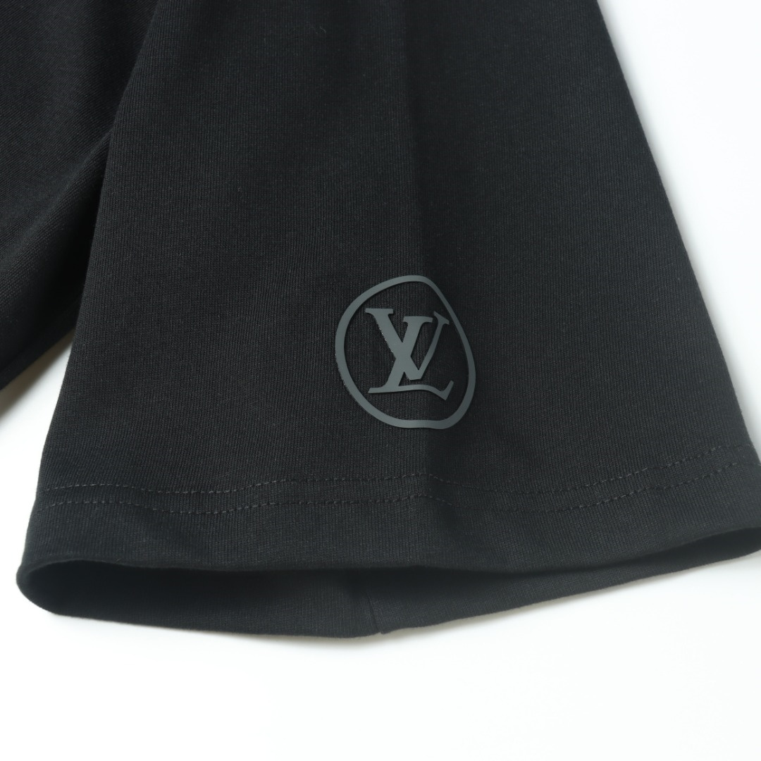 高仿LV*1AFR0047壓膠字母短袖T恤黑色