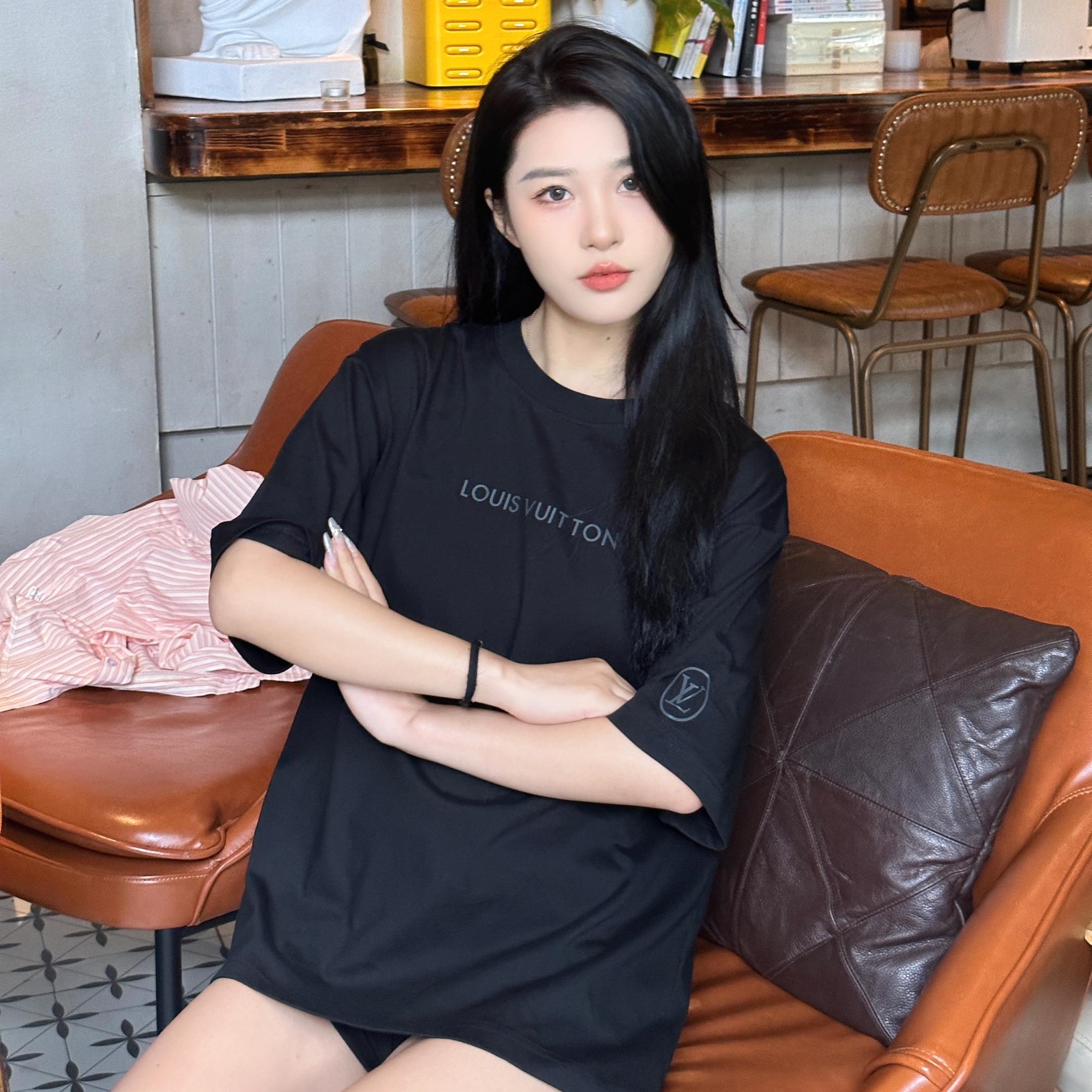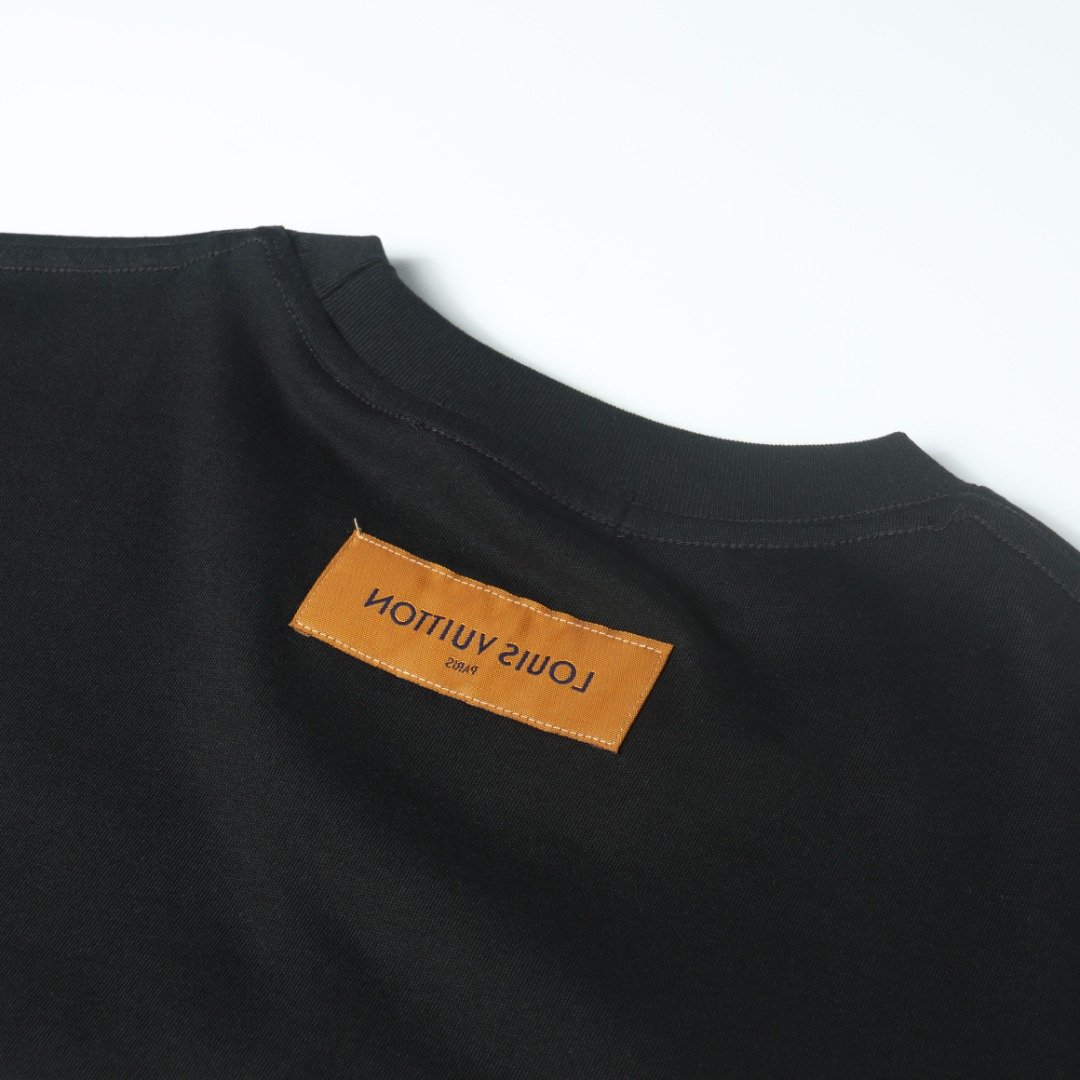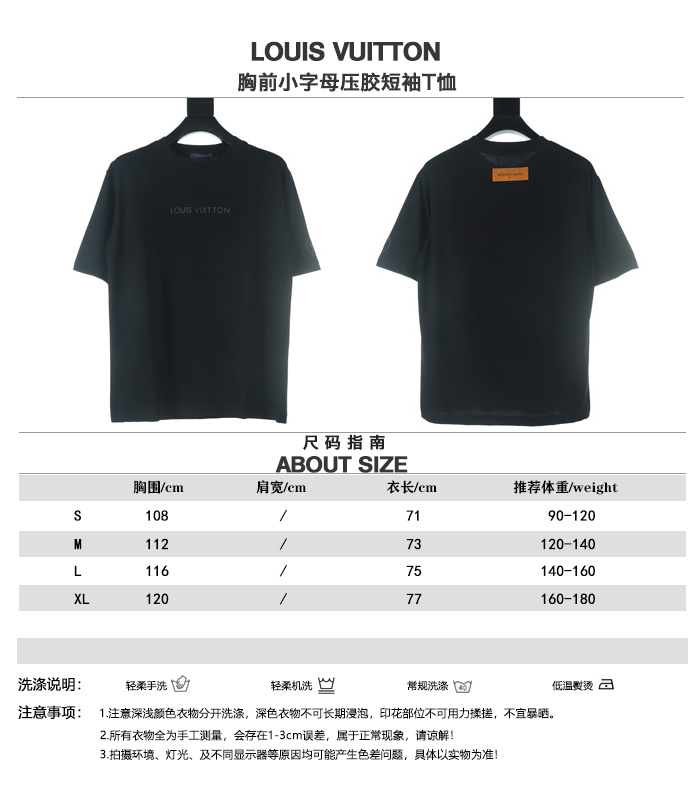 VUITTON/路易威登胸前小字母壓膠短袖T恤.男女同款全新美學靈感趣味設計,渠道性質精品.讓整體造型設計更加優雅時尚,今夏最火繫列,無數明星潮人追捧.裁剪工藝細節處理工整為玩味時尚增添色彩!工整細致.合身的版型構造更是獨具匠心,上身不僅有著出彩的辨識度更是減齡青春.一款穿著意義還有穿搭性能都很極致的款式,絢麗的色繫調配,此款的工藝必然也是極致非凡,上身的舒適度絕對足夠的強大,也是奢品本質的一種彰顯.柔軟輕薄,觸感更是極端撩人,透氣性能十分之強大,尤為適合春夏季節的穿搭所需,妥妥的穿著享受,併且各處的細節以及織帶的工藝都是盡善盡美,更顯高級感.