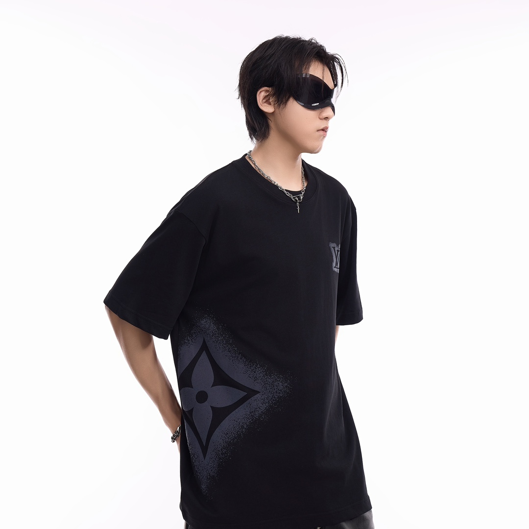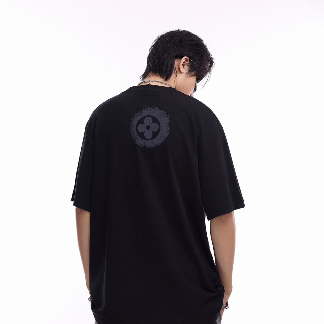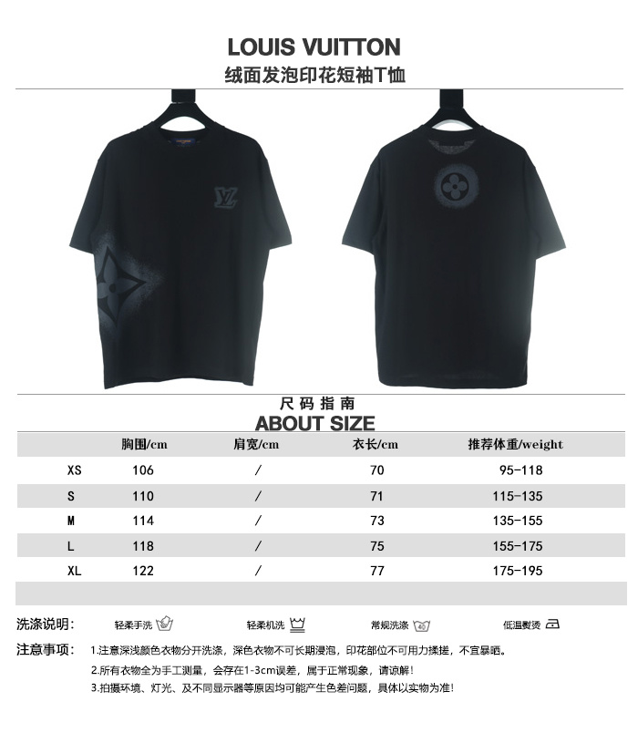 LOUIS VUITTON/路易威登絨面發泡印花短袖T恤.甄選長絨棉紗,260g精紡高支重磅定織定染面料,裁前高溫洗水定型,成品再洗柔,穿著感受親膚棉柔,垂感自然.專櫃同步,微落肩寬鬆版型,可鹽可甜,男女皆宜超百搭.