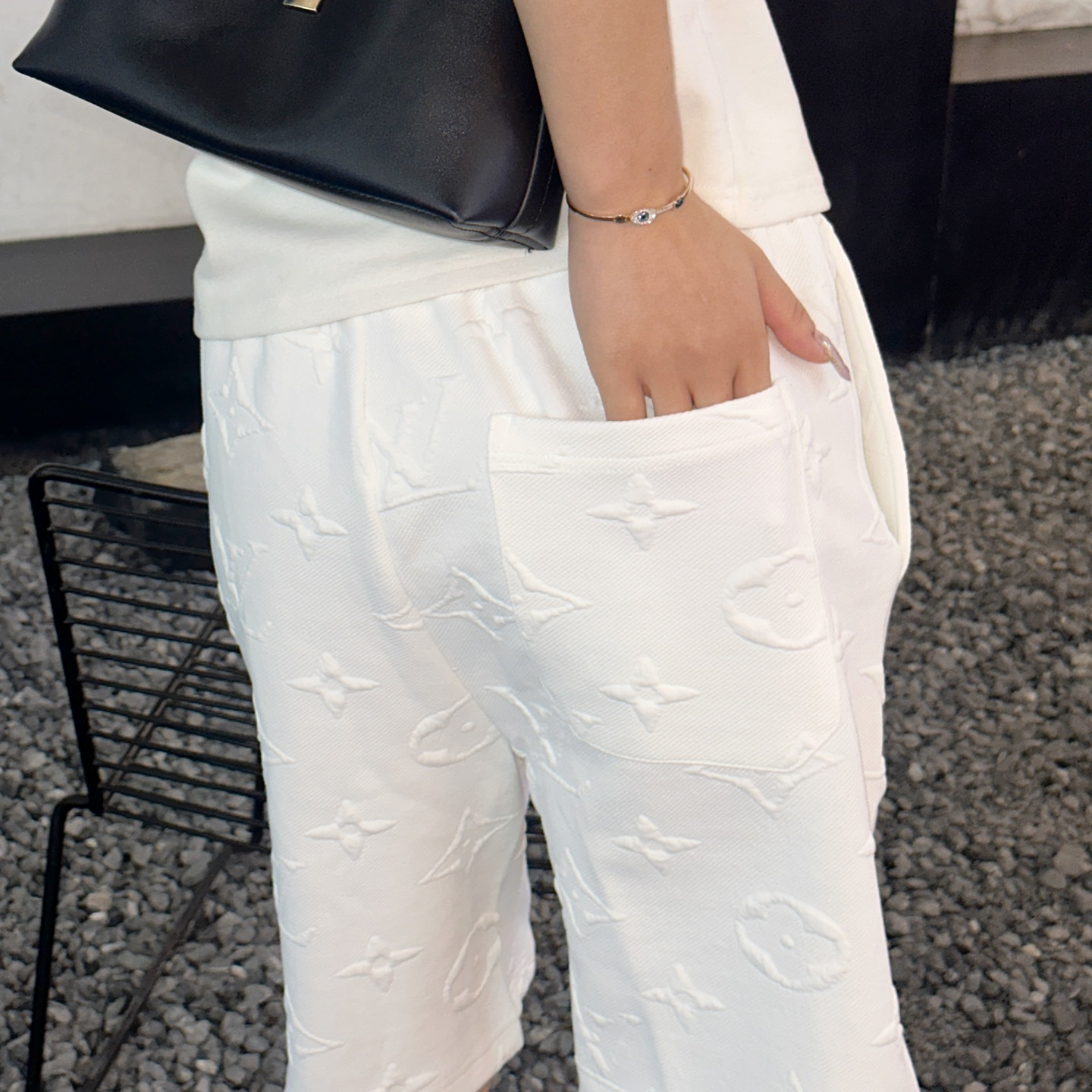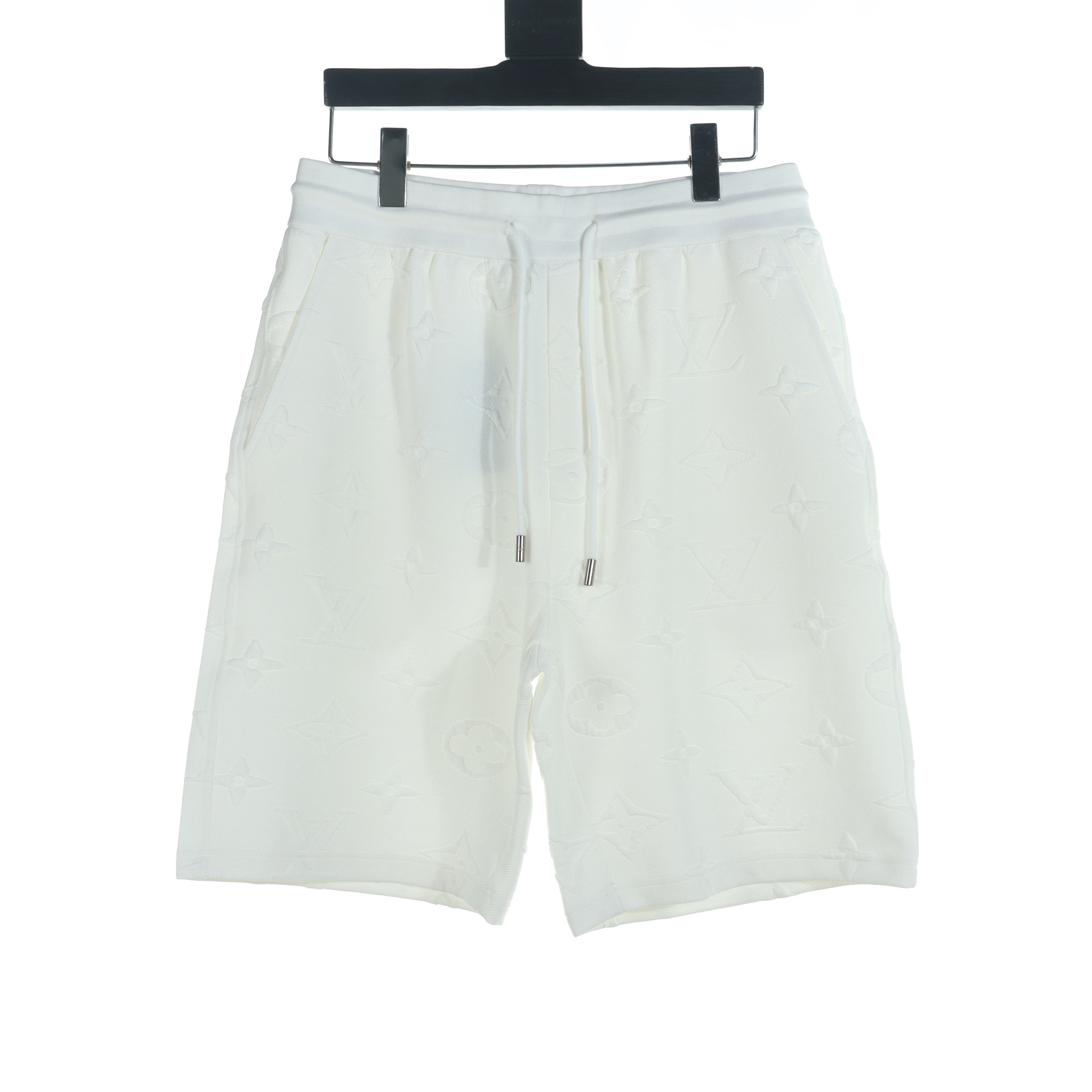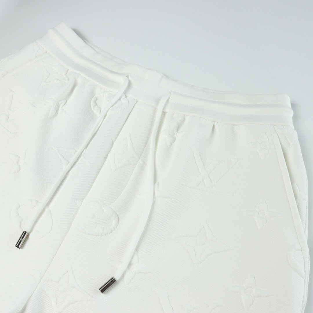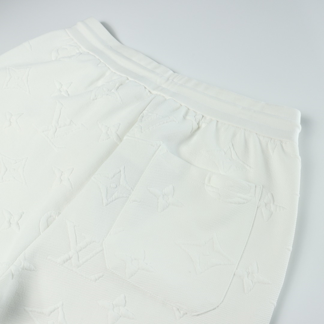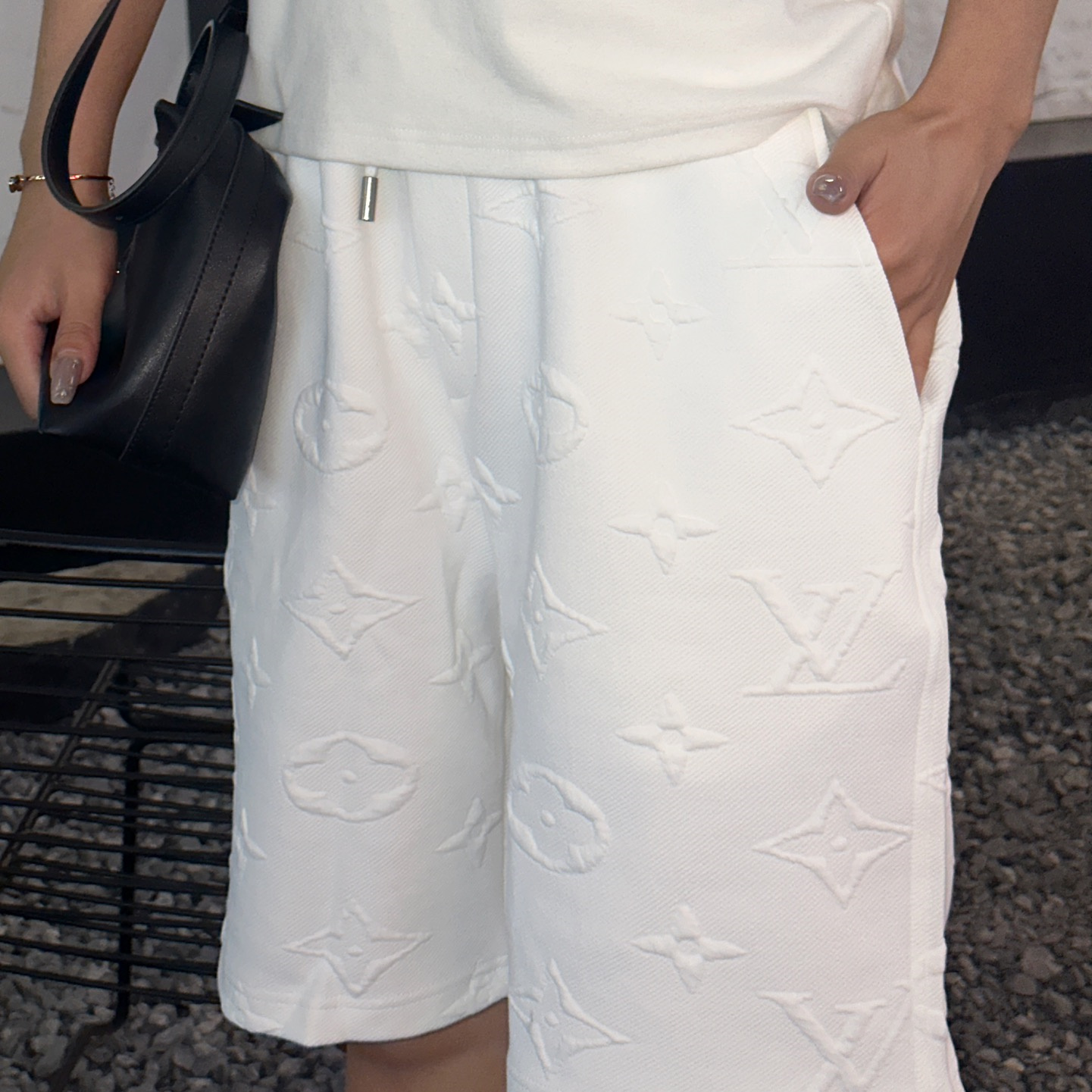 高仿LV*1AFR0052滿印提花休閒短褲白色