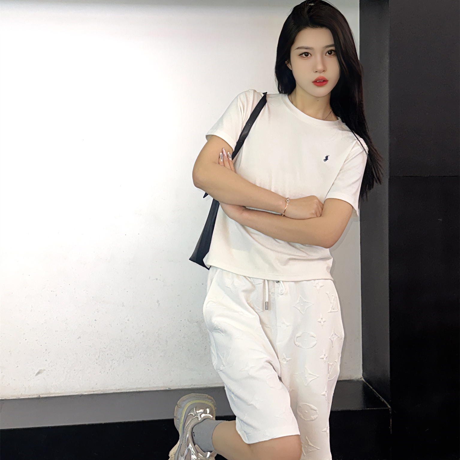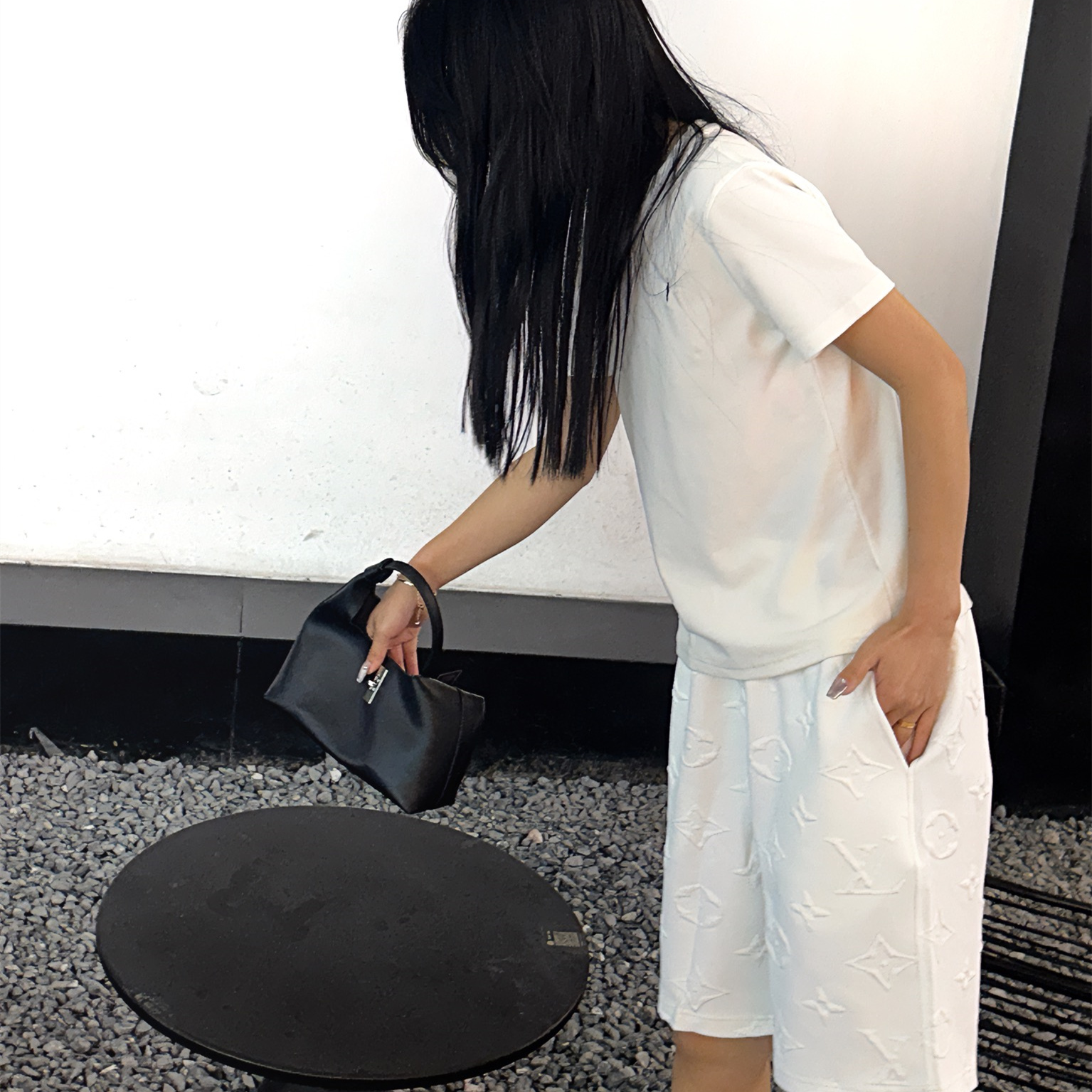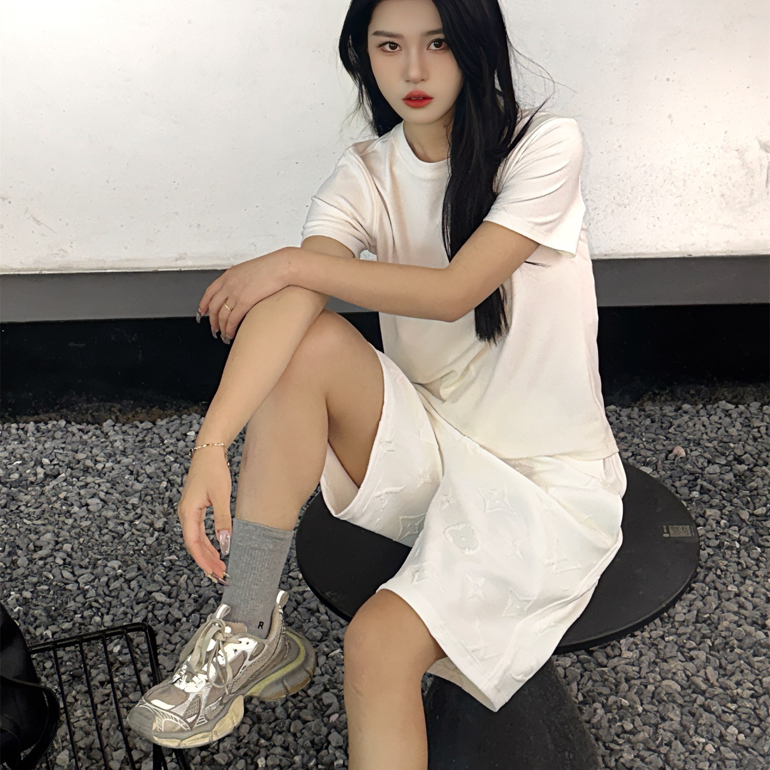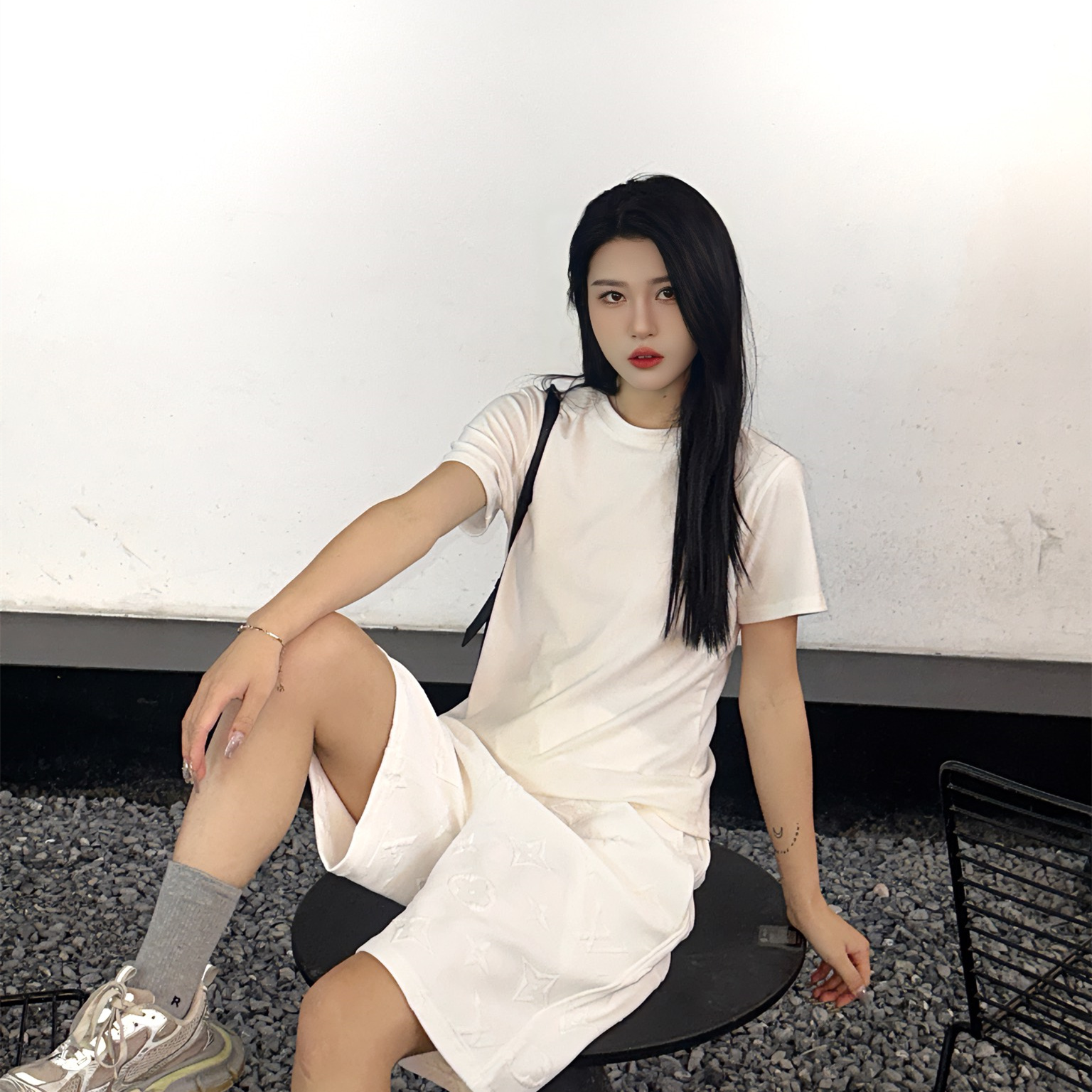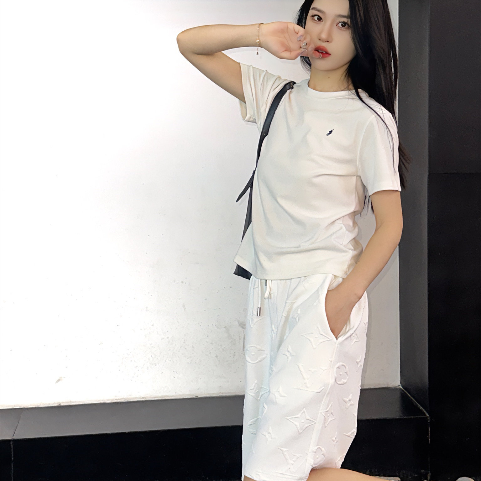 高仿LV*1AFR0052滿印提花休閒短褲白色