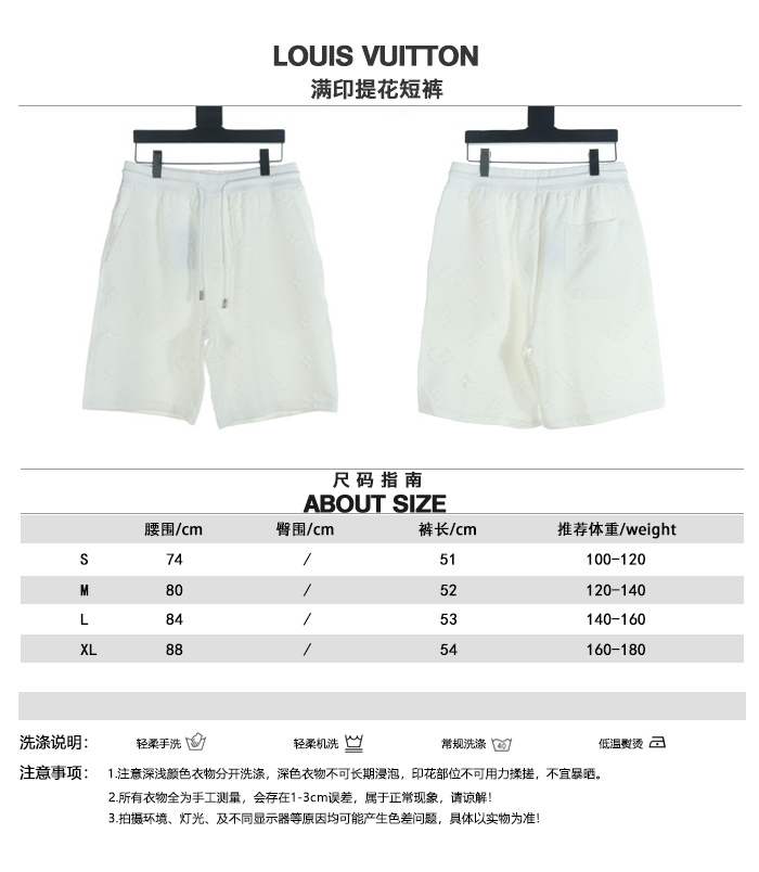 VUITTON/路易威登滿印提花短褲.區分市面通貨,褲腰與褲身顏色一致.男女同款全新美學靈感趣味設計,渠道性質精品.讓整體造型設計更加優雅時尚,今夏最火繫列,無數明星潮人追捧.裁剪工藝細節處理工整為玩味時尚增添色彩!工整細致,合身的版型構造更是獨具匠心,上身不僅有著出彩的辨識度更是減齡青春.