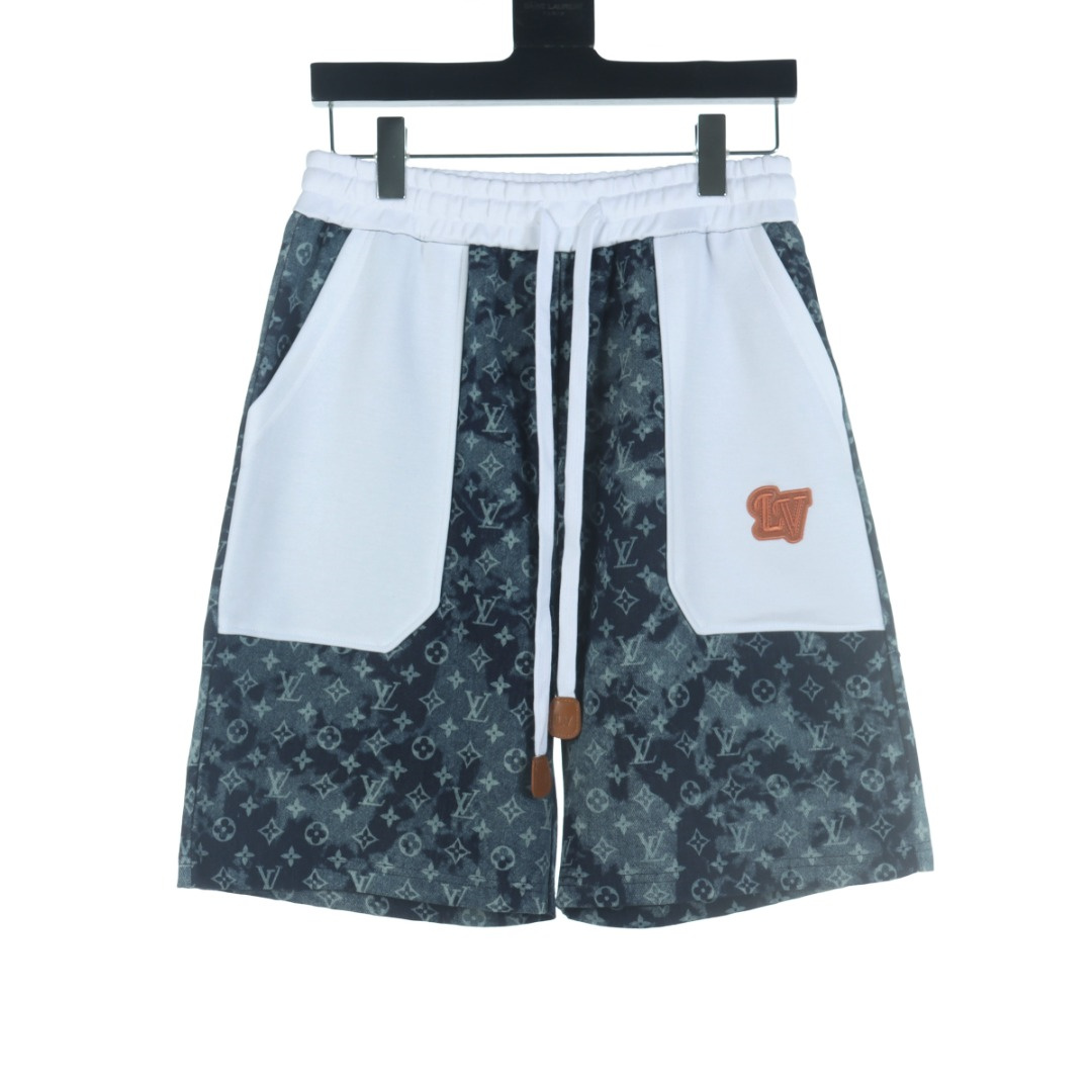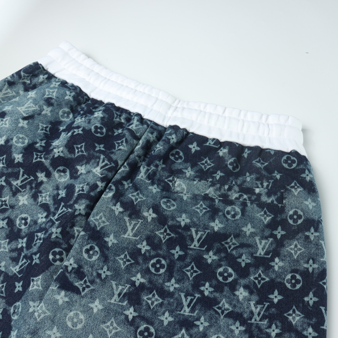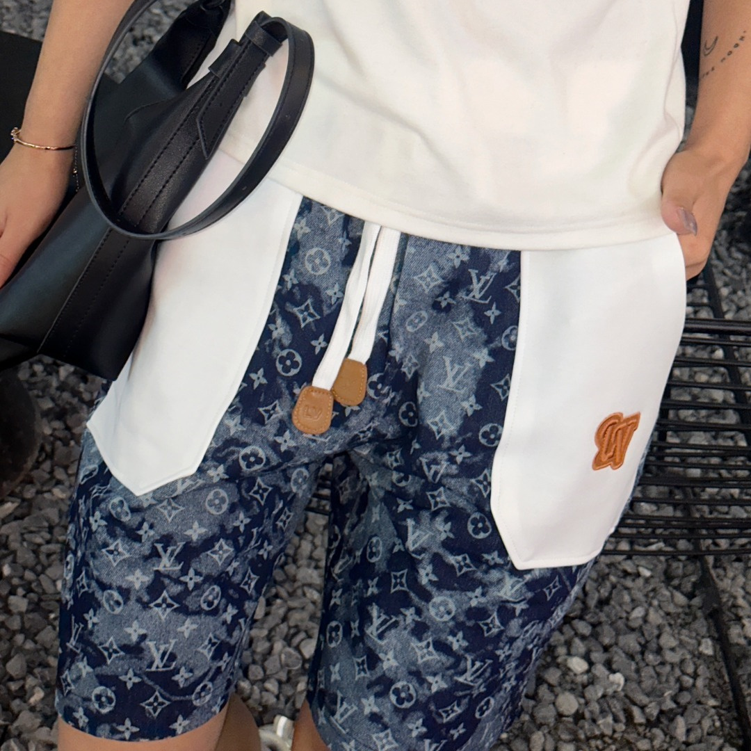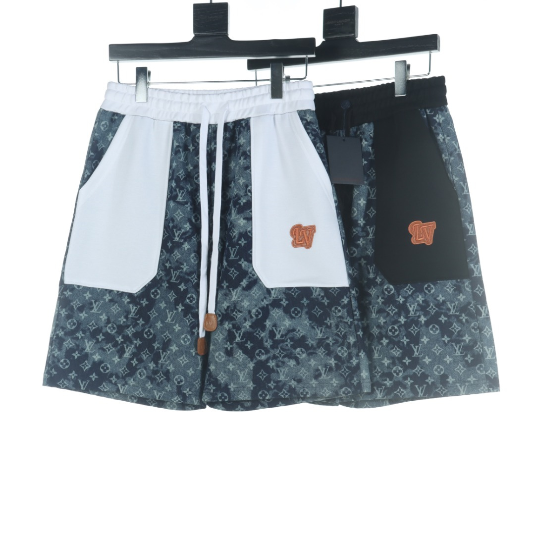 VUITTON路易威登滿印牛仔拼接大口袋短褲.男女同款全新美學靈感趣味設計,渠道性質精品.讓整體造型設計更加優雅時尚,今夏最火繫列,無數明星潮人追捧.裁剪工藝細節處理工整為玩味時尚增添色彩!工整細致,合身的版型構造更是獨具匠心,上身不僅有著出彩的辨識度更是減齡青春.