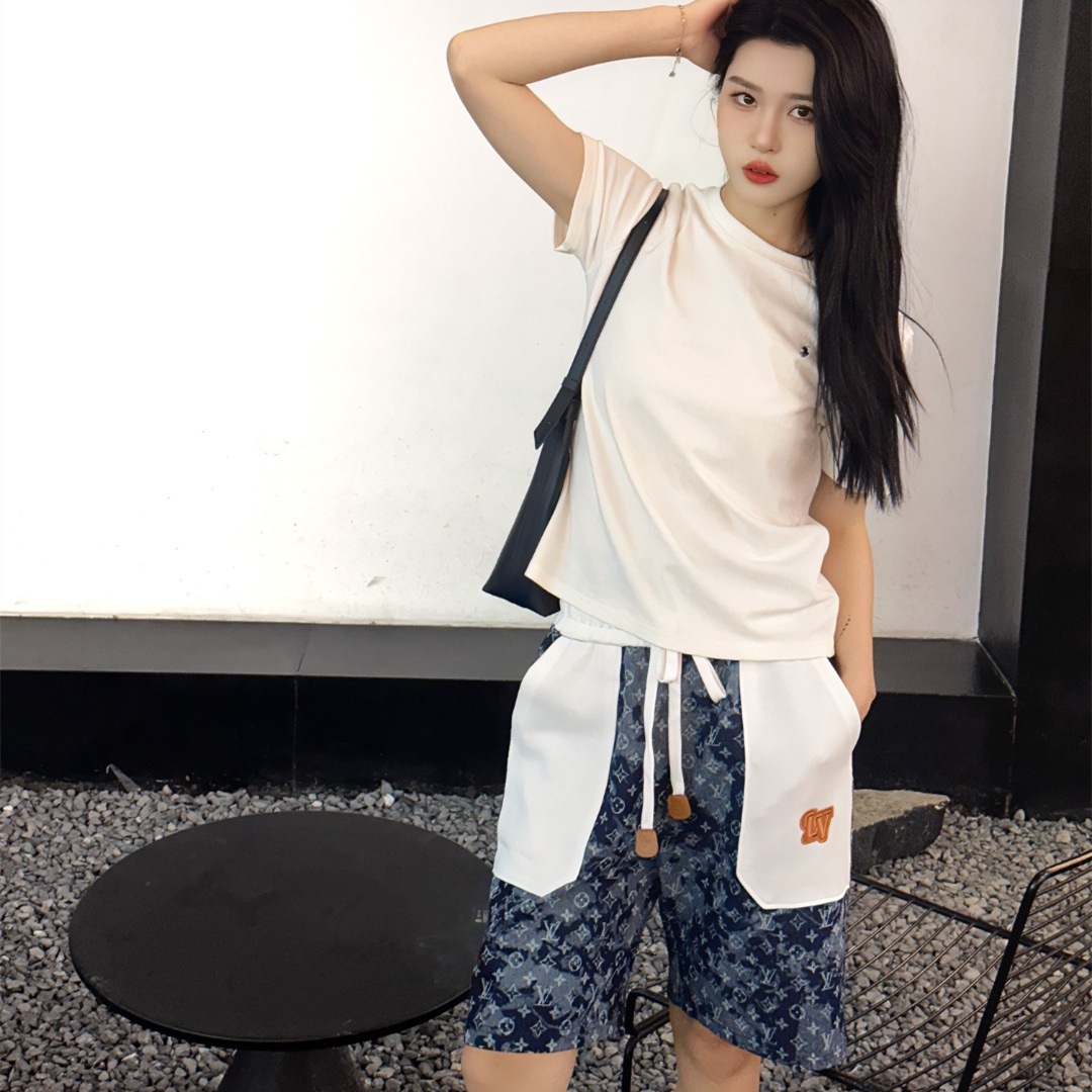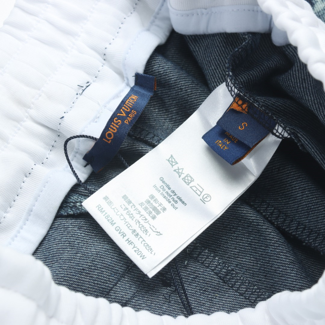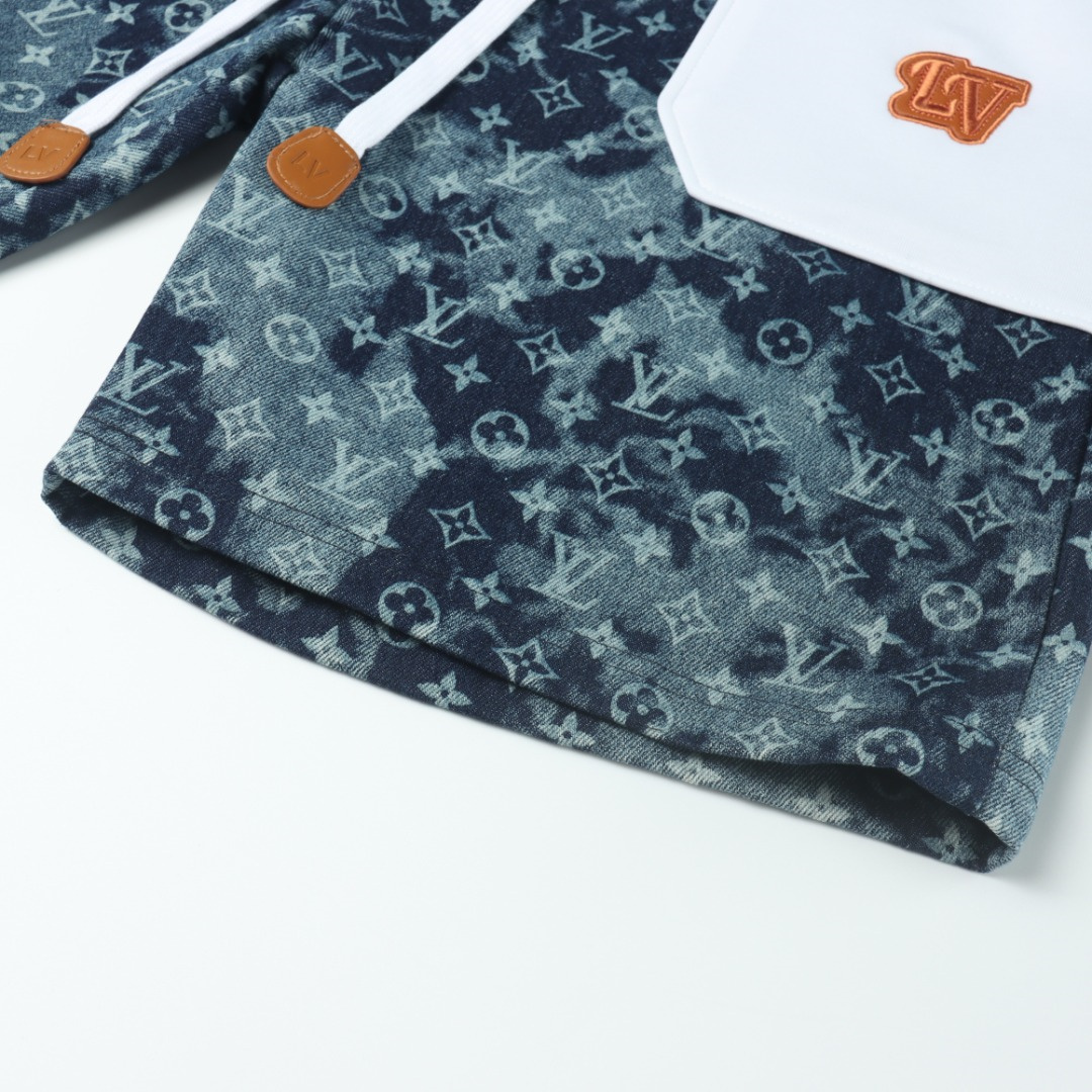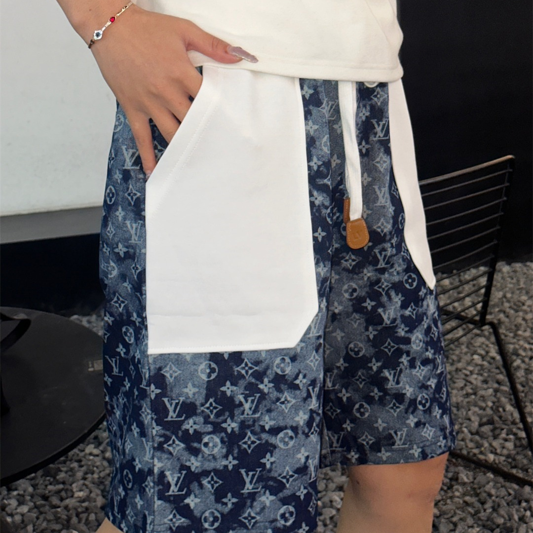 VUITTON路易威登滿印牛仔拼接大口袋短褲.男女同款全新美學靈感趣味設計,渠道性質精品.讓整體造型設計更加優雅時尚,今夏最火繫列,無數明星潮人追捧.裁剪工藝細節處理工整為玩味時尚增添色彩!工整細致,合身的版型構造更是獨具匠心,上身不僅有著出彩的辨識度更是減齡青春.