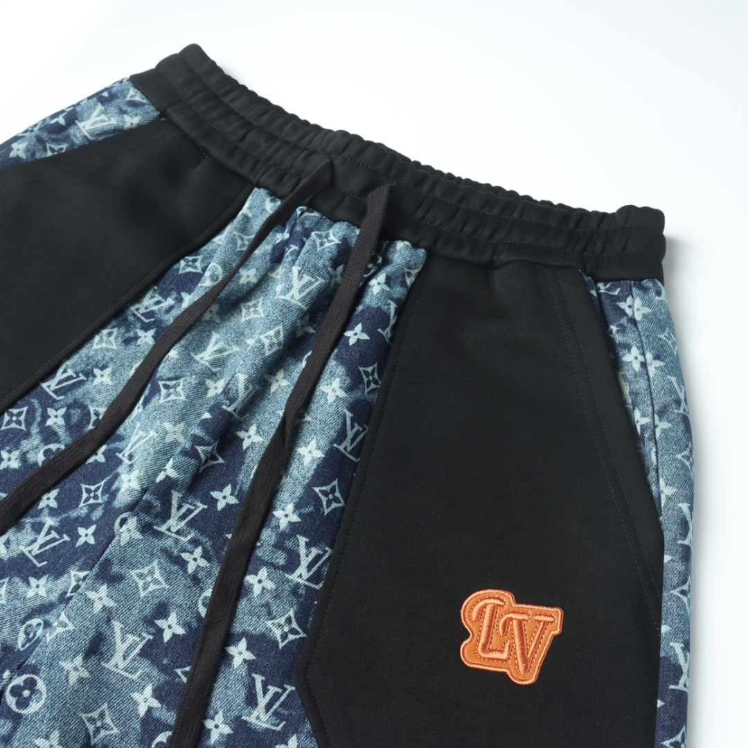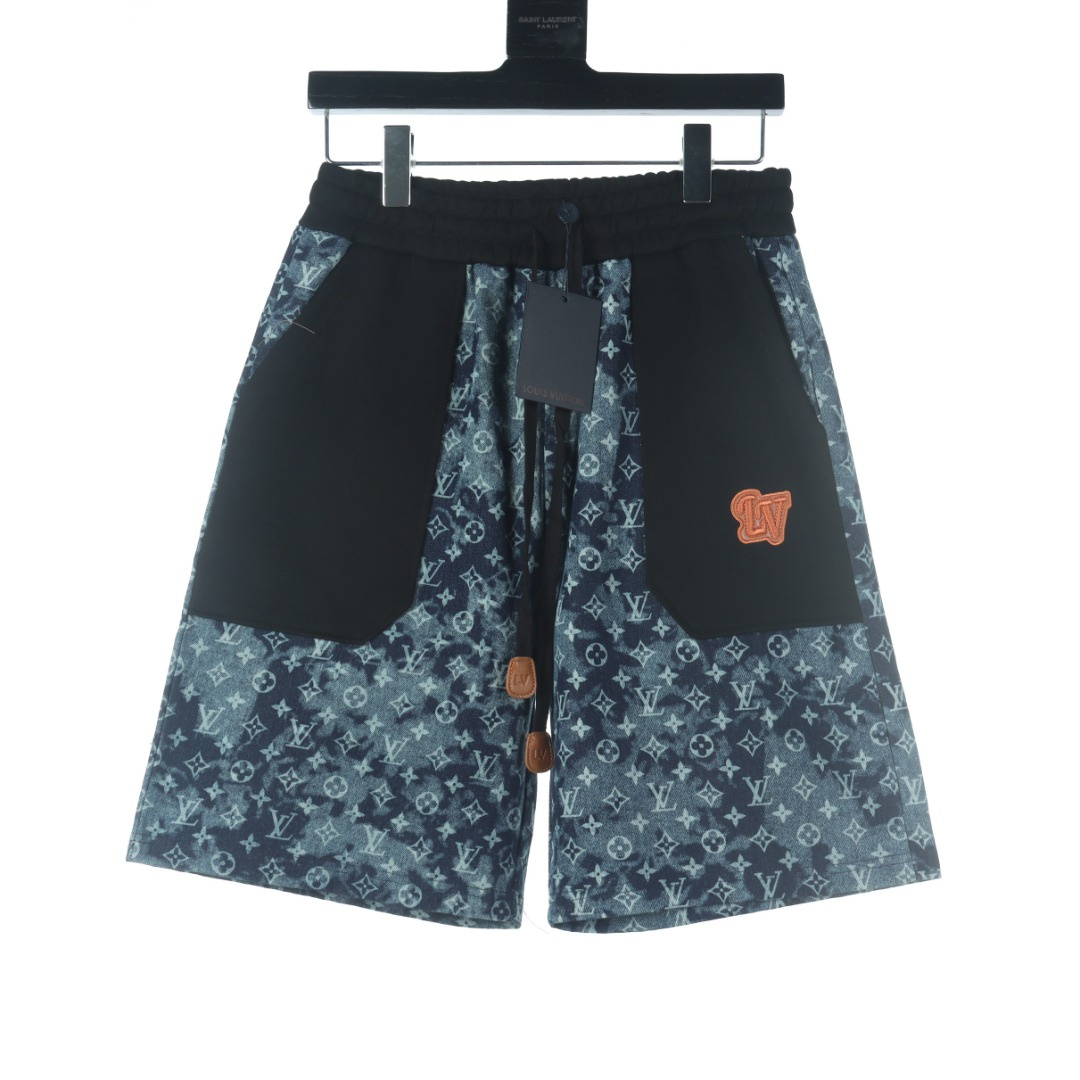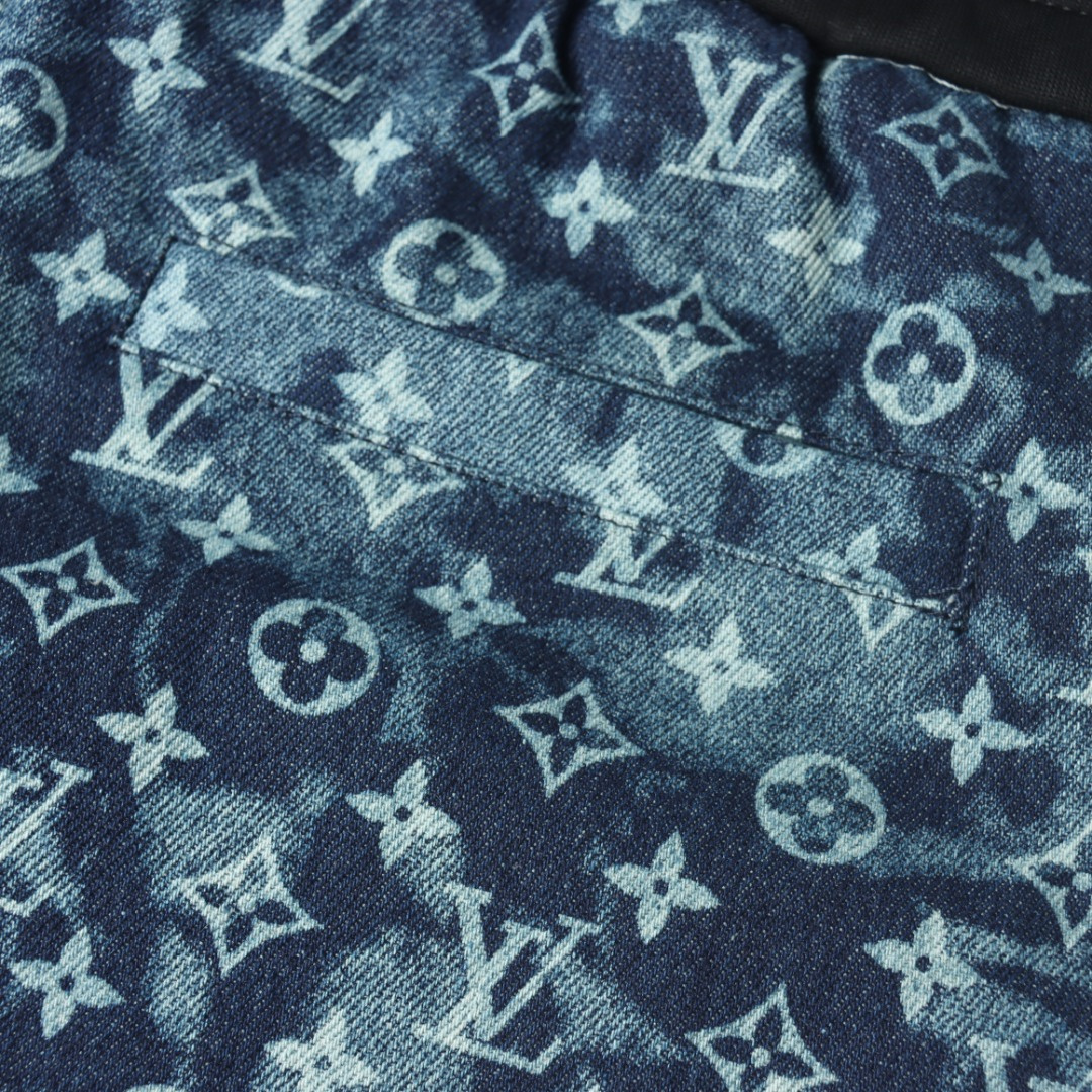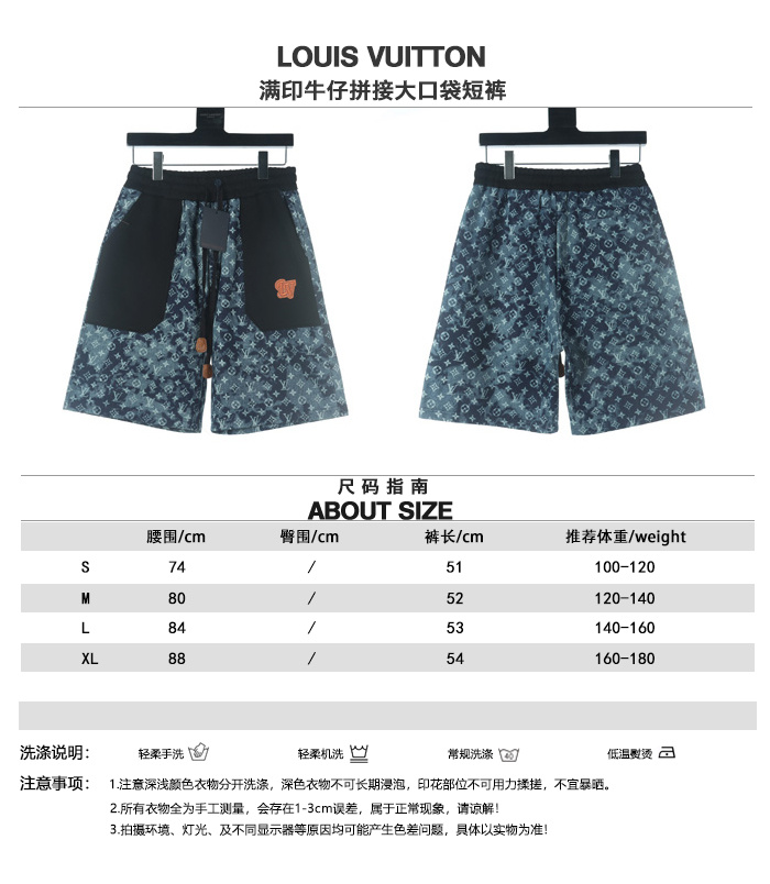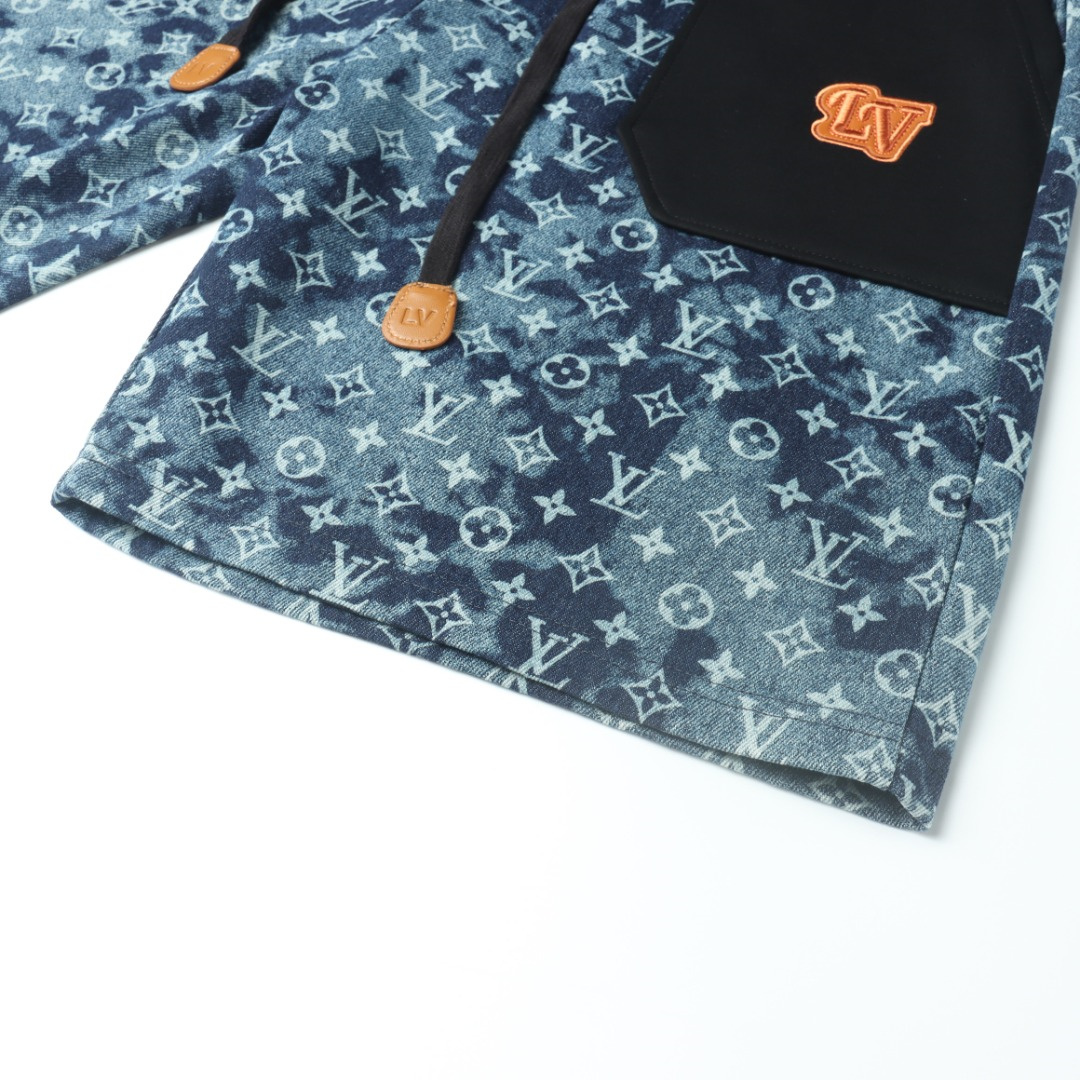 VUITTON路易威登滿印牛仔拼接大口袋短褲.男女同款全新美學靈感趣味設計,渠道性質精品.讓整體造型設計更加優雅時尚,今夏最火繫列,無數明星潮人追捧.裁剪工藝細節處理工整為玩味時尚增添色彩!工整細致,合身的版型構造更是獨具匠心,上身不僅有著出彩的辨識度更是減齡青春.