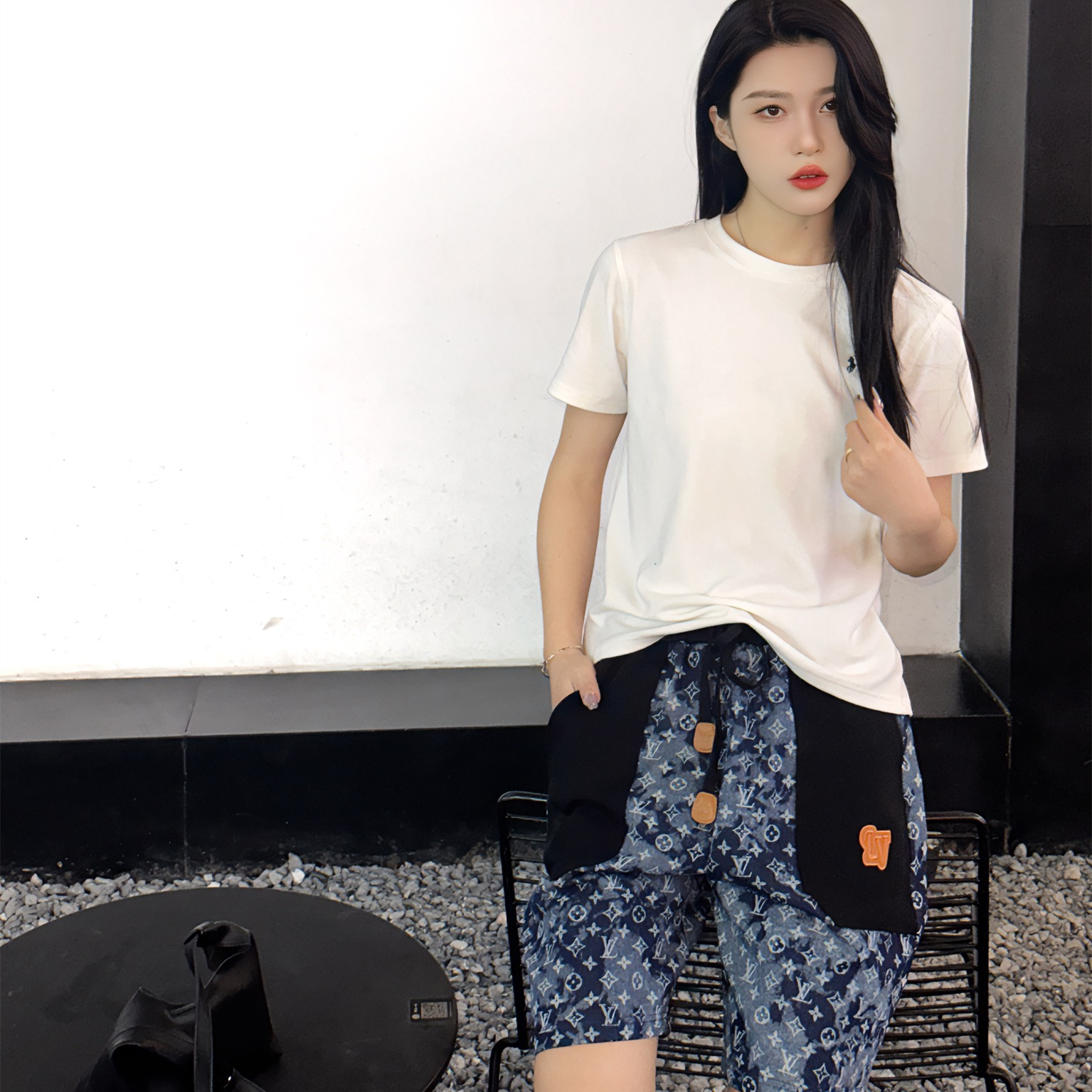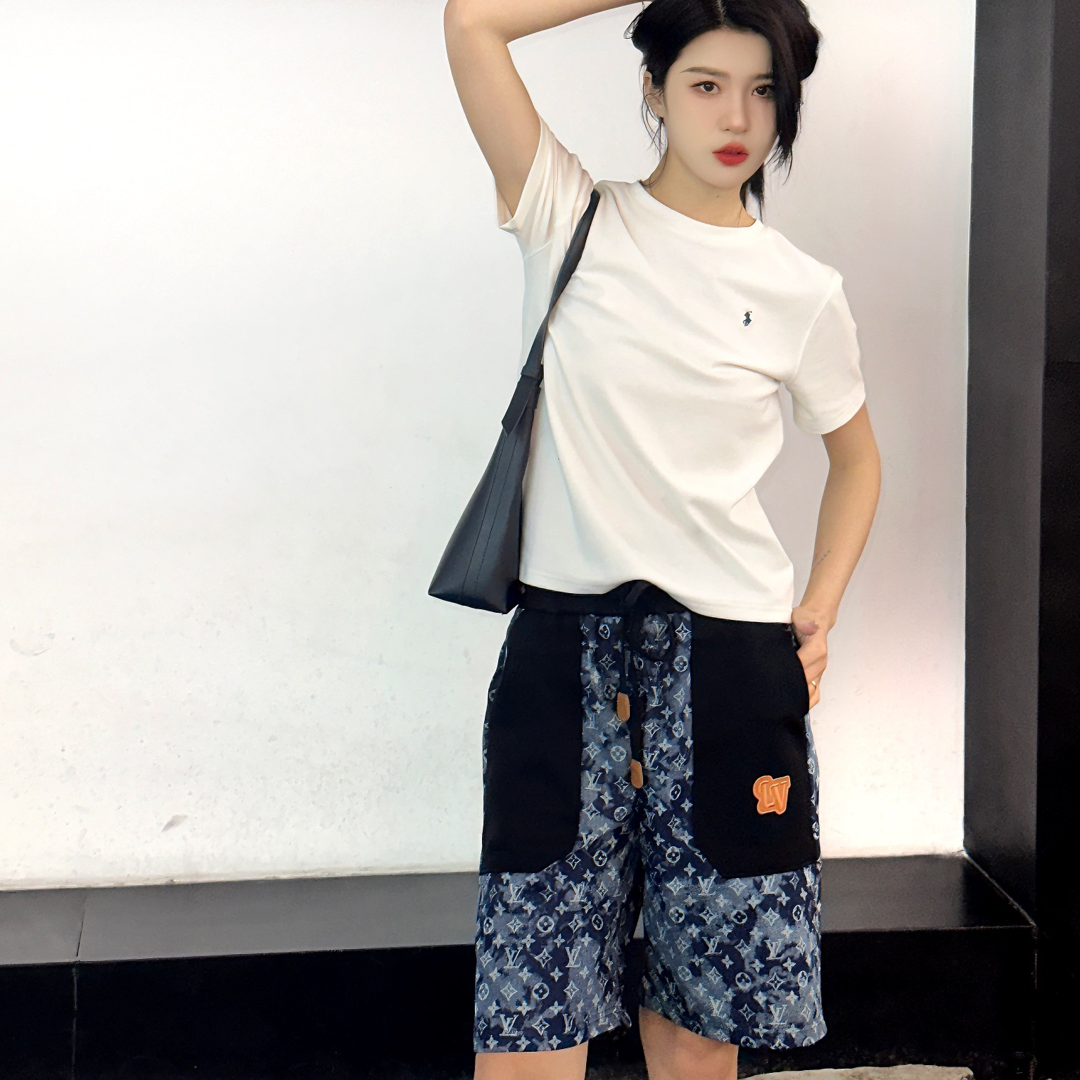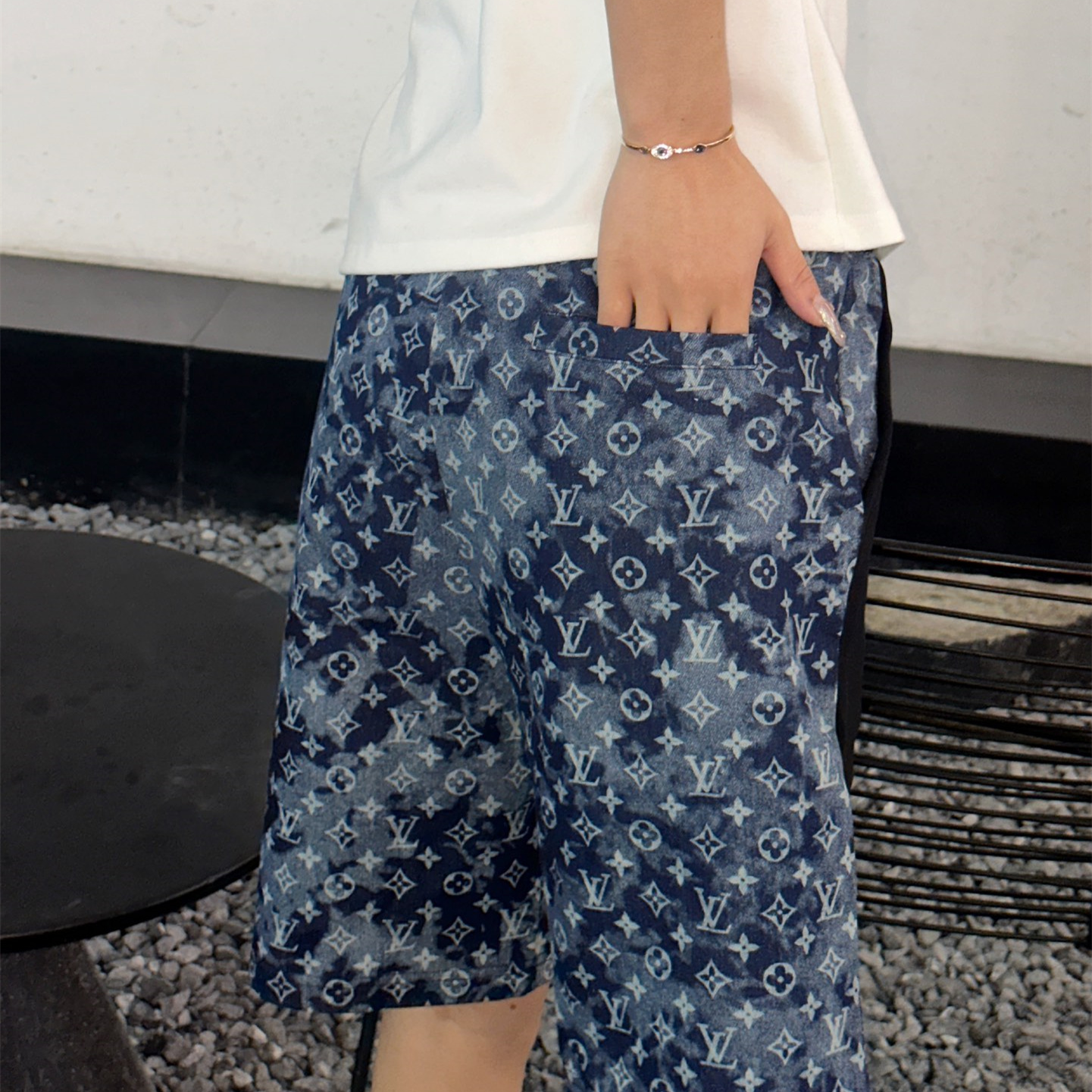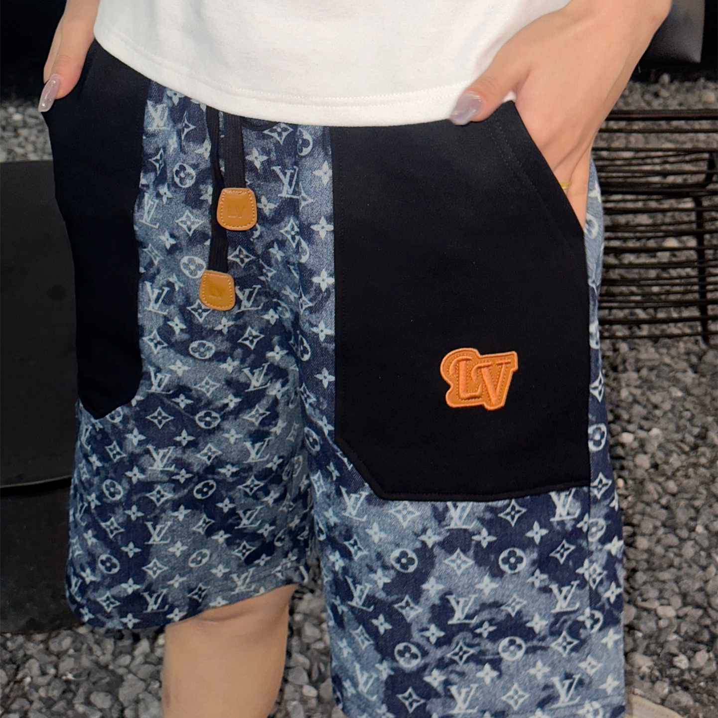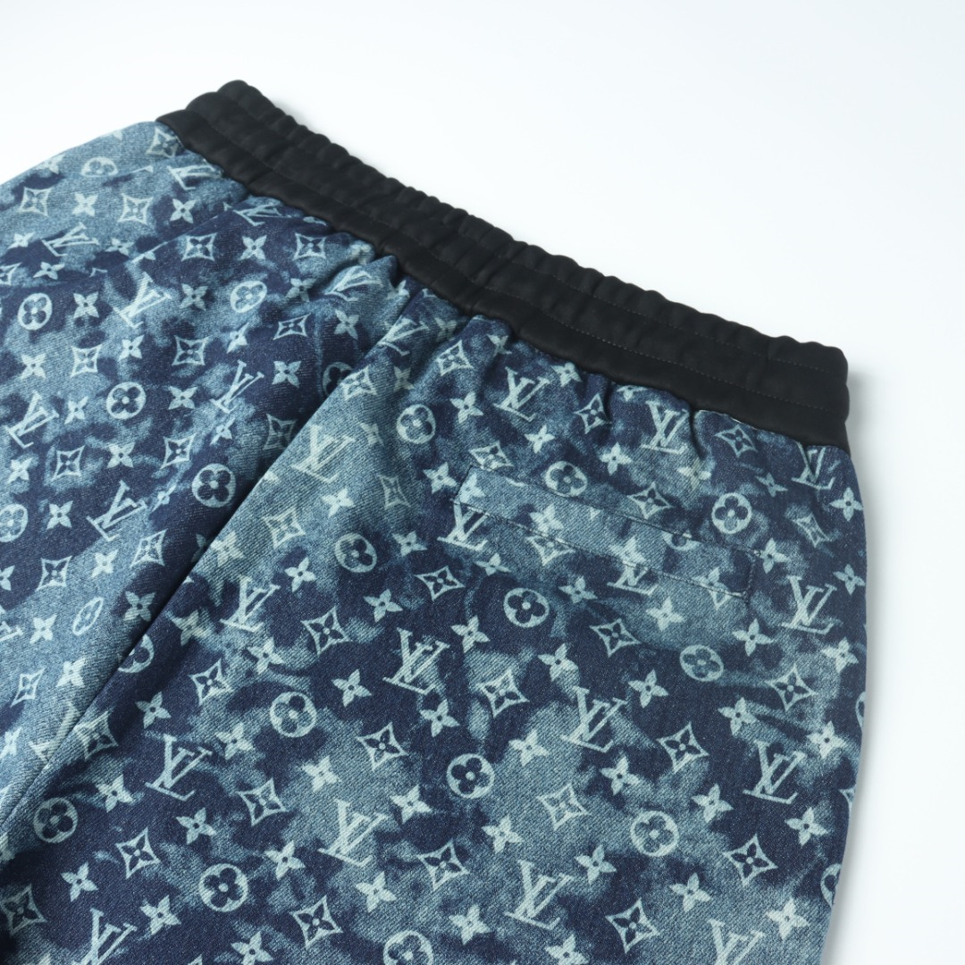 VUITTON路易威登滿印牛仔拼接大口袋短褲.男女同款全新美學靈感趣味設計,渠道性質精品.讓整體造型設計更加優雅時尚,今夏最火繫列,無數明星潮人追捧.裁剪工藝細節處理工整為玩味時尚增添色彩!工整細致,合身的版型構造更是獨具匠心,上身不僅有著出彩的辨識度更是減齡青春.