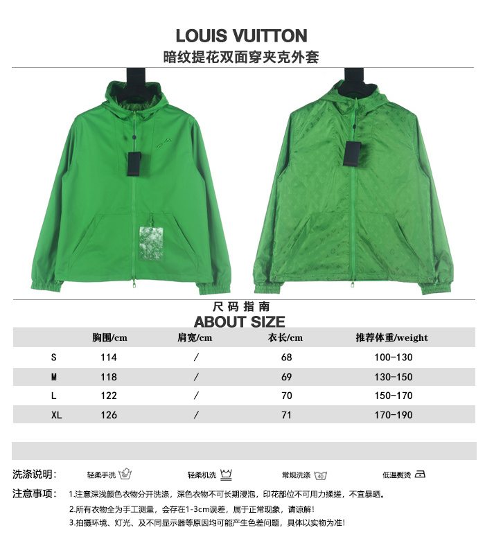 LOUIS VUITTON路易威登暗紋提花雙面穿夾克/外套/衝鋒衣,面料獨家定制,雙面穿搭簡單時尚.輔料zp開模制作,這款外套擁有全幅Monogram圖案和沈穩素色兩式選擇,搭配兜帽,拉鏈前襟,彈力袖口及下擺.LV-