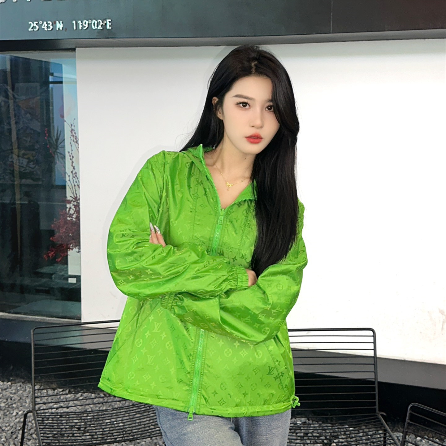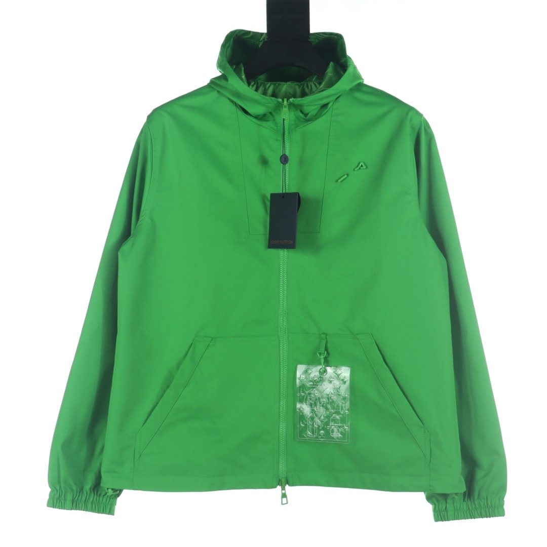 高仿LV*1AFR0072暗紋提花夾克衝鋒衣綠色