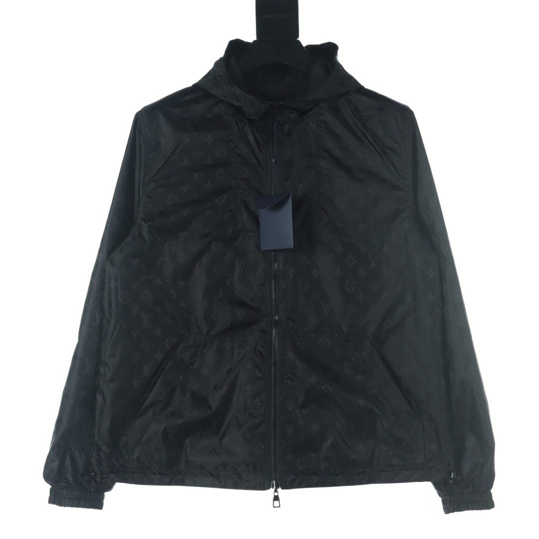 LOUIS VUITTON路易威登暗紋提花雙面穿夾克/外套/衝鋒衣,面料獨家定制,雙面穿搭簡單時尚.輔料zp開模制作,這款外套擁有全幅Monogram圖案和沈穩素色兩式選擇,搭配兜帽,拉鏈前襟,彈力袖口及下擺.LV-