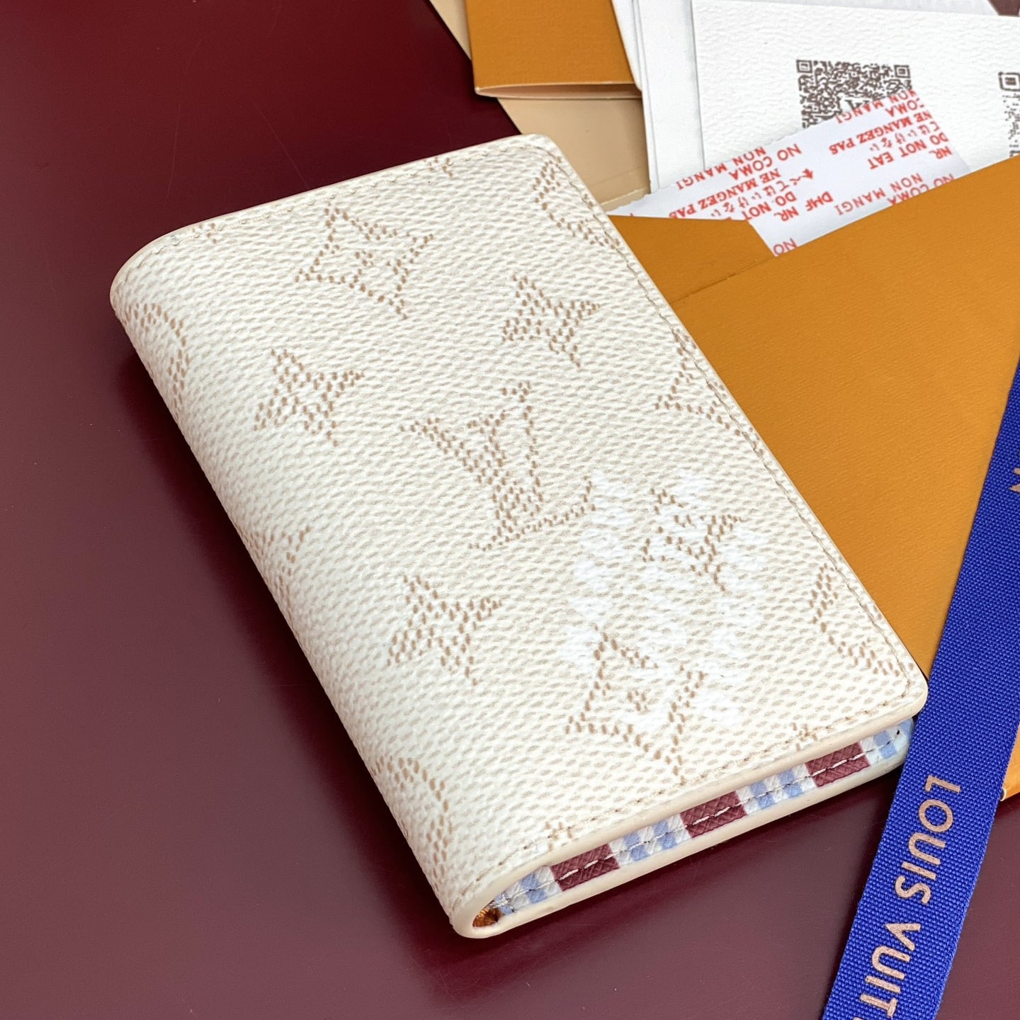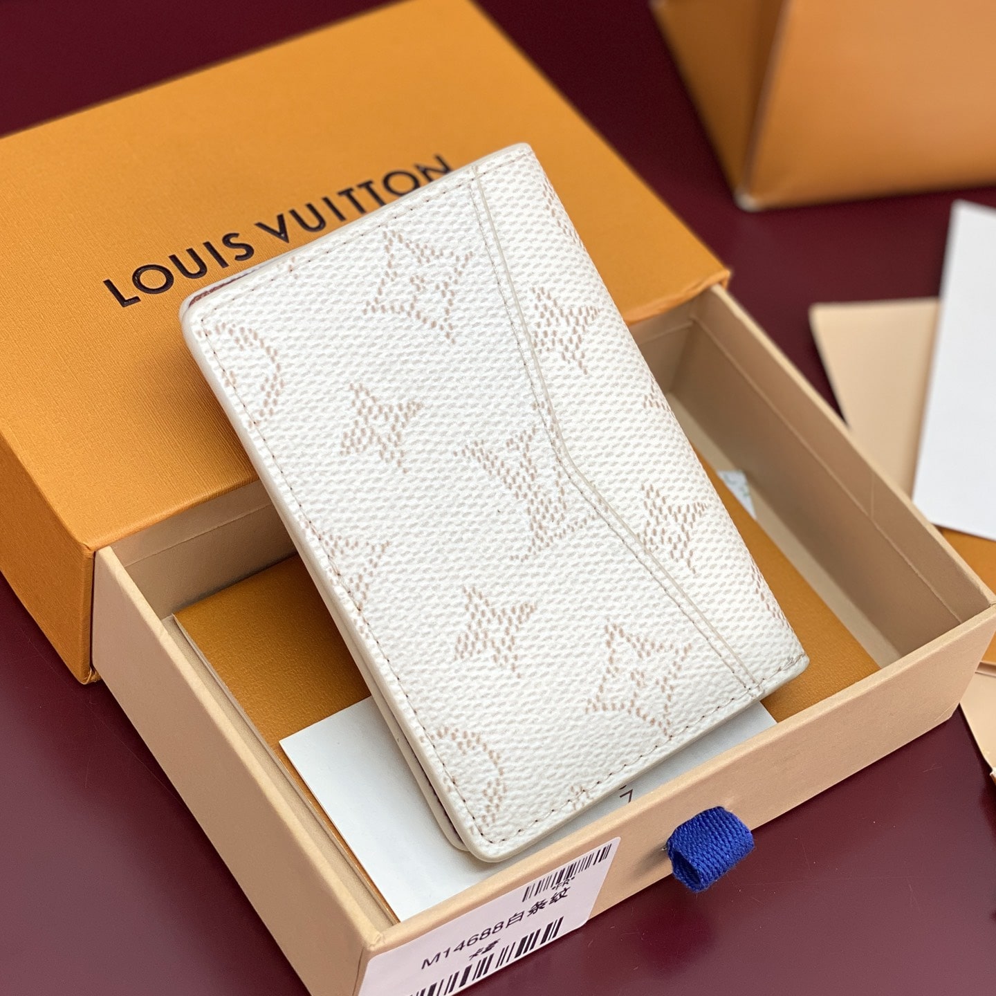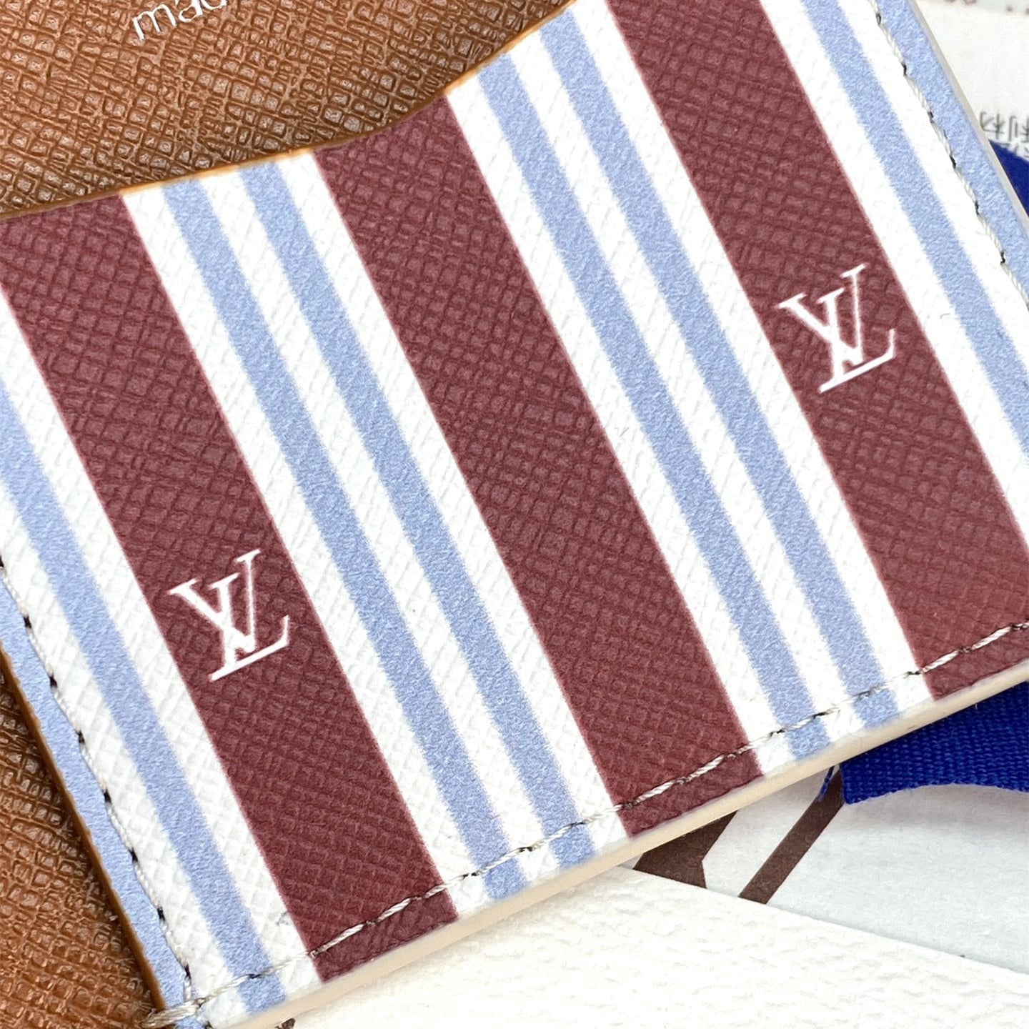 高仿LV-M14689白條紋卡夾卡包,本款卡包以Monogram Heritage塗層帆佈包裹印花牛皮革內襯,再於正面下方抒寫 Marque L.Vuitton Déposée標識,內設卡片夾層與貼袋,可妥善收納相關信用卡以及八達通.