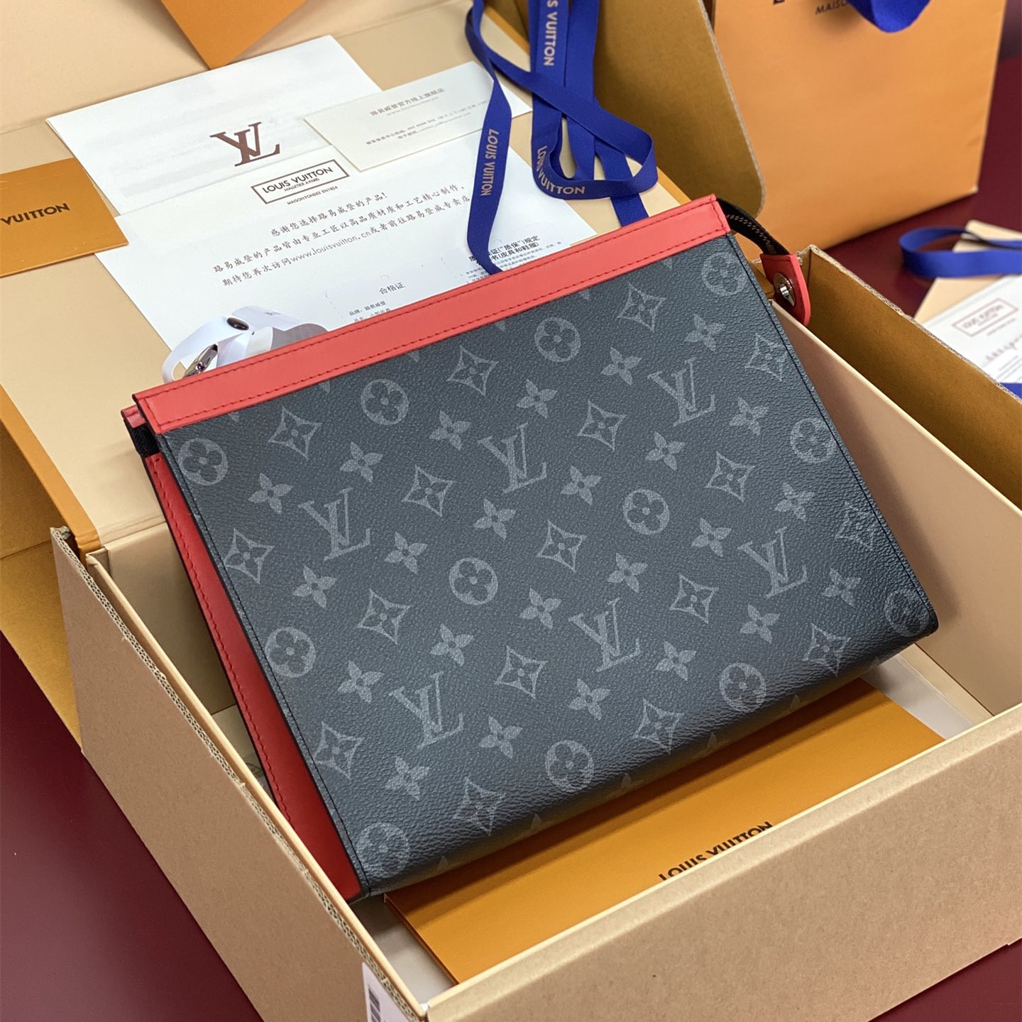 升級版本高仿LV*M26031黑花橙芯片版.當季新款POCHETTE VOYAGE中號手拿包,Pochette Voyage中號手拿包取材Monogram