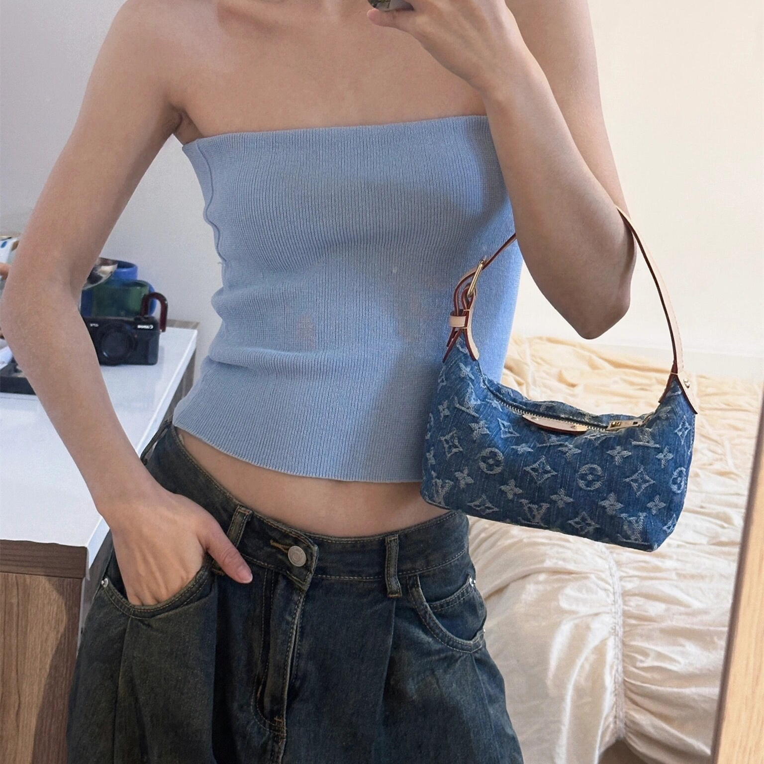 材質:水洗丹寧 / 法國進口羊毛線 / 金屬釦具