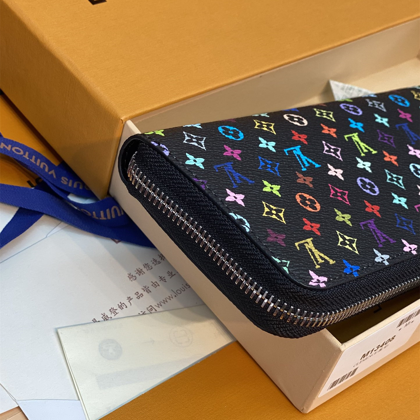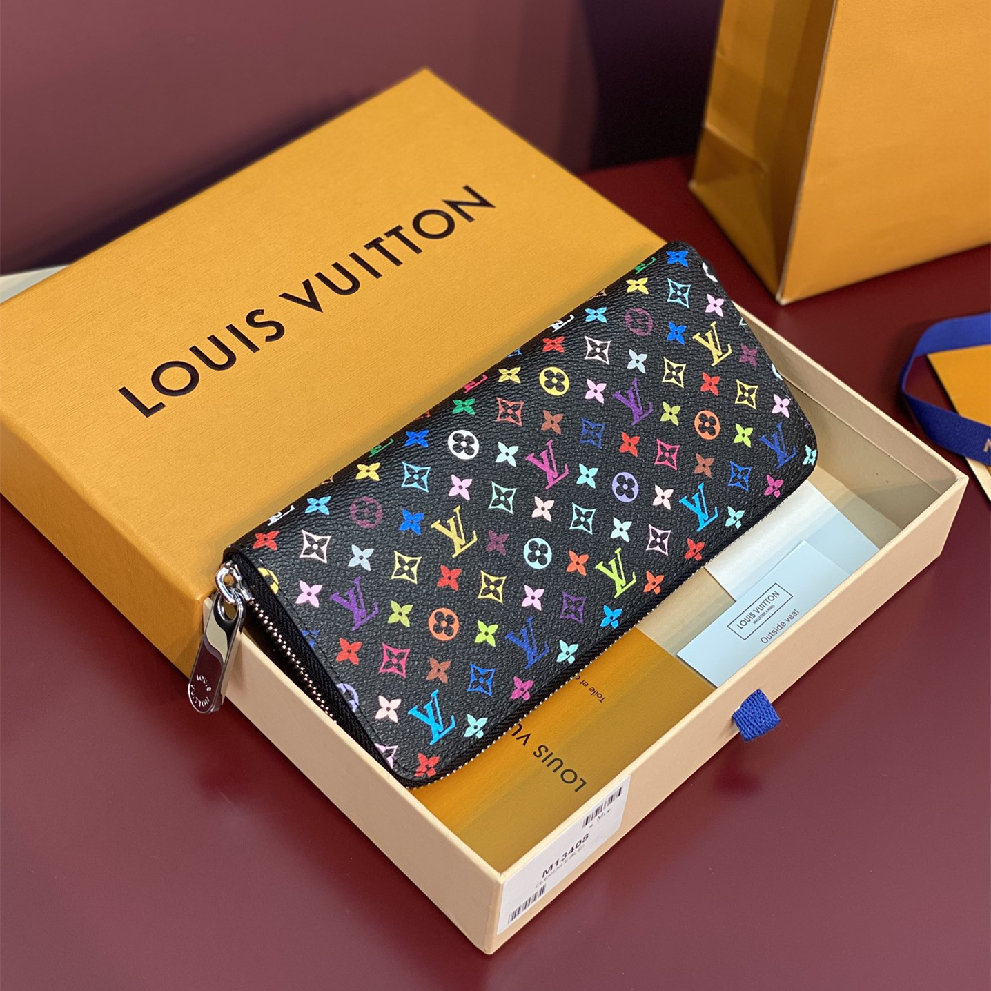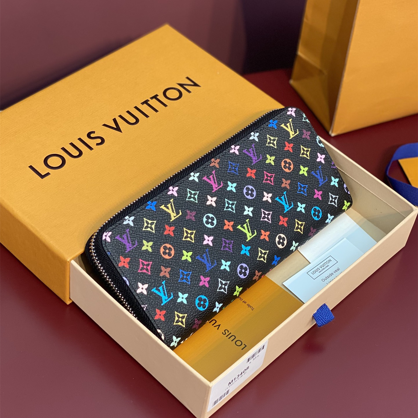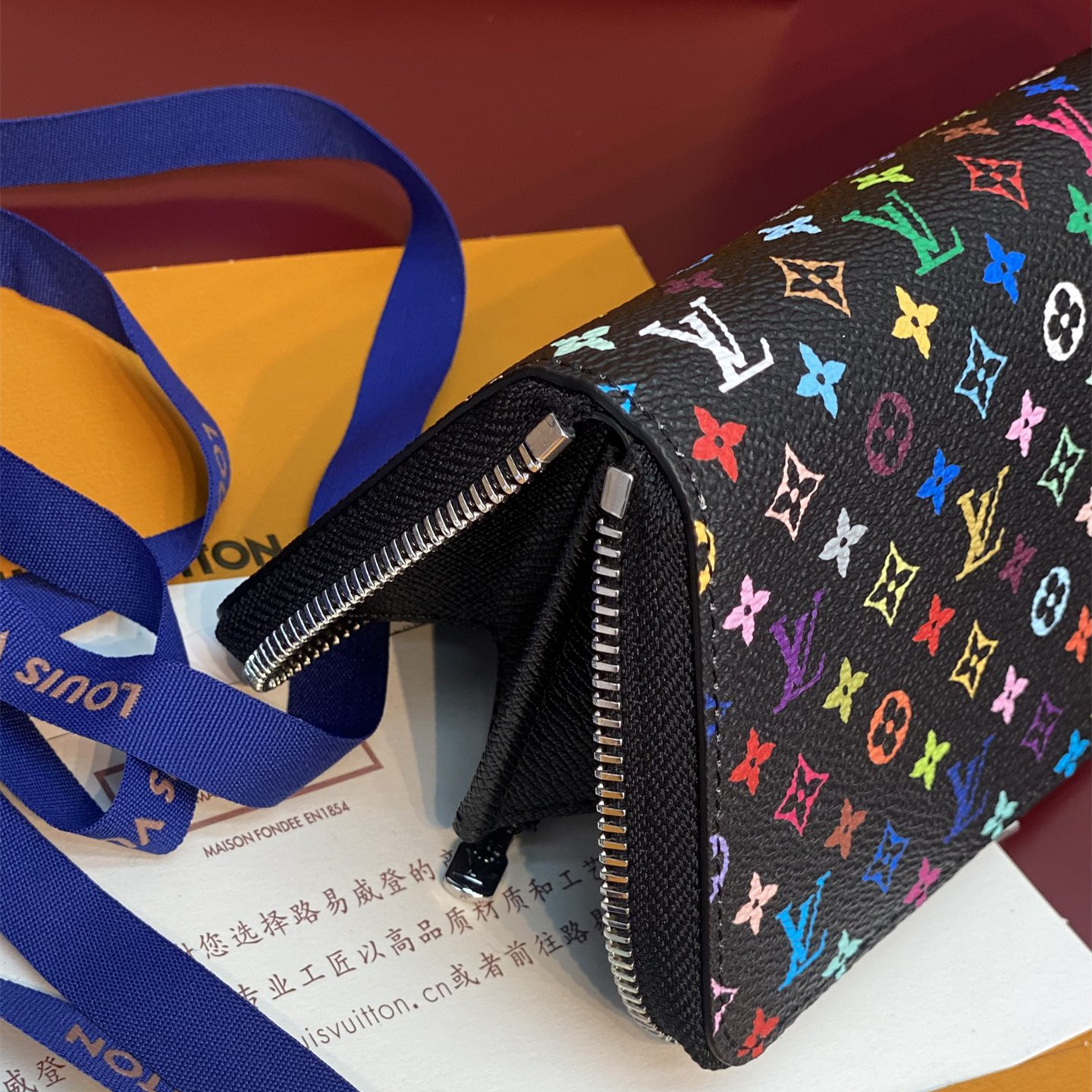 高仿LV x TM 拉鏈包 Louis Vuitton SARAH錢夾系列經典款!M13408 黑彩,Murakami 內部設計巧妙,擁有眾多口袋和信用卡插槽采用純銅五金配柔軟小牛皮,精製而成,搭配瑞士進口拉鏈,專櫃同步,實用與百搭必備單品.