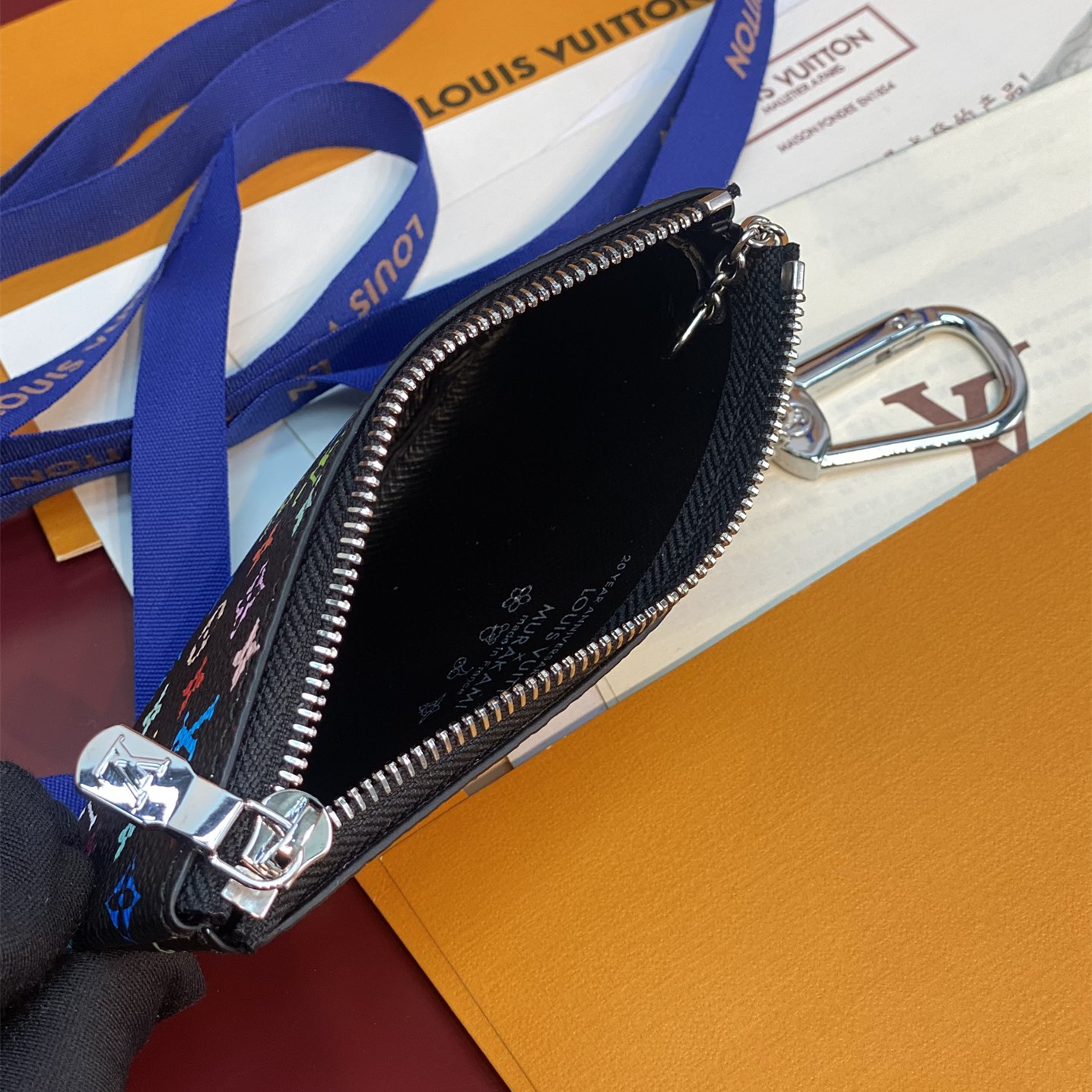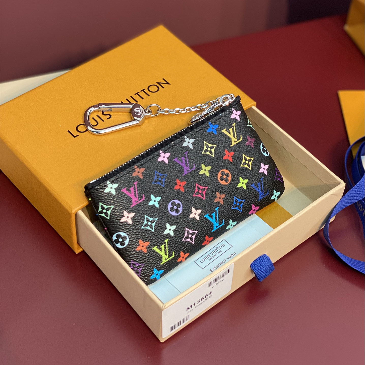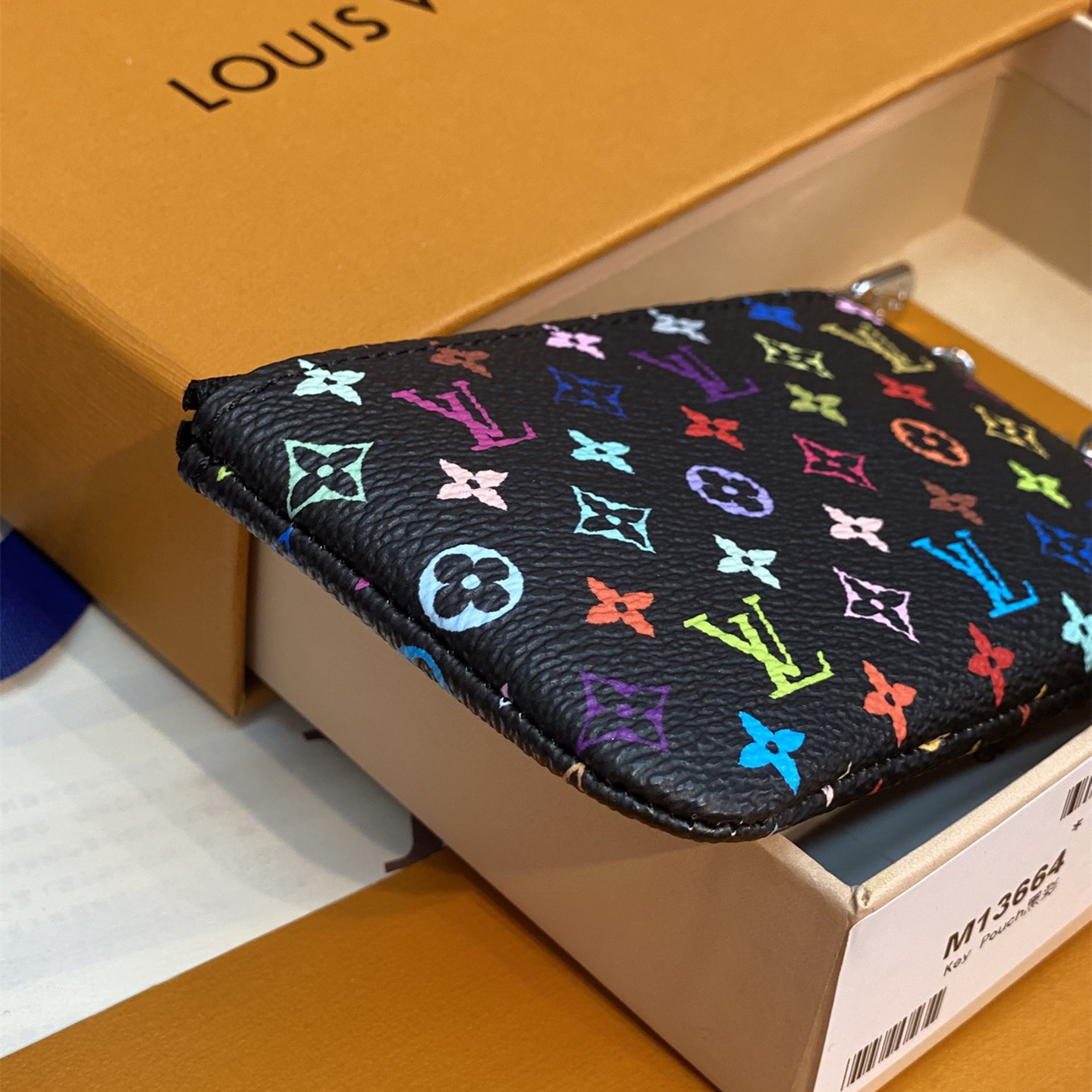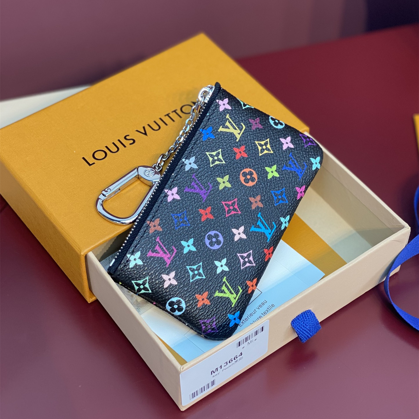 Murakami系列的鑰匙零錢包M13664黑三彩繽紛絢麗,採用塗層帆布製成,充滿活力的標誌性Monogram圖案以日本藝術家村上隆的主題彩虹色調將品牌標誌重新演譯.鑰匙零錢包設有銀色拉鏈,並備有鏈帶及鉤扣,可穩妥存放鑰匙.