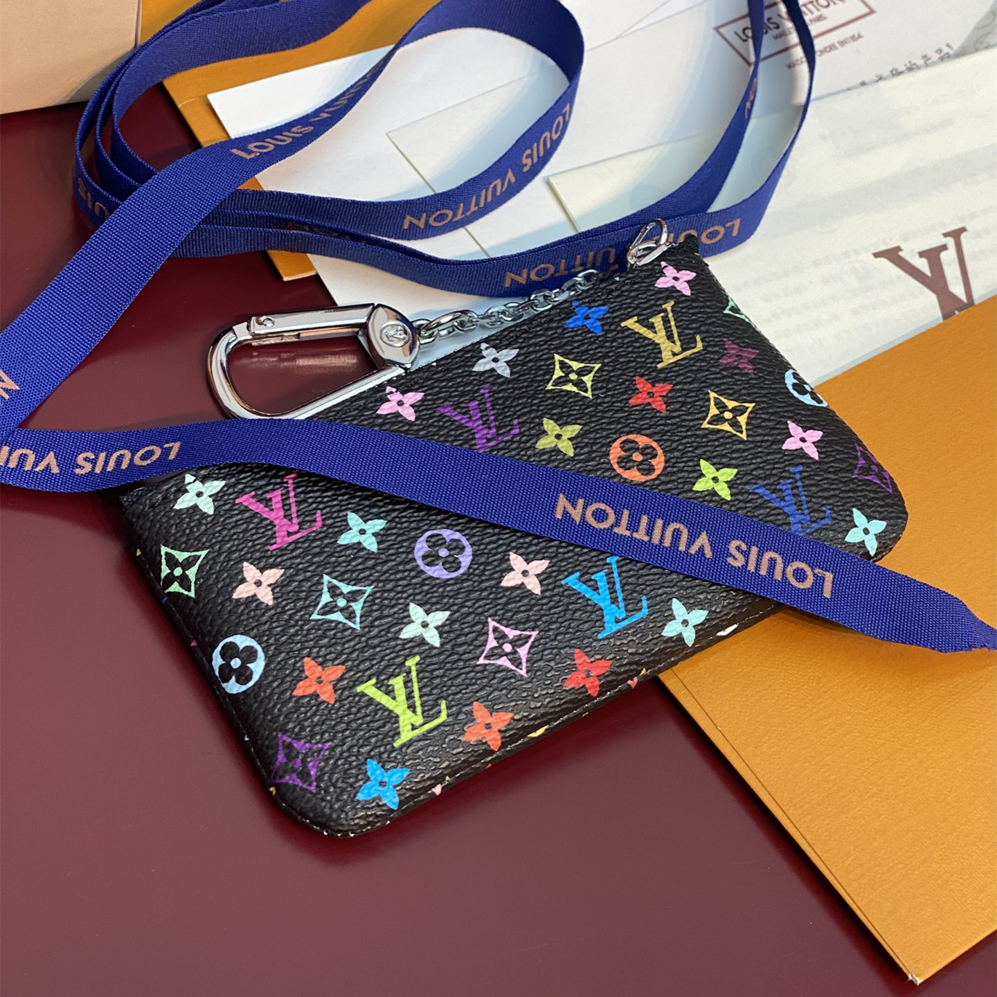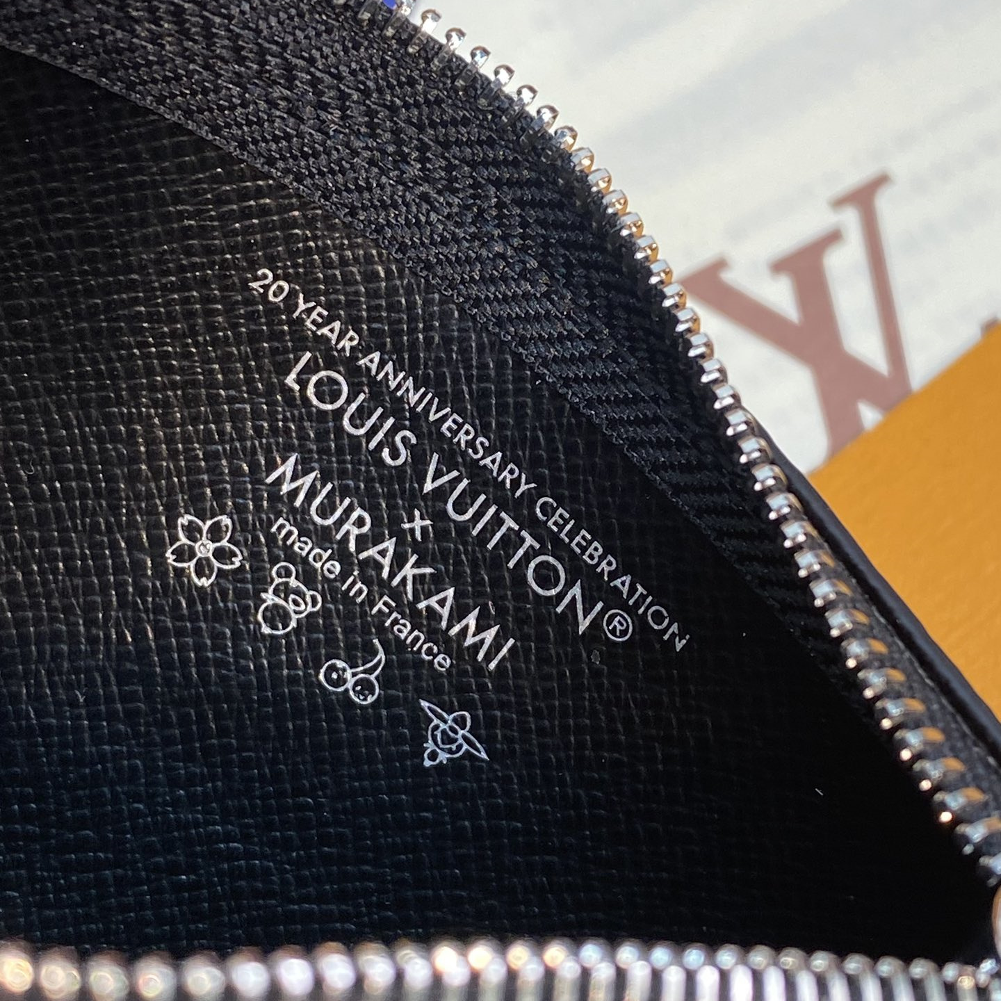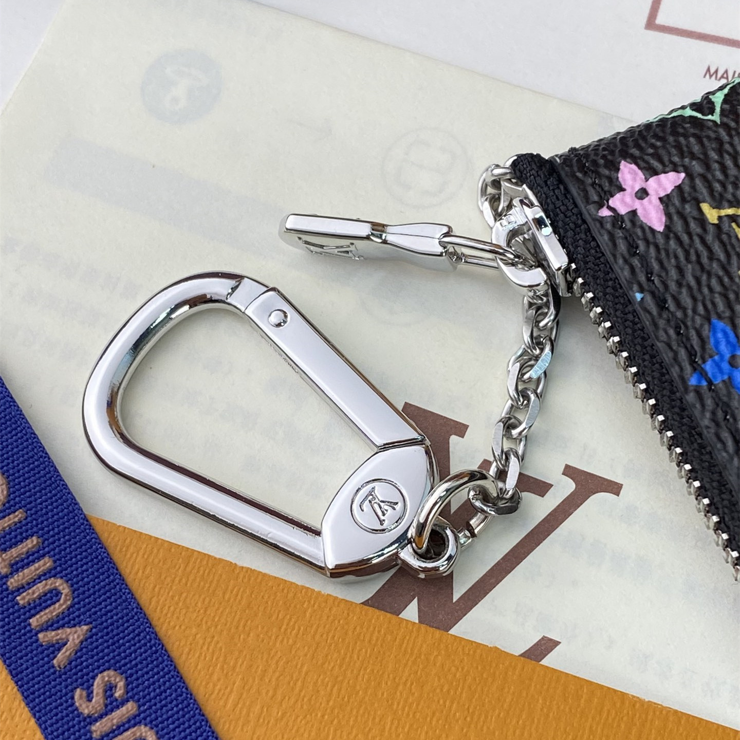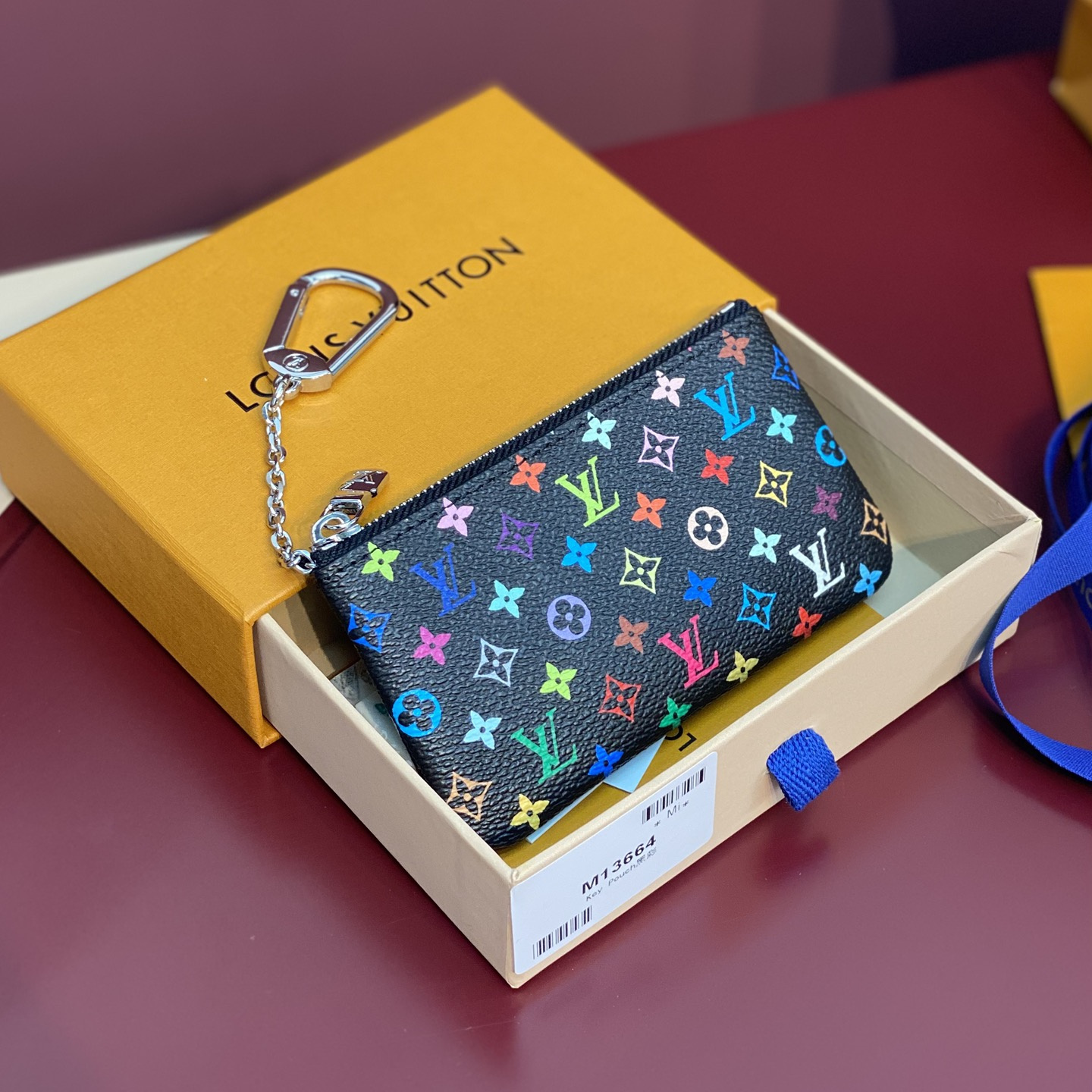Murakami系列的鑰匙零錢包M13664黑三彩繽紛絢麗,採用塗層帆布製成,充滿活力的標誌性Monogram圖案以日本藝術家村上隆的主題彩虹色調將品牌標誌重新演譯.鑰匙零錢包設有銀色拉鏈,並備有鏈帶及鉤扣,可穩妥存放鑰匙.