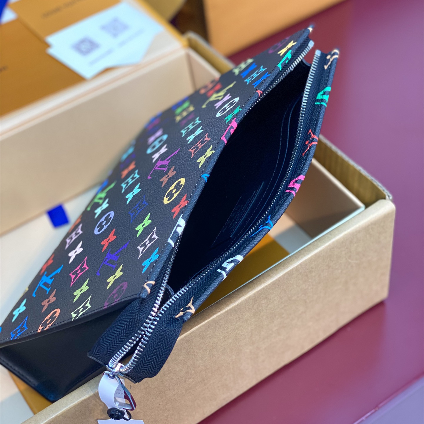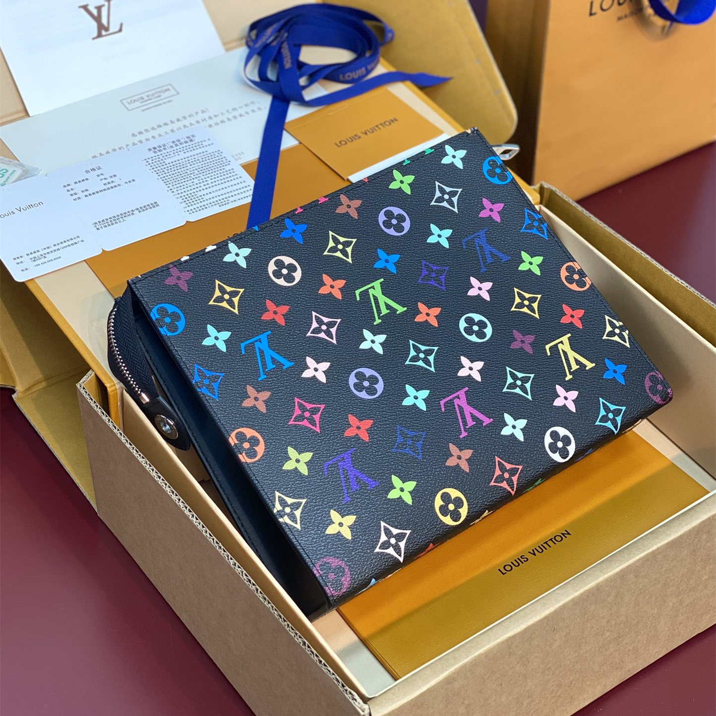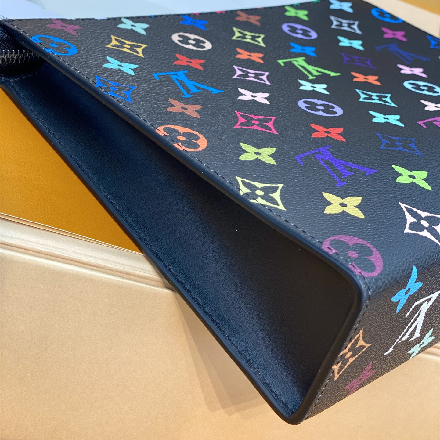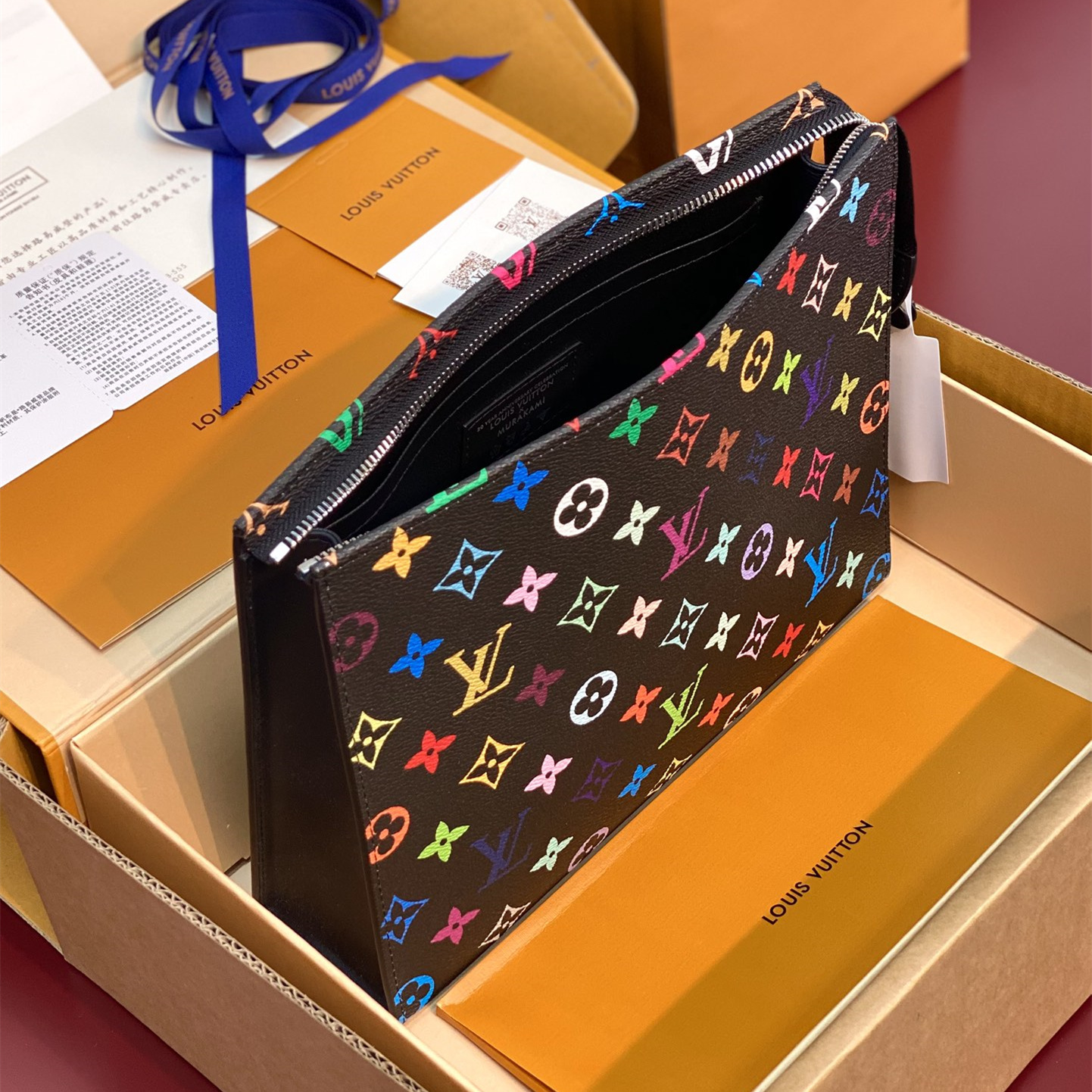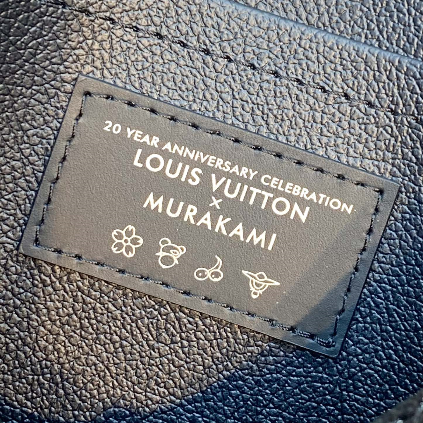 高仿LV*M13746Murakami Takashi聯名款黑三彩手拿包免檢版