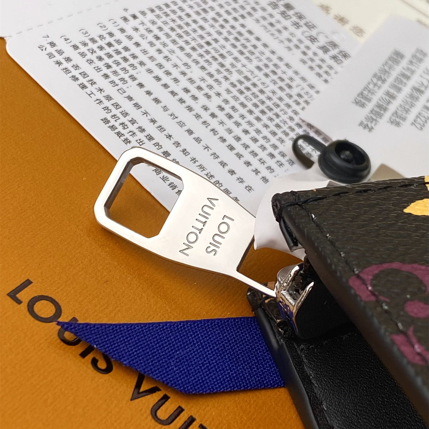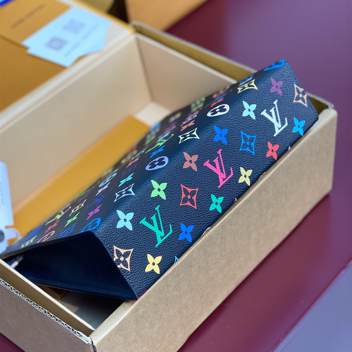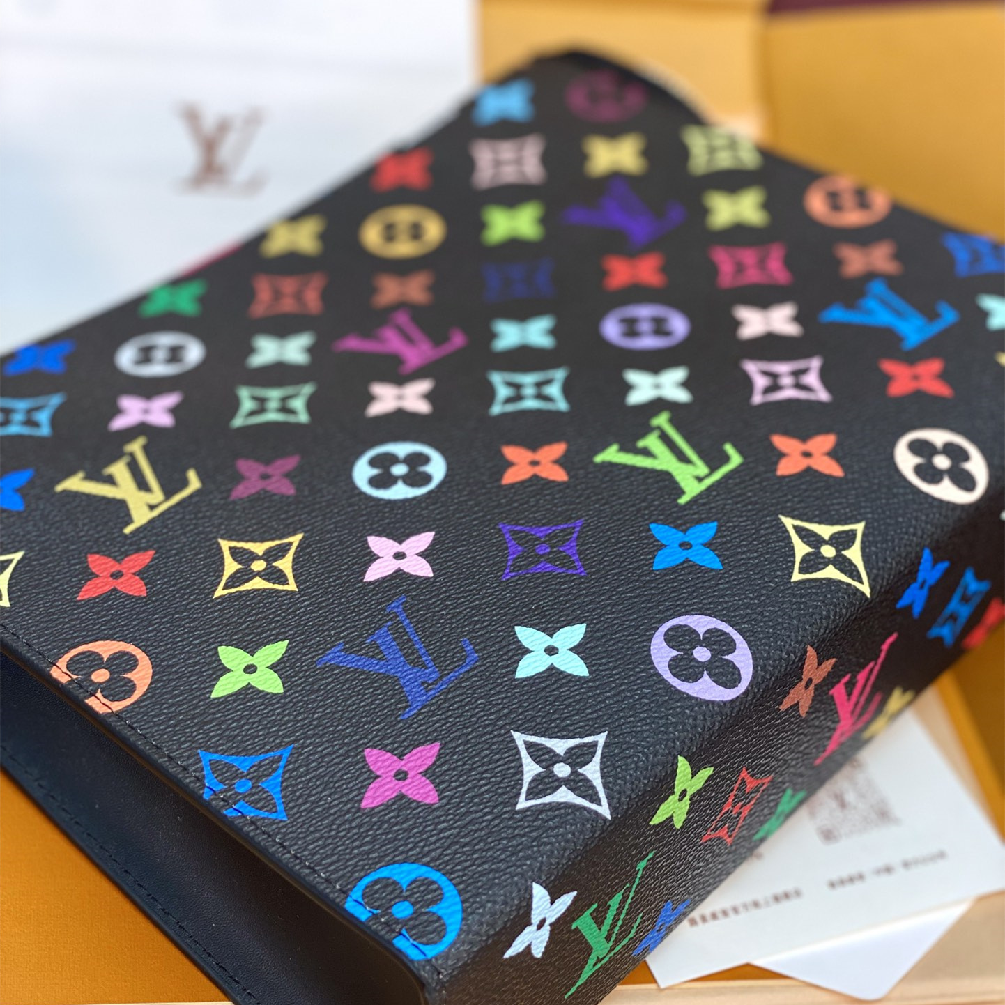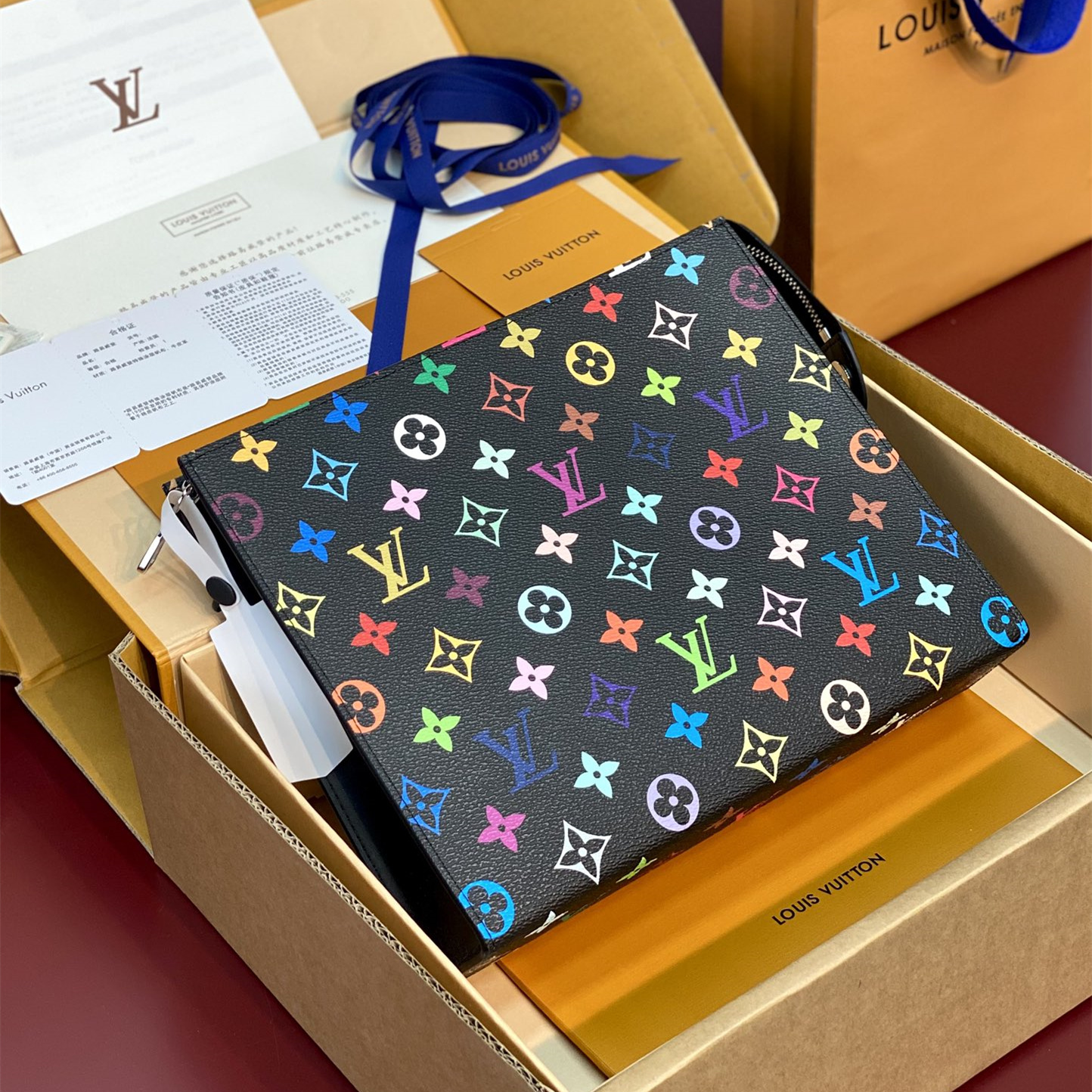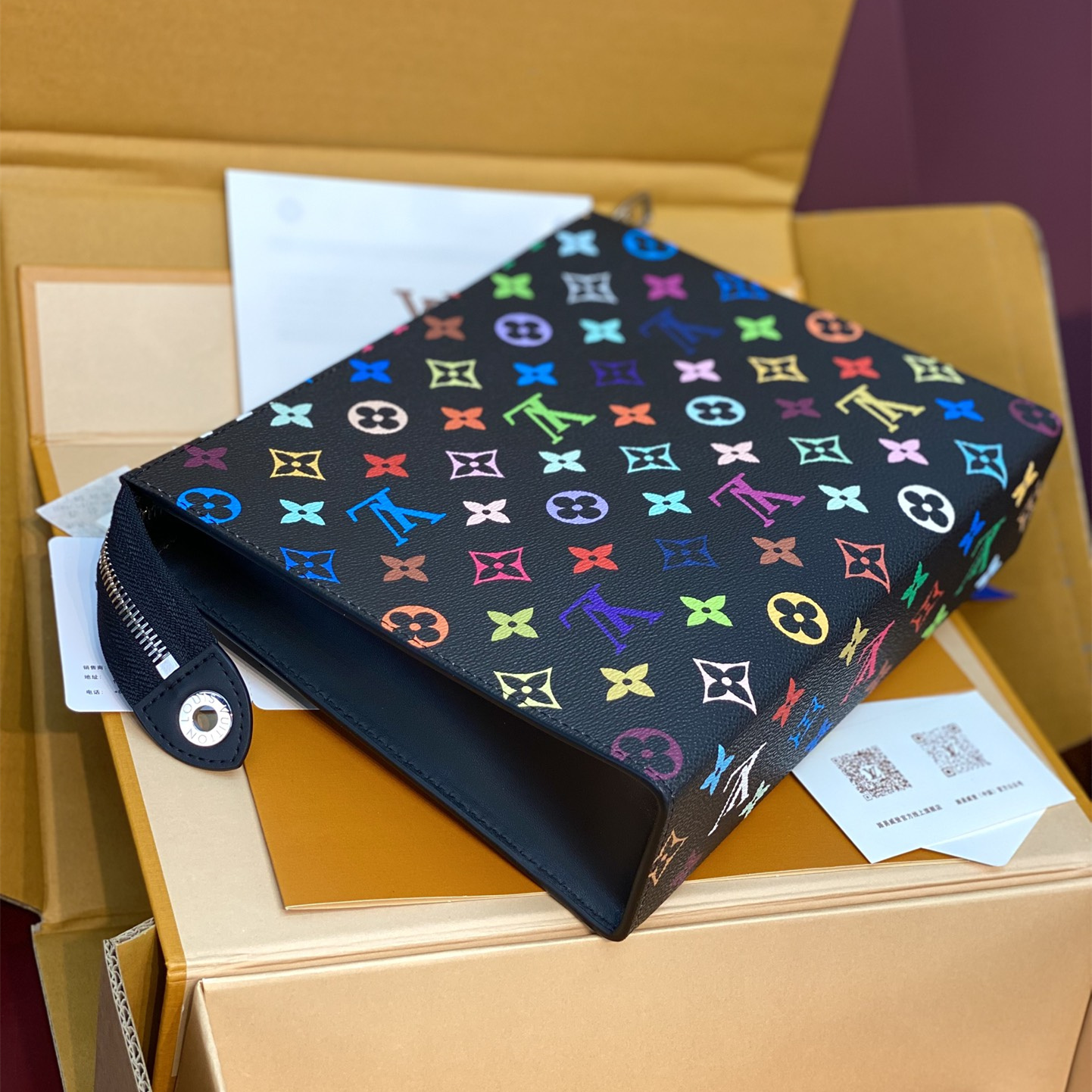 高仿LV*M13746Murakami Takashi聯名款黑三彩手拿包免檢版