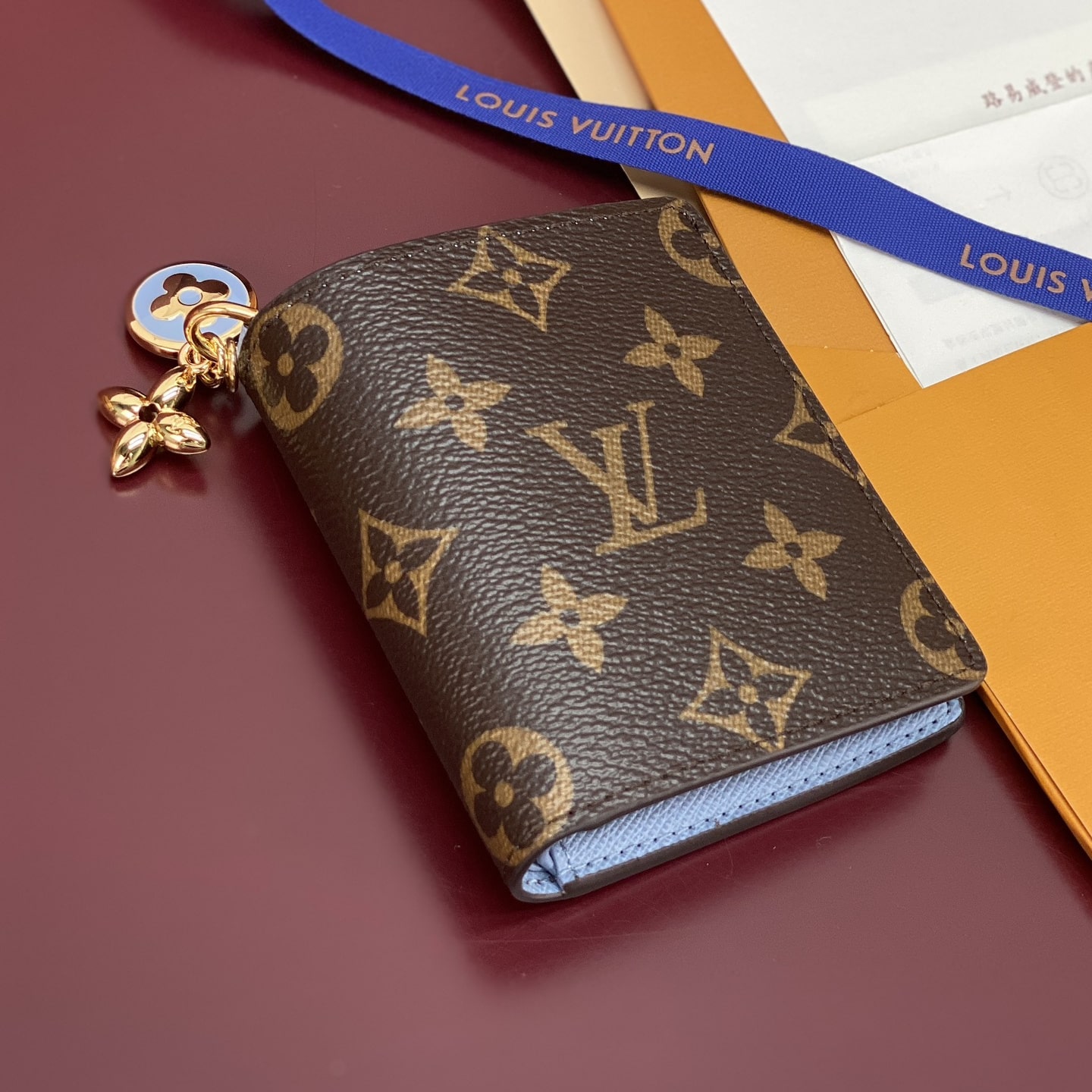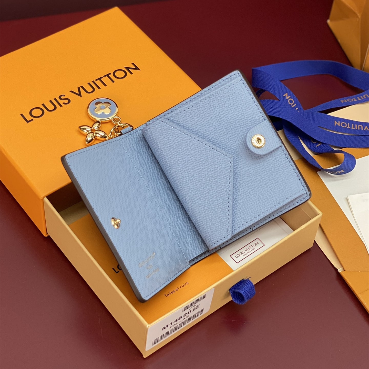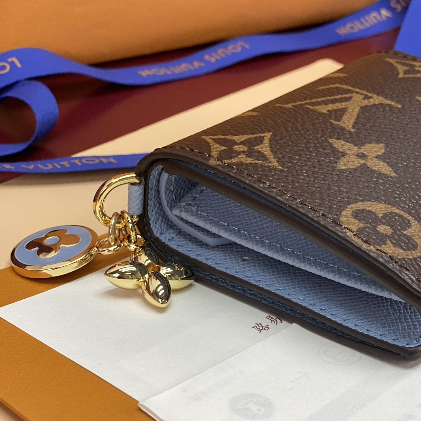 高仿LV*M14613掛墜LOGO內裡藍色錢包免檢版