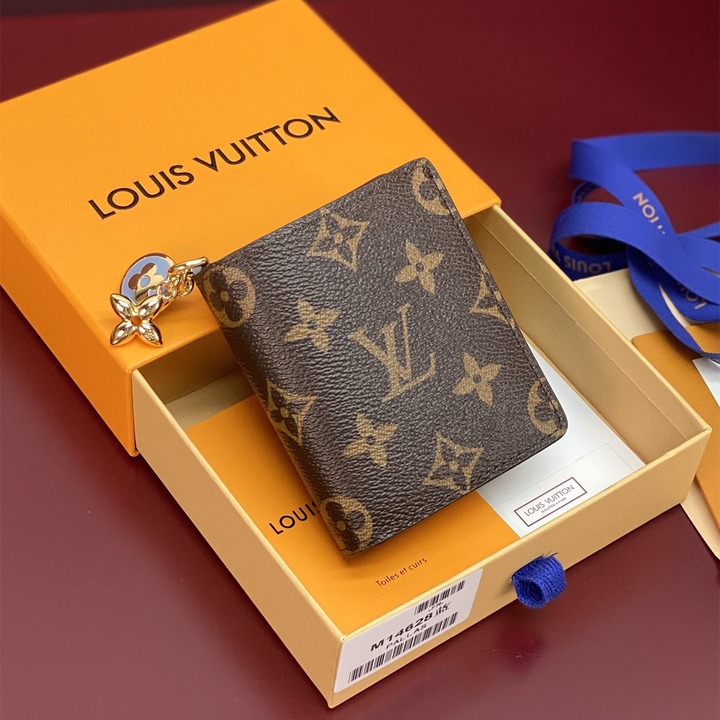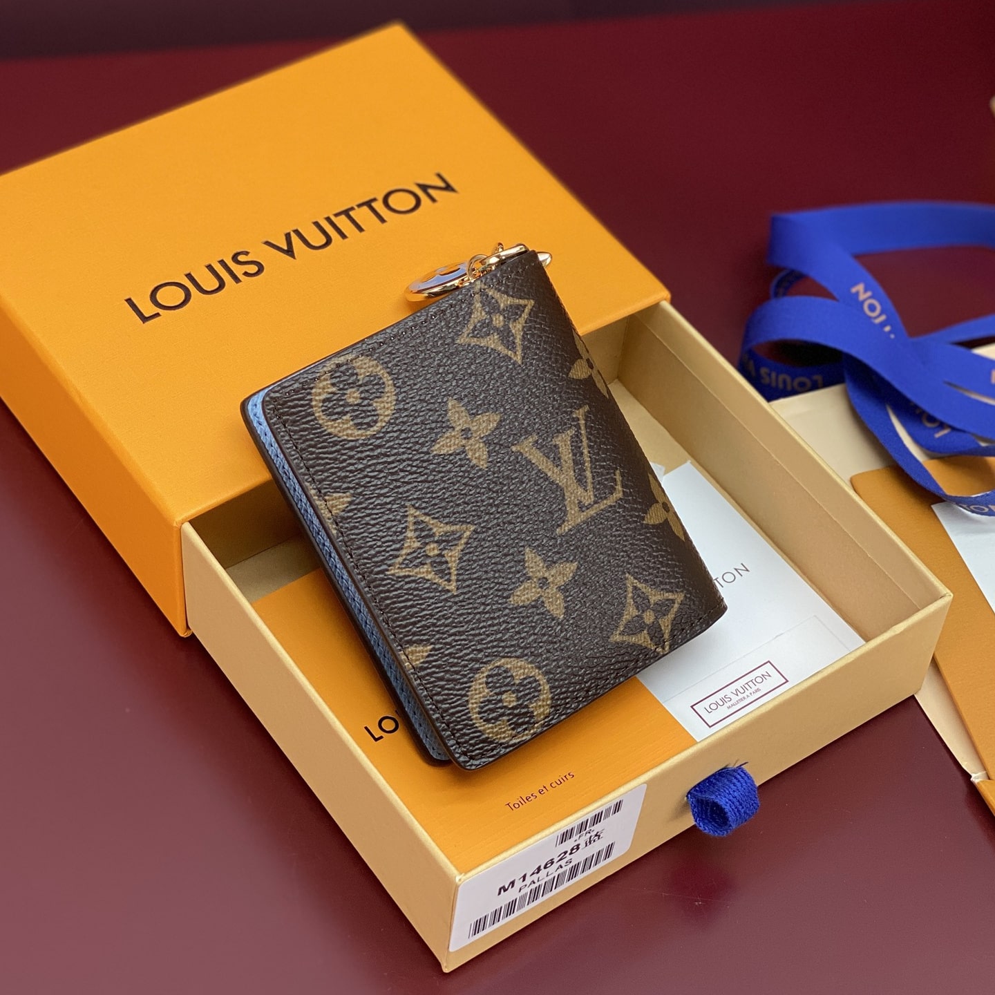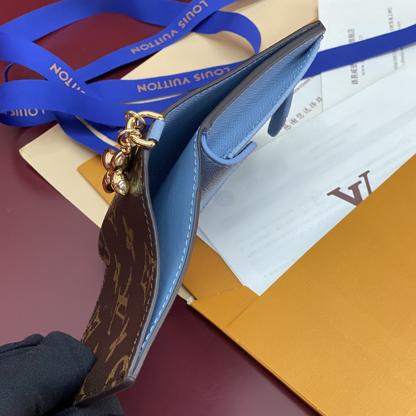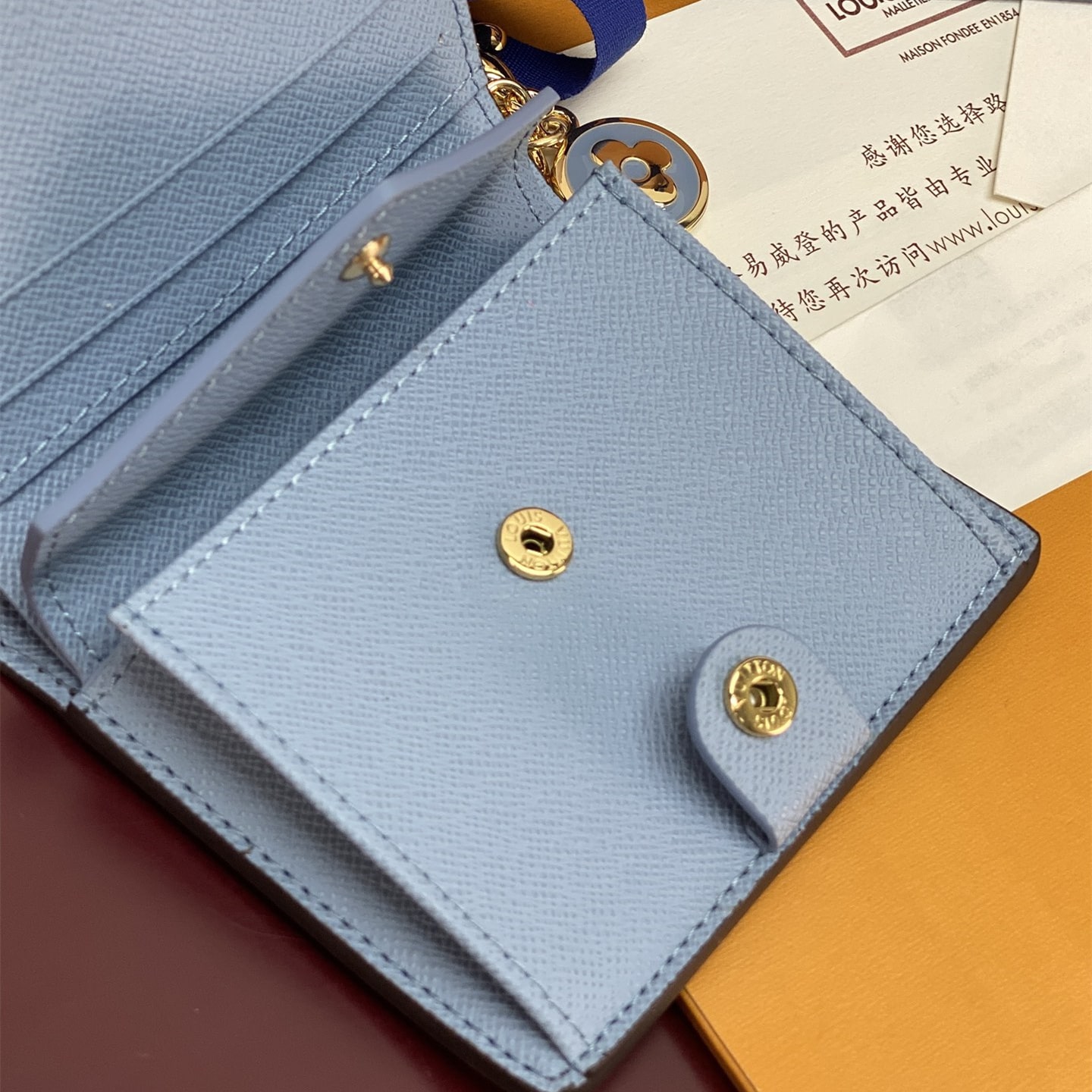 高仿LV*M14613掛墜LOGO內裡藍色錢包免檢版