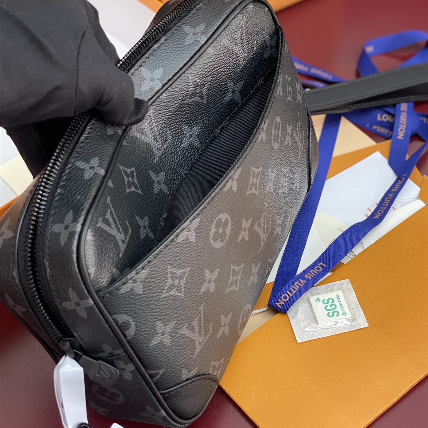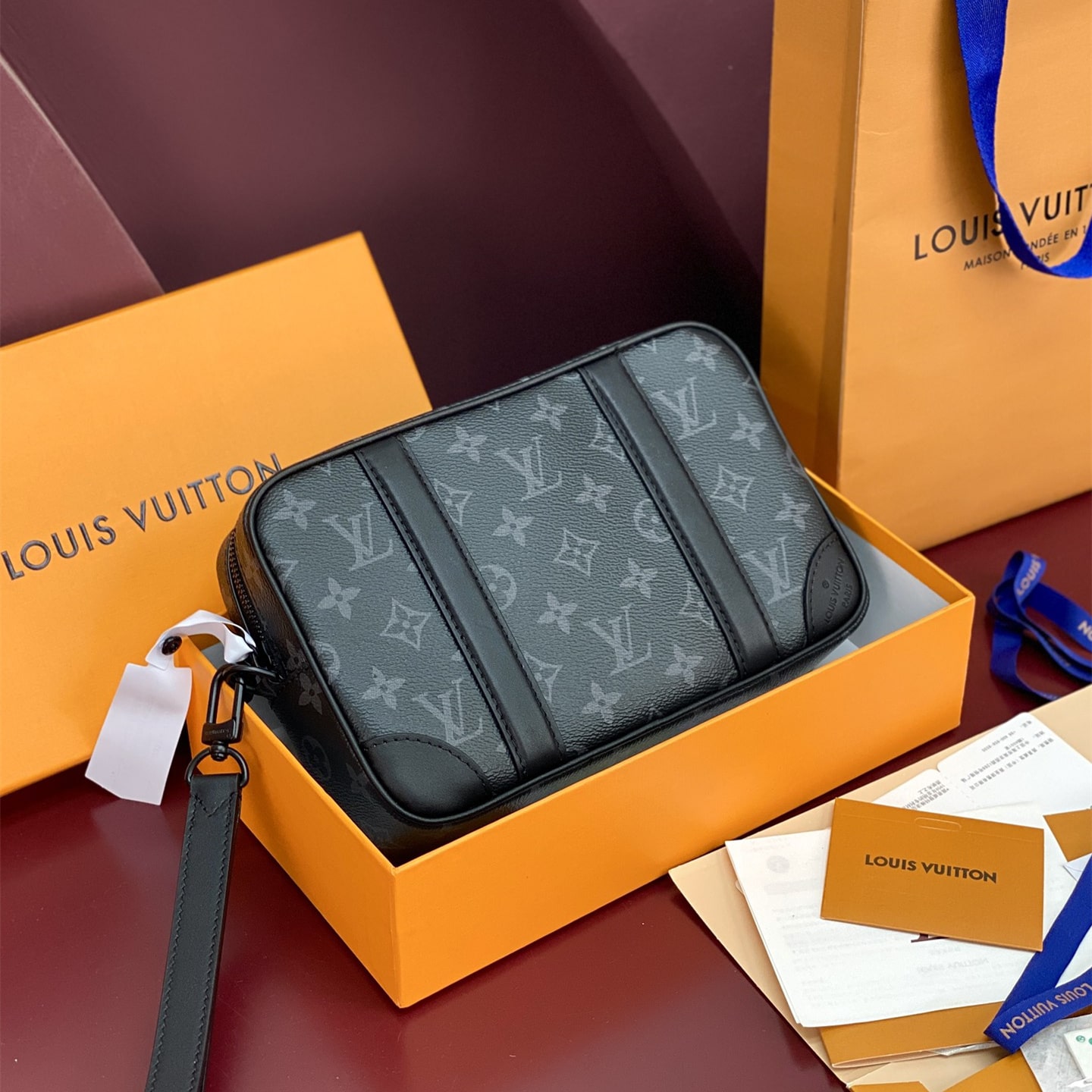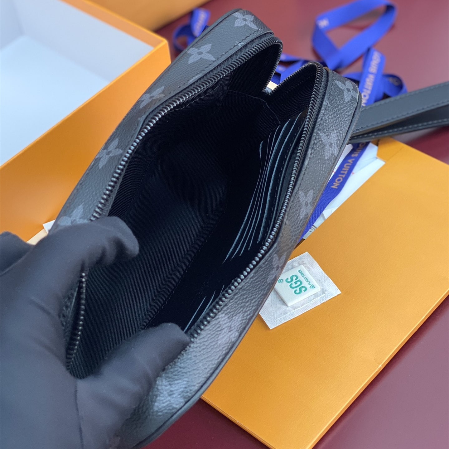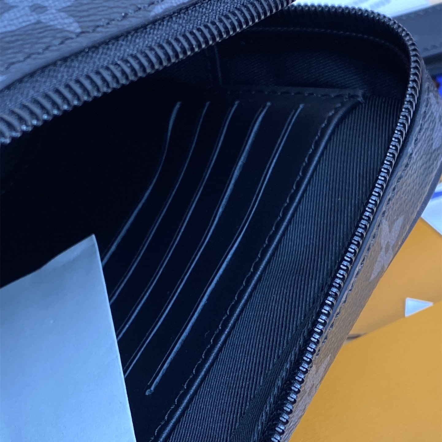 KASAI純原M82076黑花,芯片版手拿包.這款Kasaï郵袋由Damier石墨帆佈制成,正面有加固的角落和黑色皮革帶,以及拉鏈後袋.其寬大的拉鏈開口可以進入三個扁平口袋和十個卡槽,這件作品可以作為袋子佩戴,也可以通過其可拆卸的腕帶戴在手腕上.