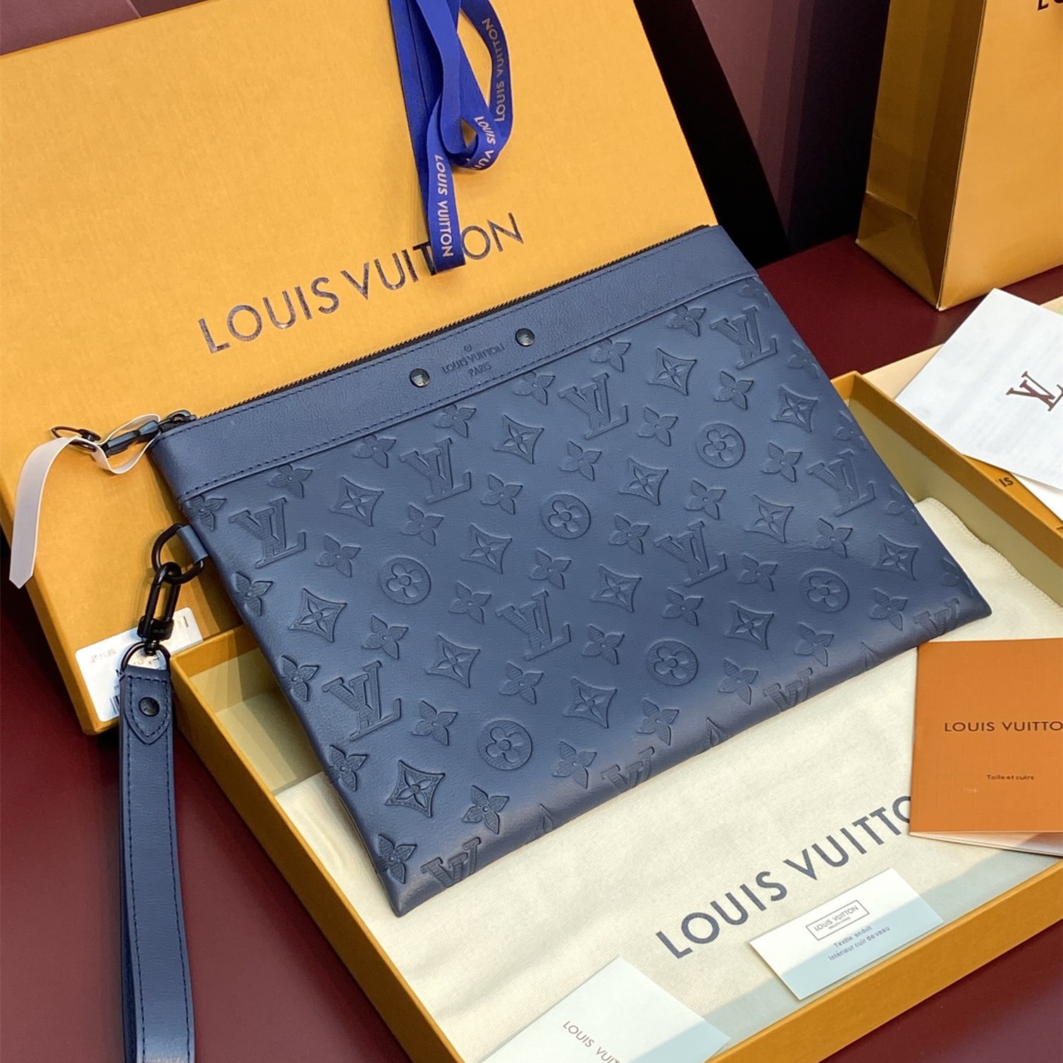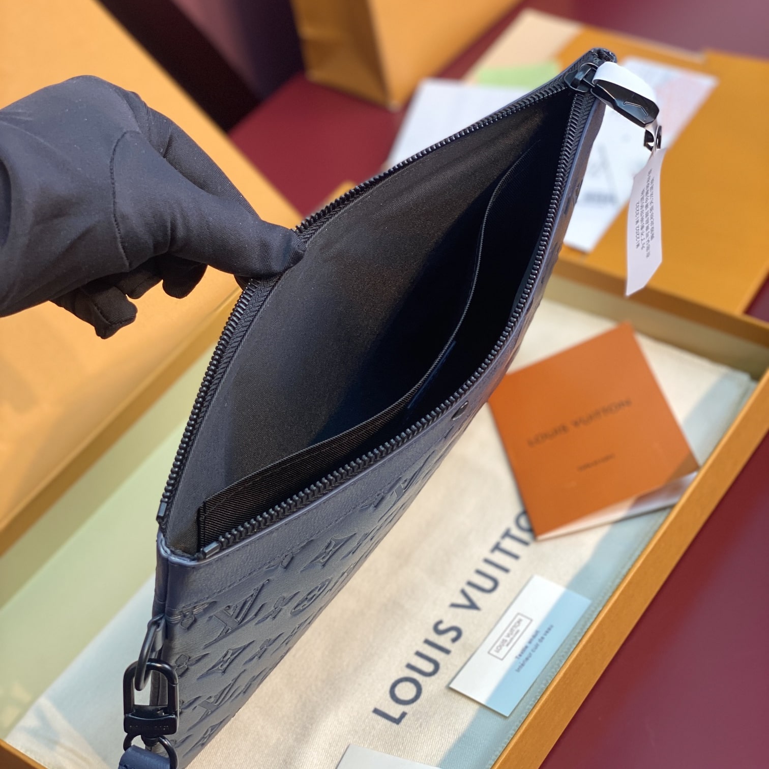 高仿LV*PochetteTogo系列M81579牛皮印花手拿包黑色免檢版