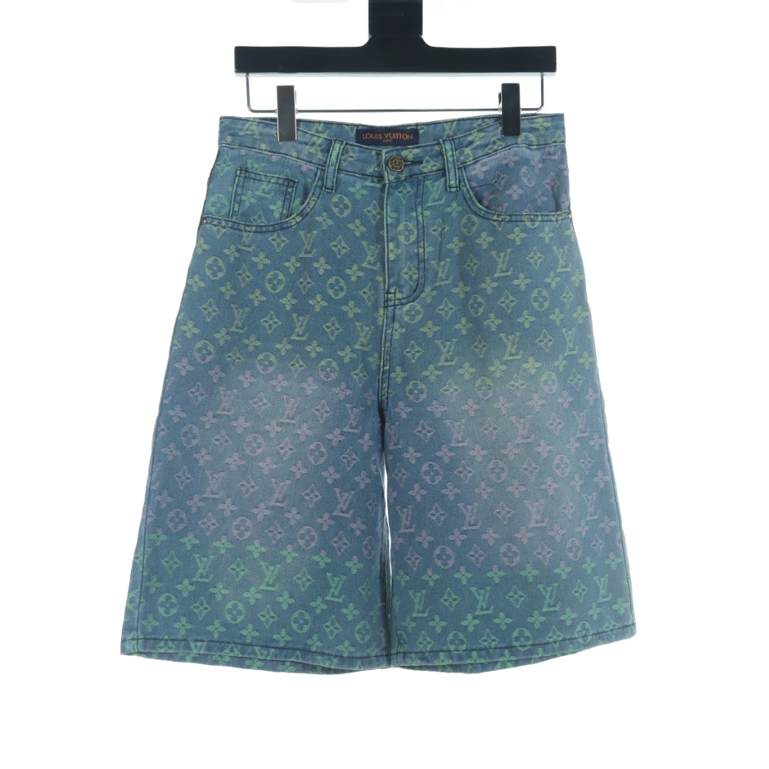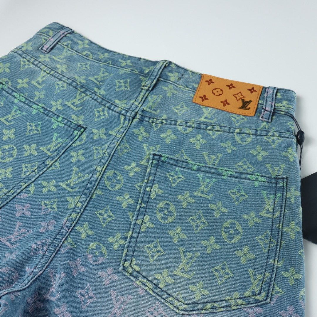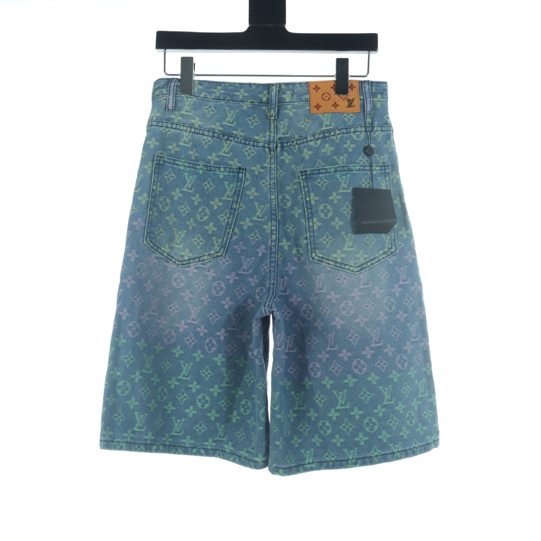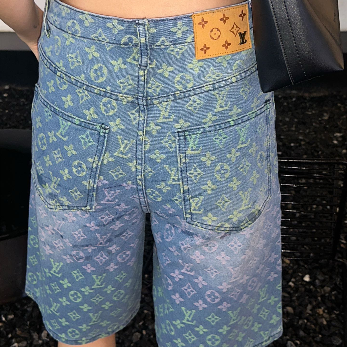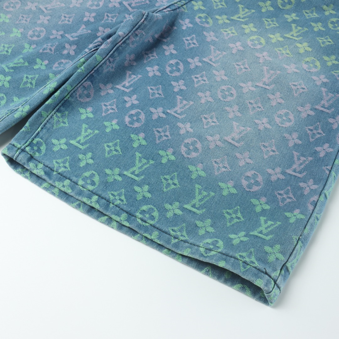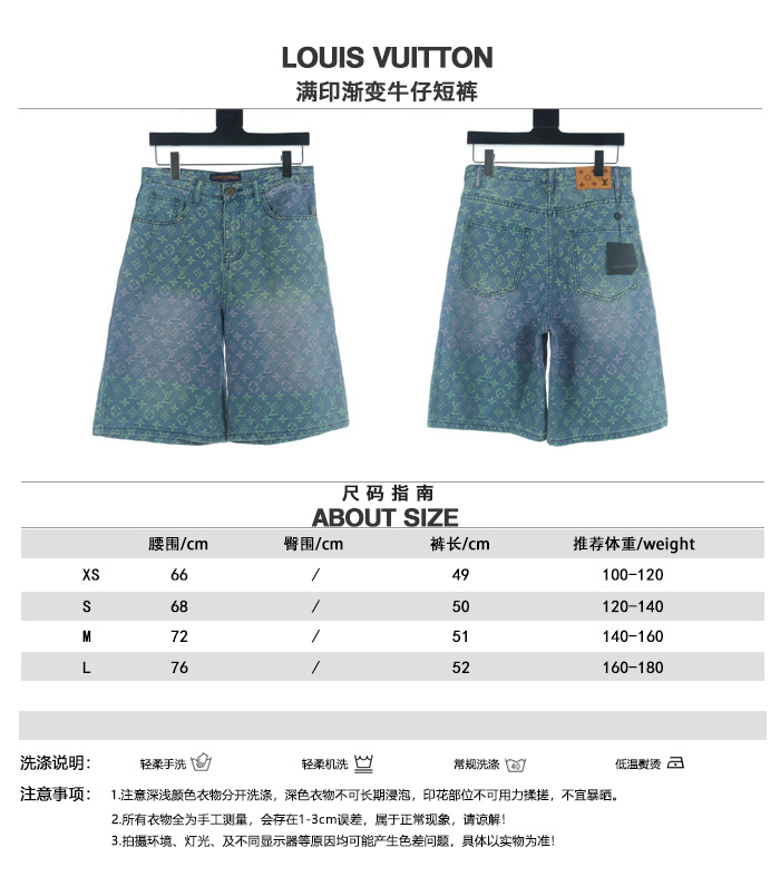 VUITTON/路易威登滿印漸變牛仔短褲.男女同款全新美學靈感趣味設計,渠道性質精品.讓整體造型設計更加優雅時尚,今夏最火繫列,無數明星潮人追捧.裁剪工藝細節處理工整為玩味時尚增添色彩,工整細致,合身的版型構造更是獨具匠心,上身不僅有著出彩的辨識度更是減齡青春.一款穿著意義還有穿搭性能都很極致的款式,絢麗的色繫調配,此款的工藝必然也是極致非凡,上身的舒適度絕對足夠的強大,也是奢品本質的一種彰顯.柔軟輕薄,觸感更是極端撩人,透氣性能十分之強大,尤為適合春夏季節的穿搭所需,妥妥的穿著享受,併且各處的細節以及織帶的工藝都是盡善盡美,更顯高級感,可與配套短褲搭配.