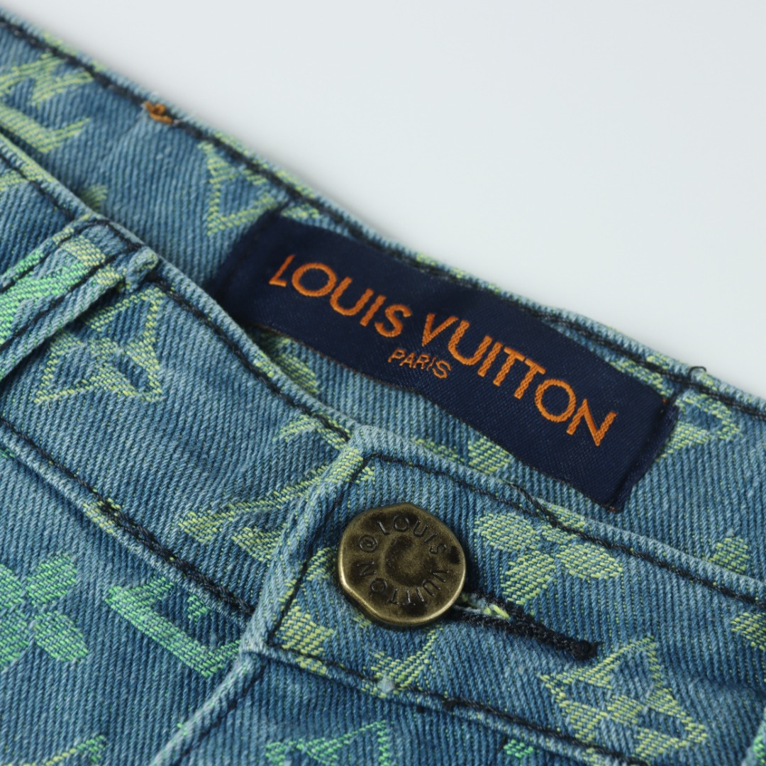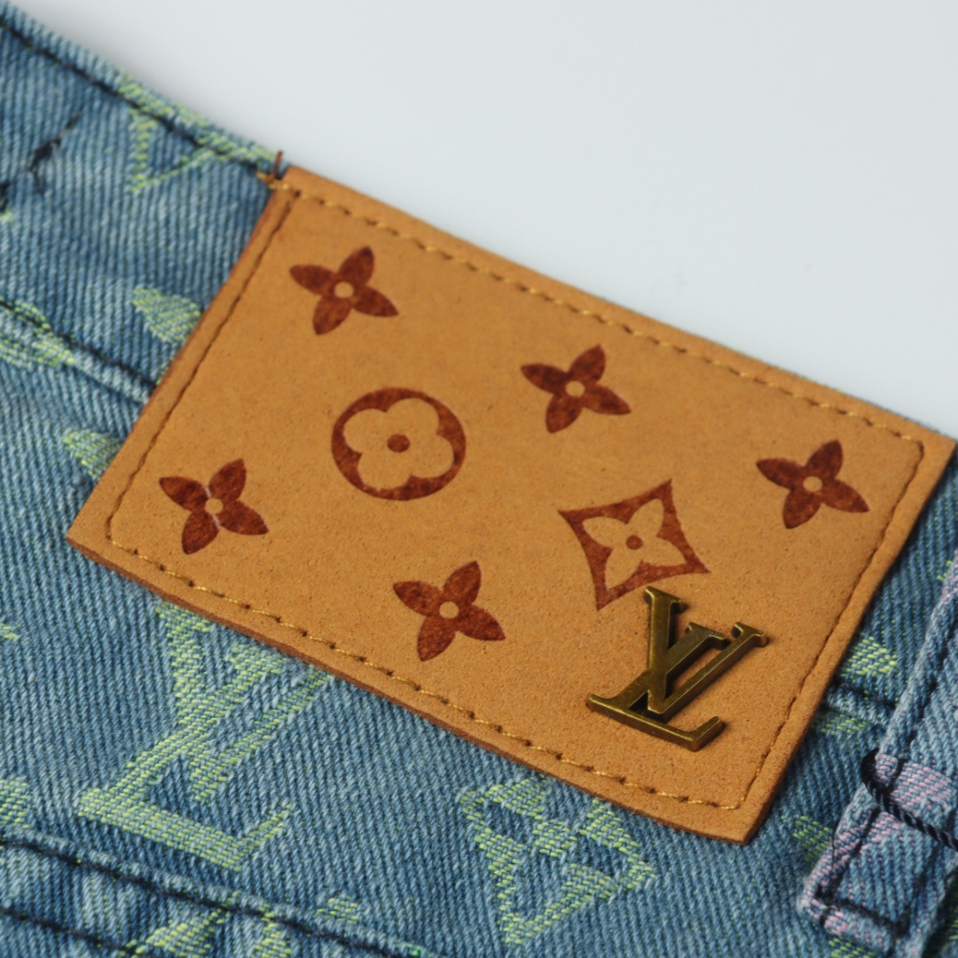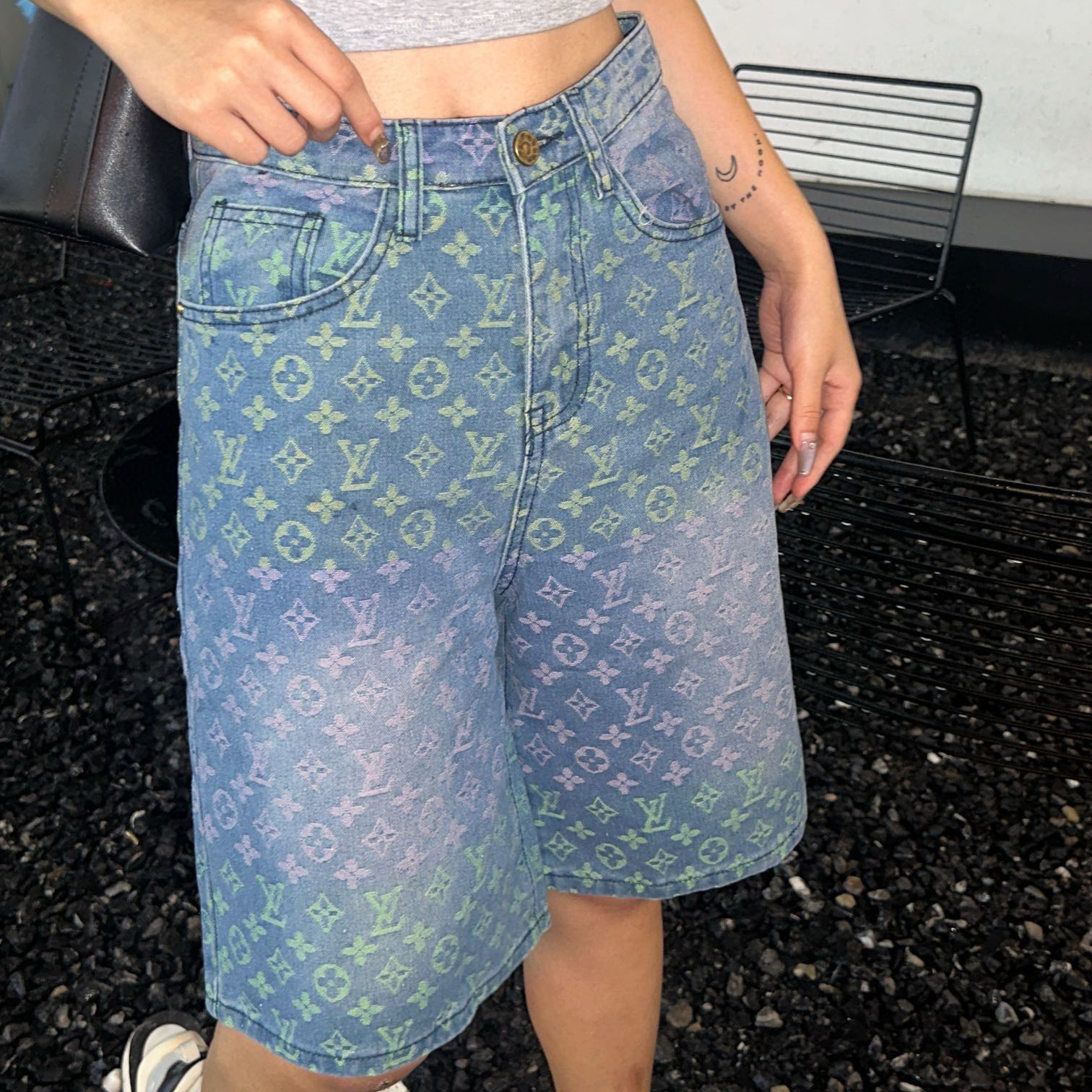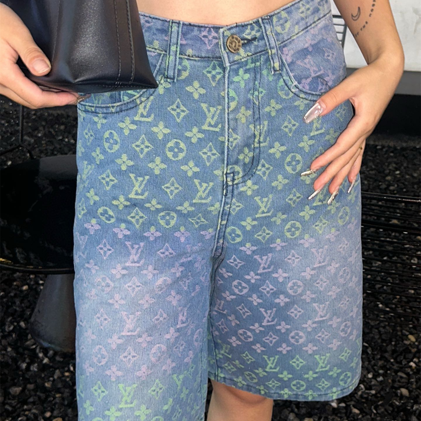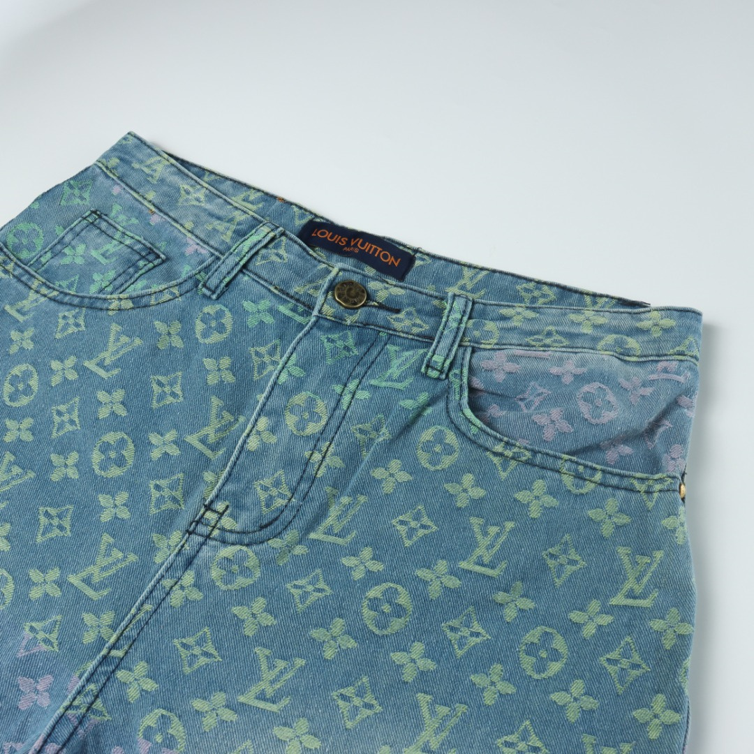 VUITTON/路易威登滿印漸變牛仔短褲.男女同款全新美學靈感趣味設計,渠道性質精品.讓整體造型設計更加優雅時尚,今夏最火繫列,無數明星潮人追捧.裁剪工藝細節處理工整為玩味時尚增添色彩,工整細致,合身的版型構造更是獨具匠心,上身不僅有著出彩的辨識度更是減齡青春.一款穿著意義還有穿搭性能都很極致的款式,絢麗的色繫調配,此款的工藝必然也是極致非凡,上身的舒適度絕對足夠的強大,也是奢品本質的一種彰顯.柔軟輕薄,觸感更是極端撩人,透氣性能十分之強大,尤為適合春夏季節的穿搭所需,妥妥的穿著享受,併且各處的細節以及織帶的工藝都是盡善盡美,更顯高級感,可與配套短褲搭配.