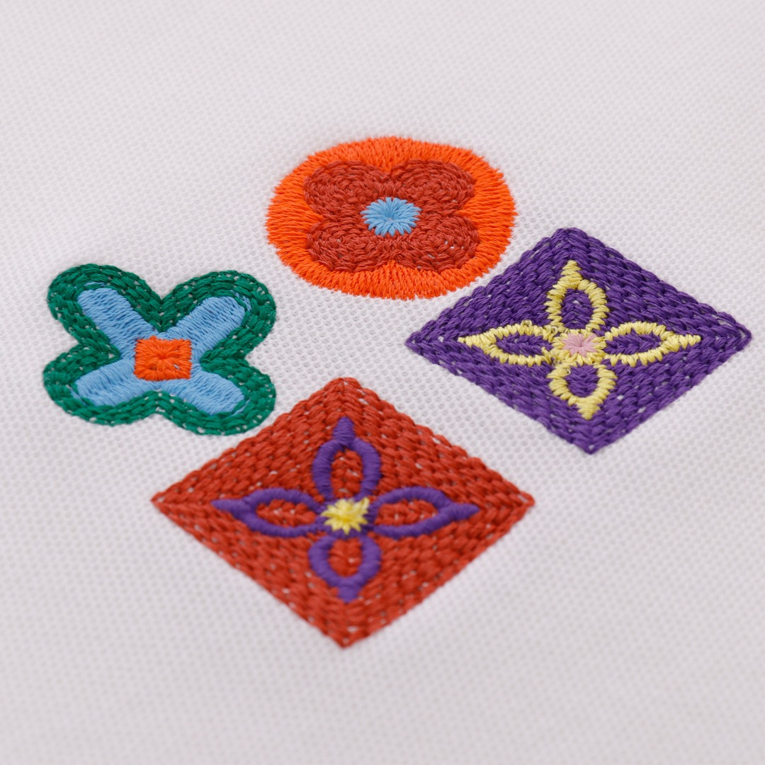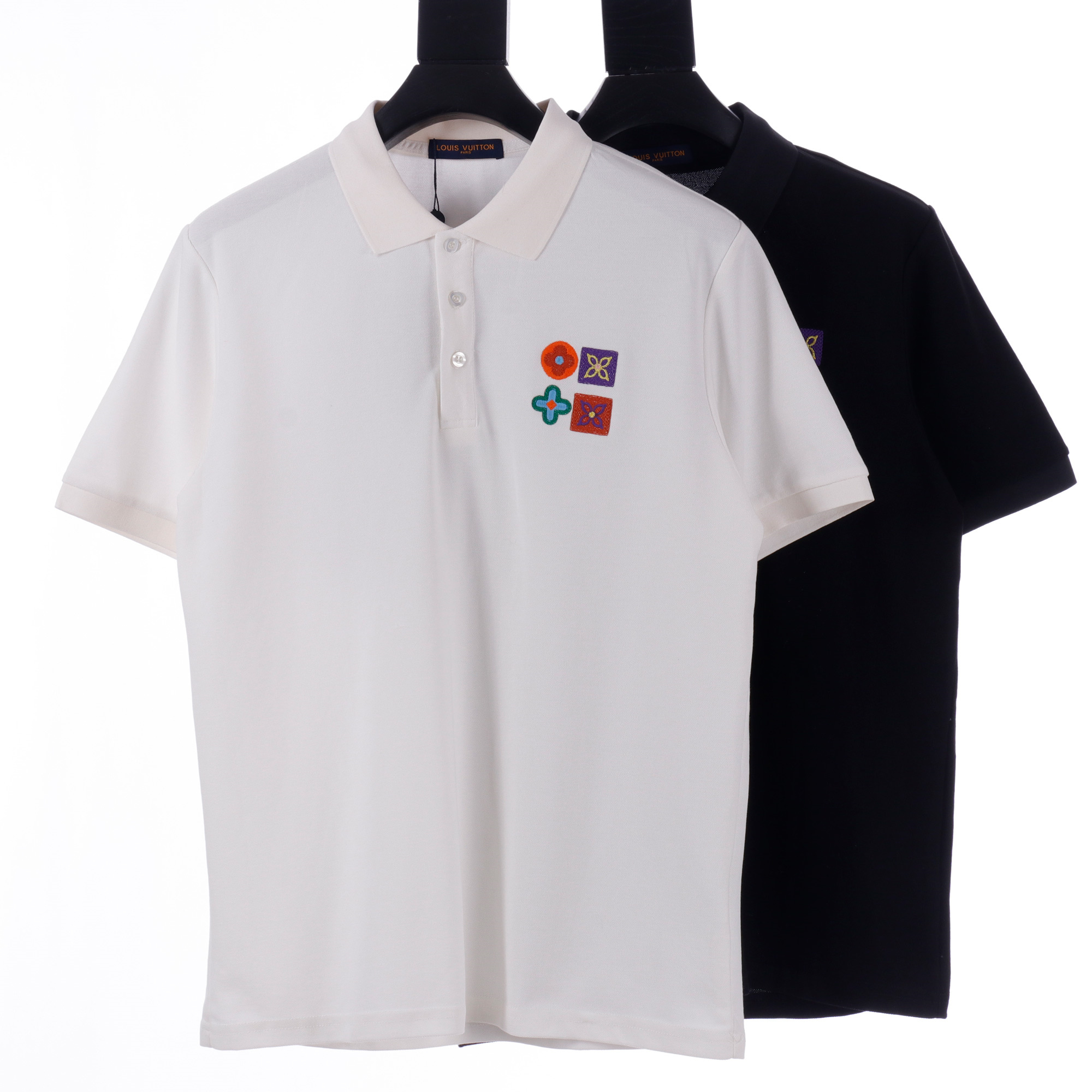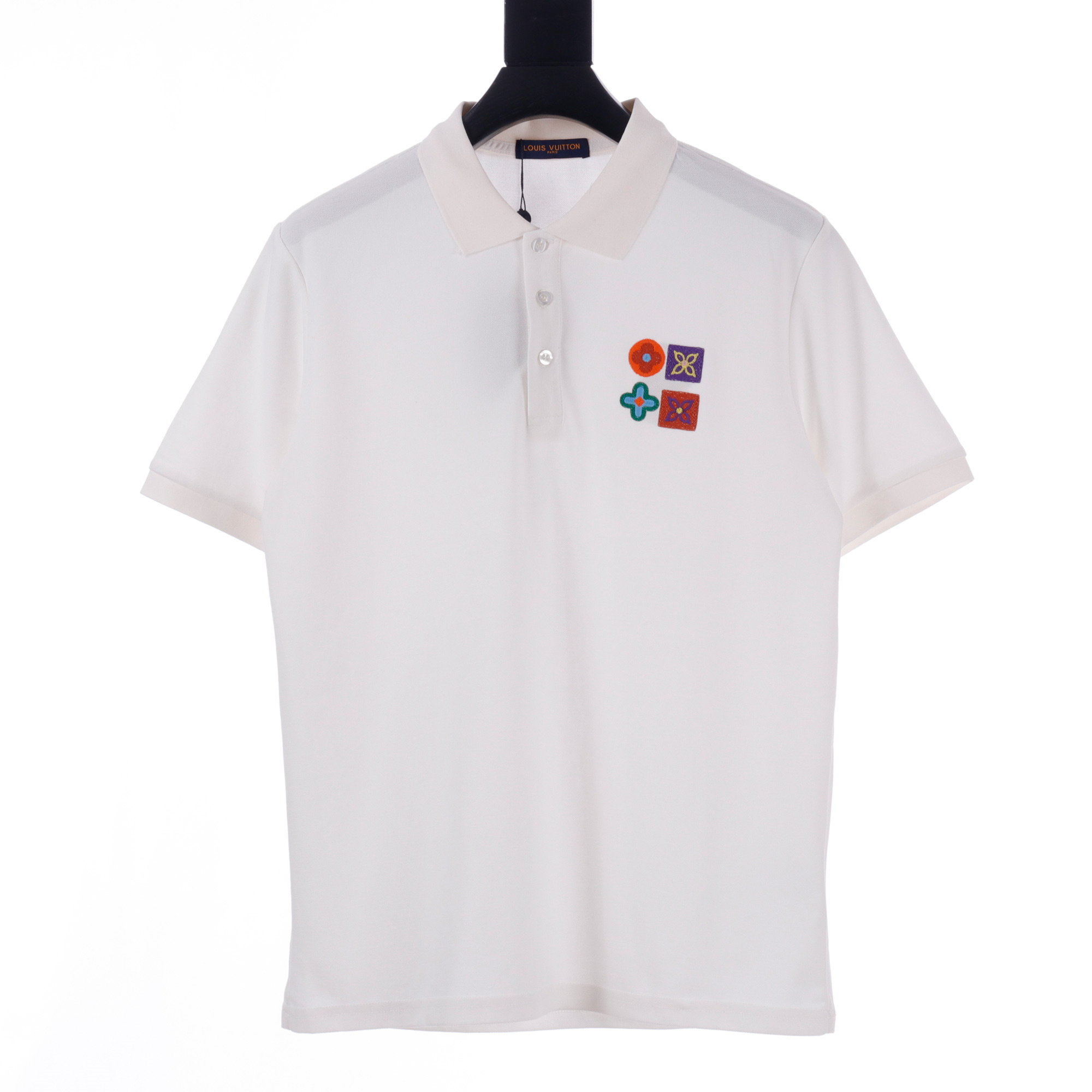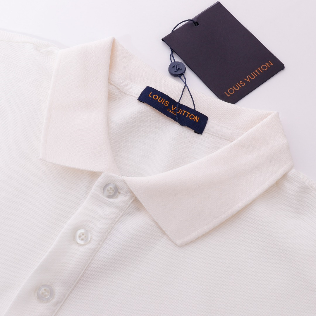 Vuitton路易威登23SS系列彩標刺繡徽章短袖POLO衫,專用面料220g蜂窩珠地棉,前後立體高密榻榻米繡花,無毛邊.定制天然貝殼紐扣,衣服設計前短後長,下腳打棗,全部原生佈捆邊,前胸雙層面筒,無明線,無散口.袖口前胸筒底,肩縫包骨,全部還原原版.