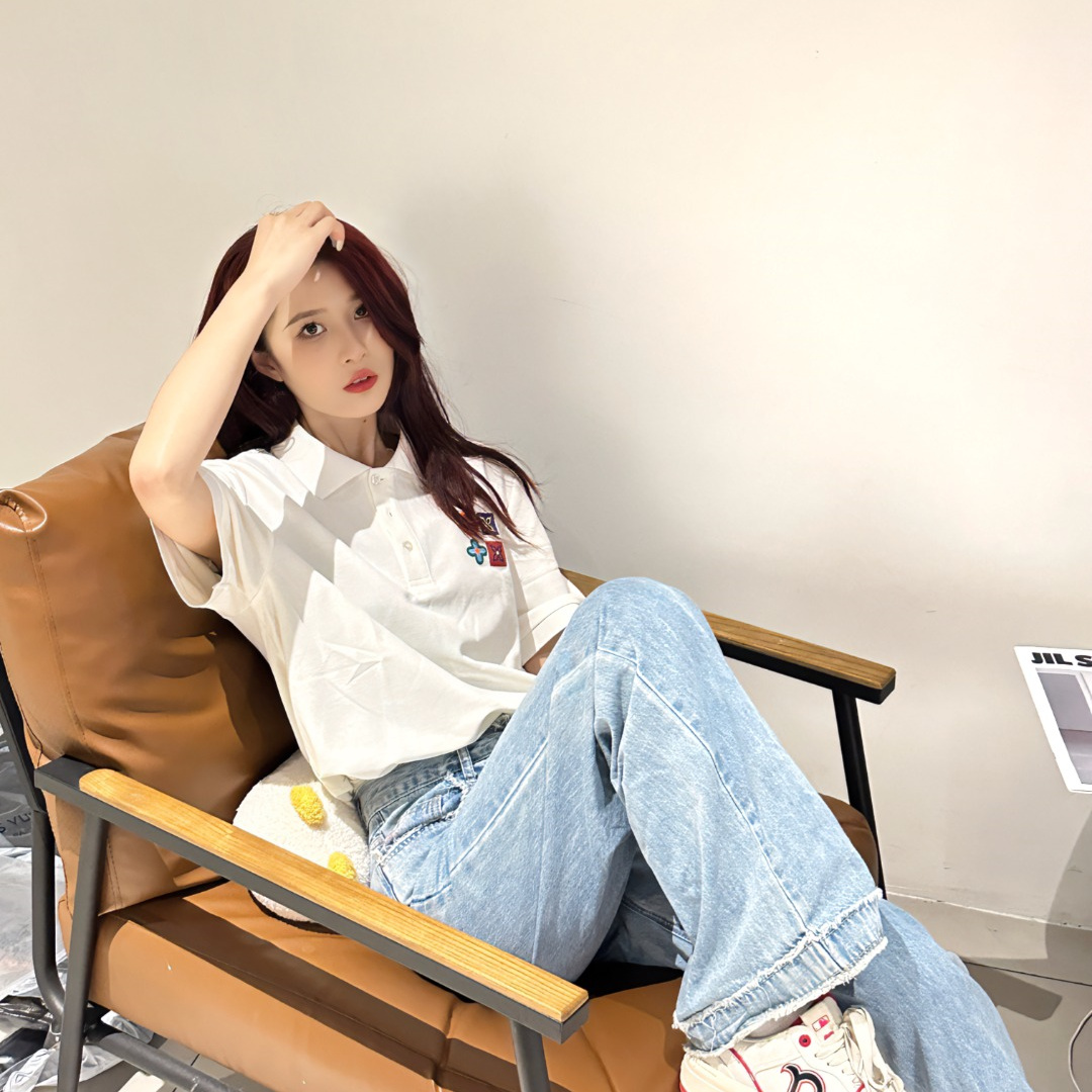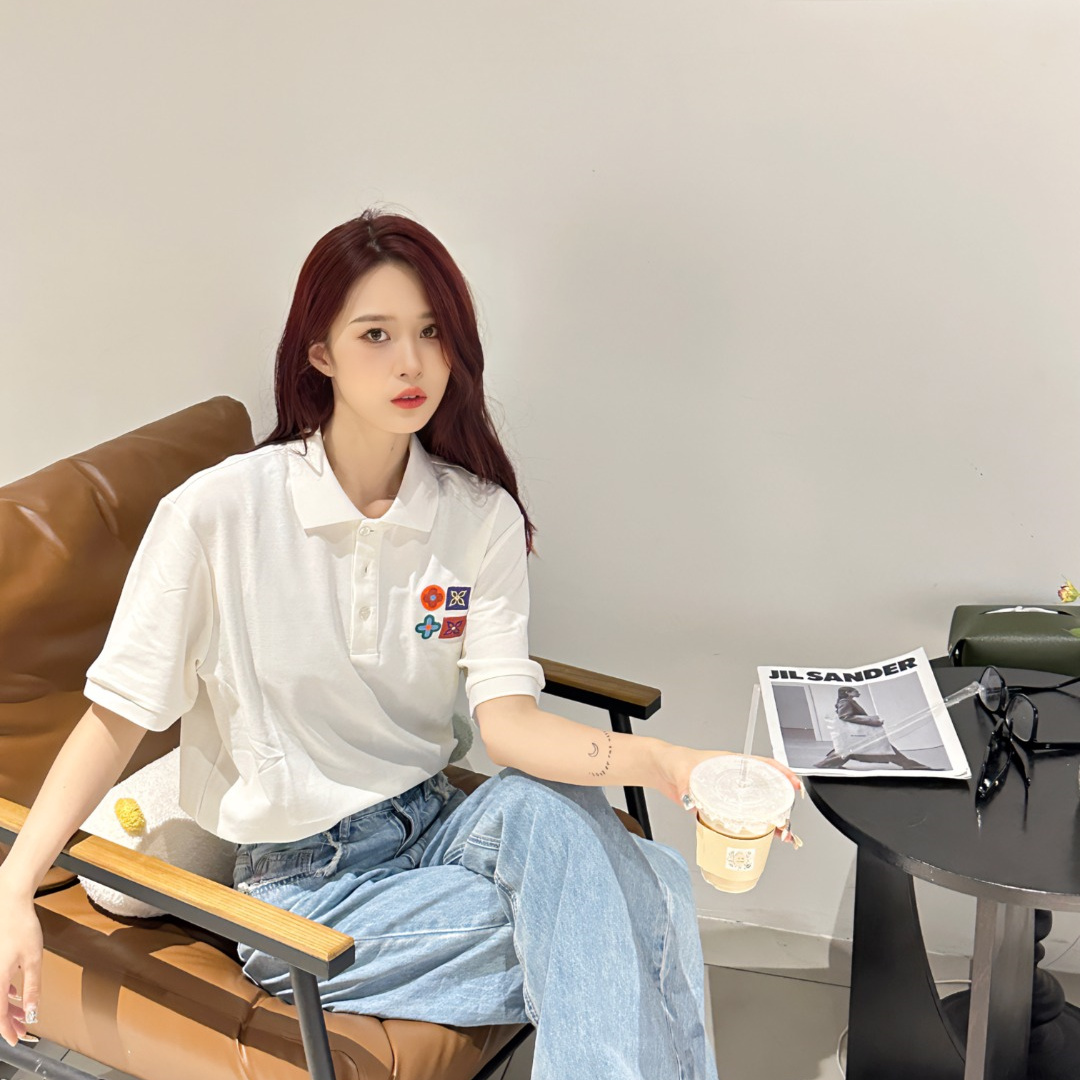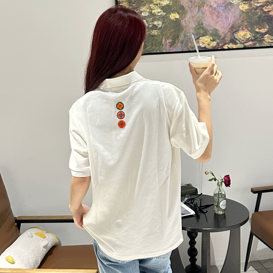高仿LV*SS23系列1AFR0036彩標刺繡POLO衫白色