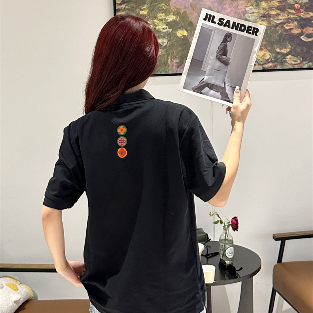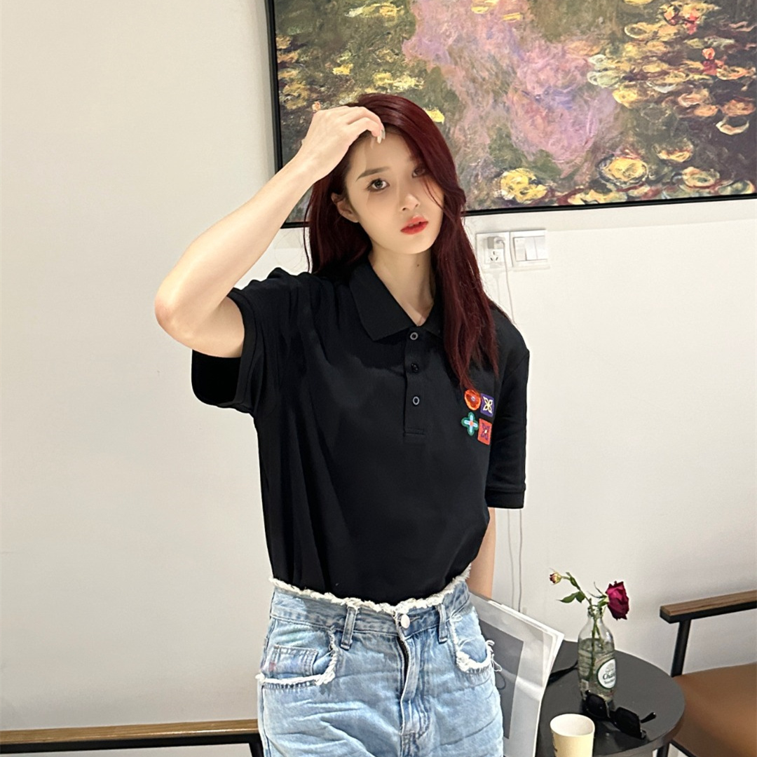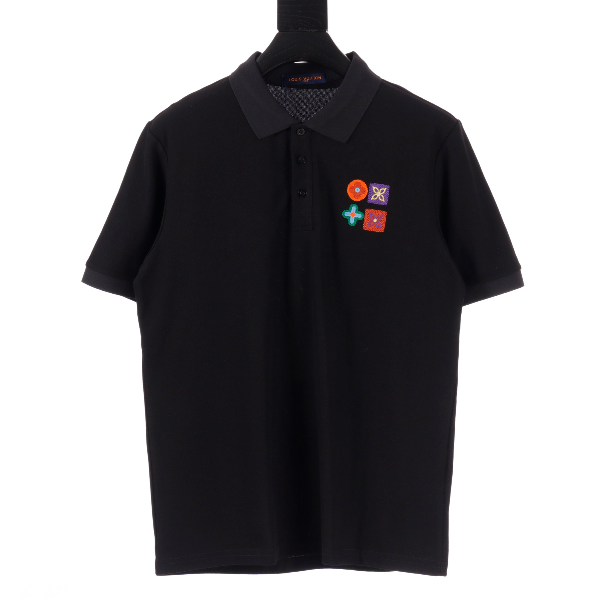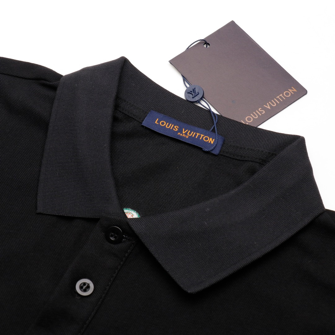 Vuitton路易威登23SS系列彩標刺繡徽章短袖POLO衫,專用面料220g蜂窩珠地棉,前後立體高密榻榻米繡花,無毛邊.定制天然貝殼紐扣,衣服設計前短後長,下腳打棗,全部原生佈捆邊,前胸雙層面筒,無明線,無散口.袖口前胸筒底,肩縫包骨,全部還原原版.
