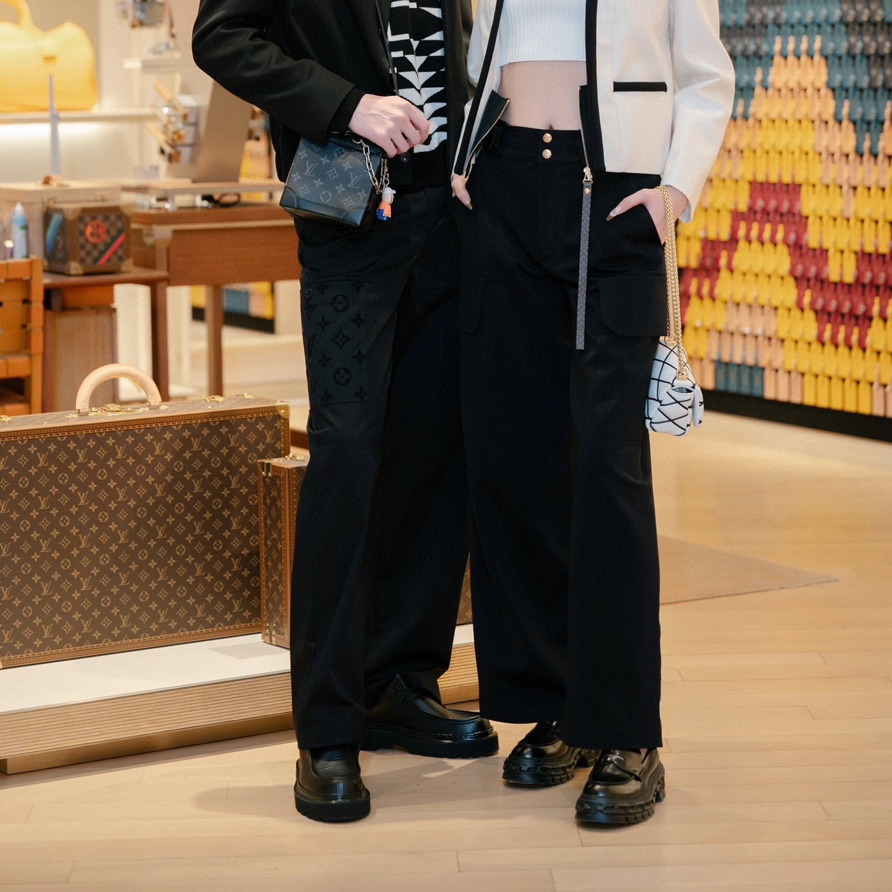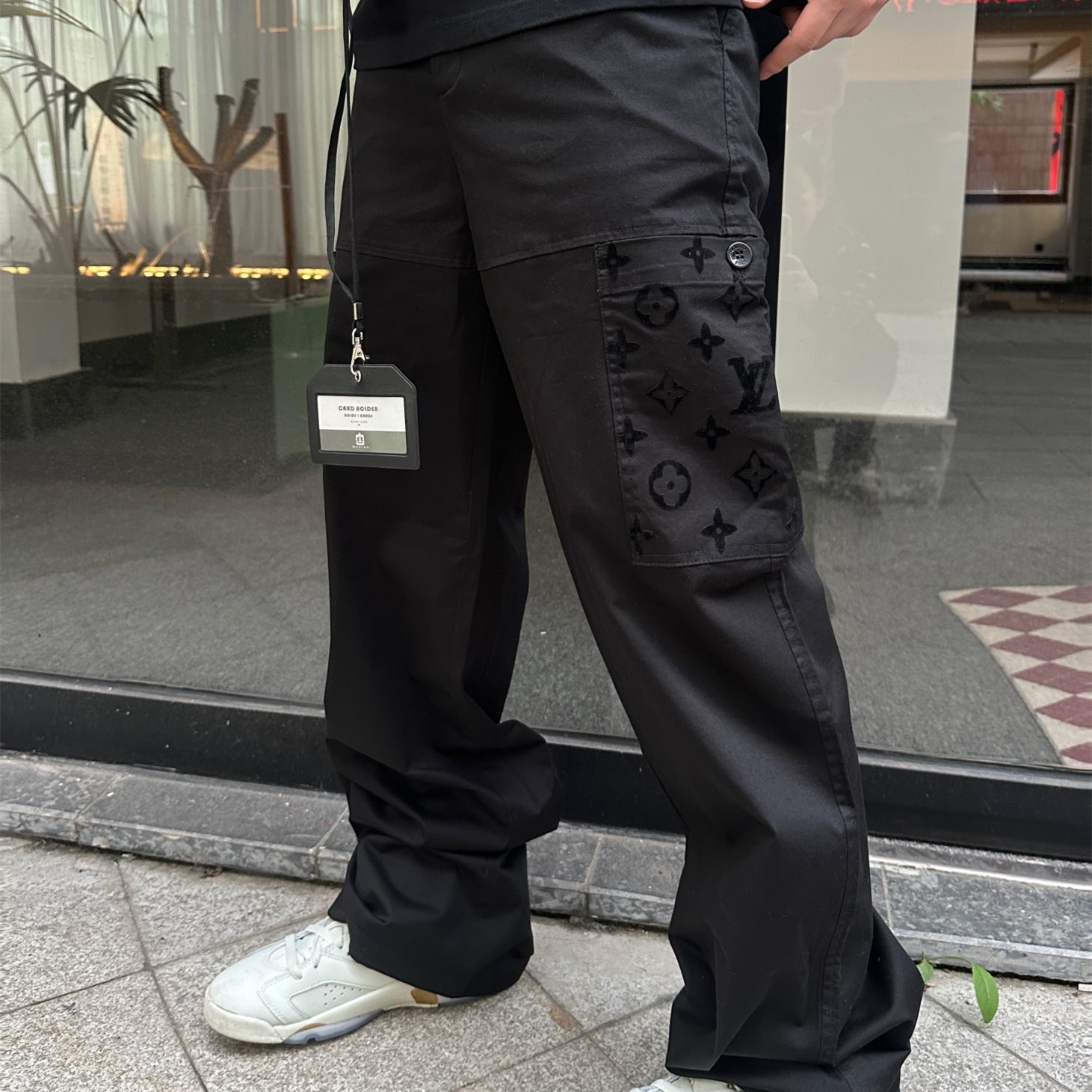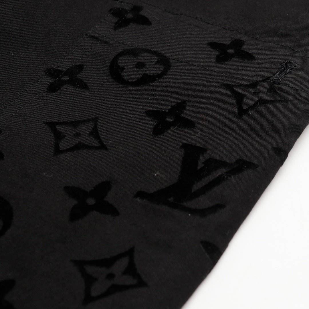 LOUIS VUITTON24新款 老花口袋植絨工裝長褲.采用270克精疏棉斜紋布,進口機3D植絨印花,通過纖維短絨植絨圖案粘著到織物表面,做工繁瑣覆雜,貼袋處立體裁剪通過分割折疊後裁剪出布樣,中孝洗,寬松版型.