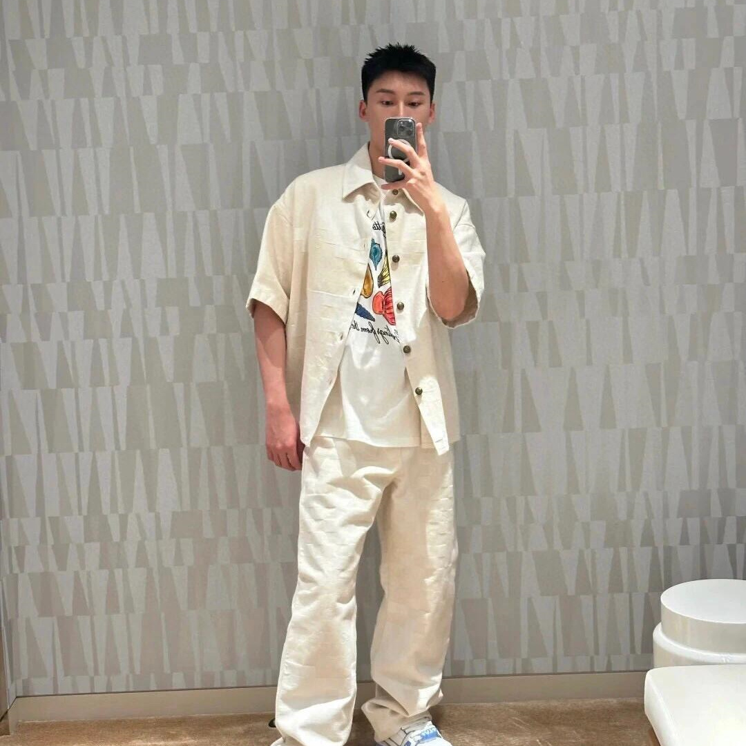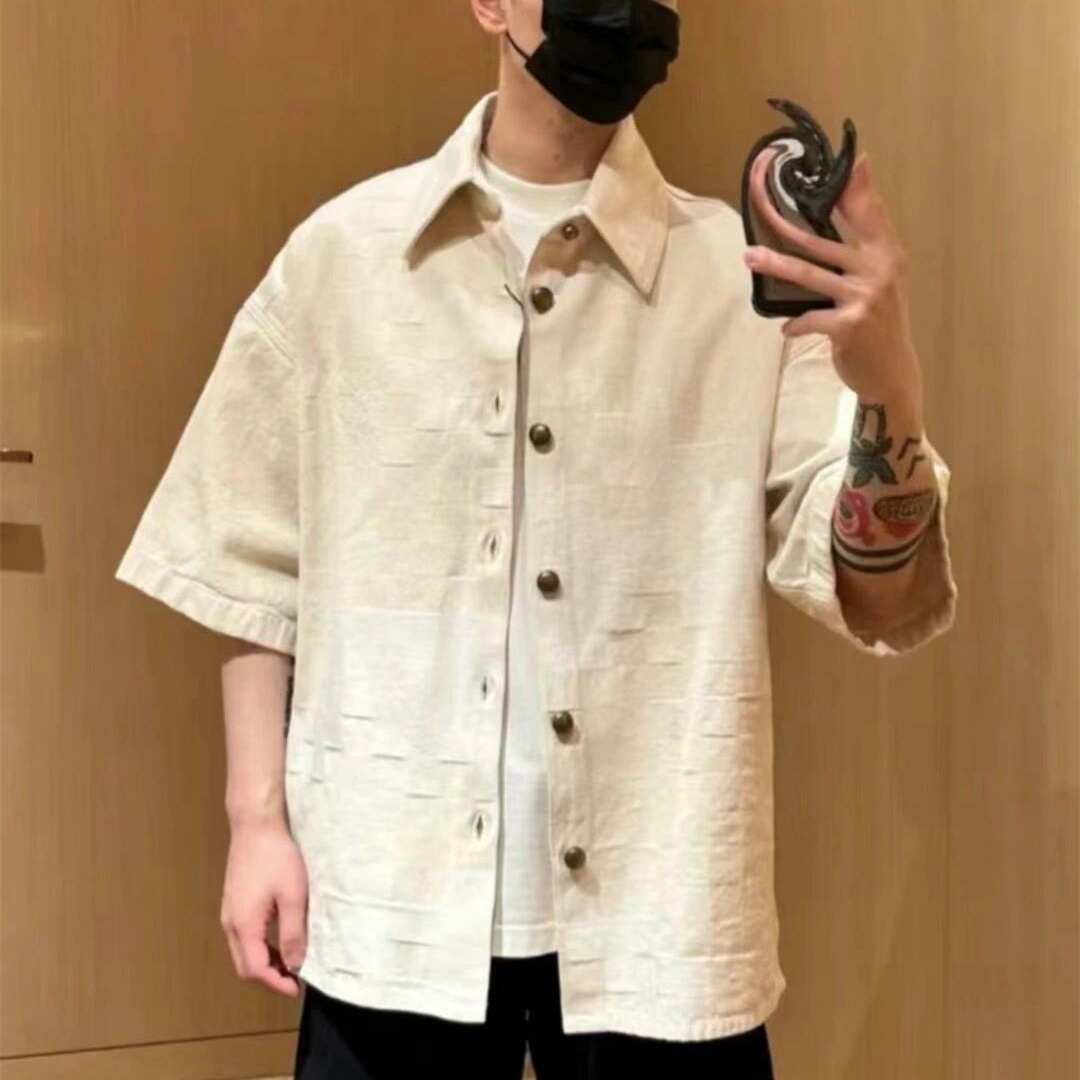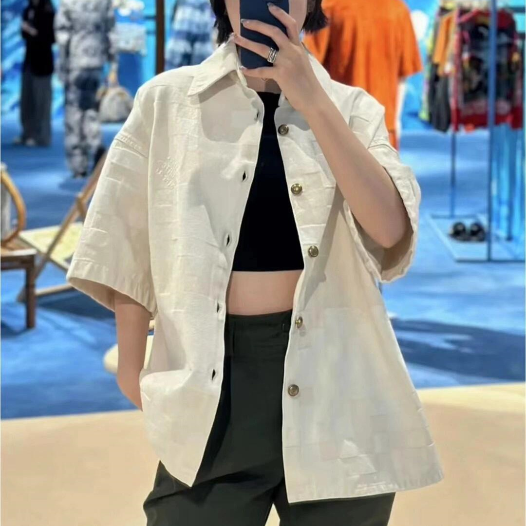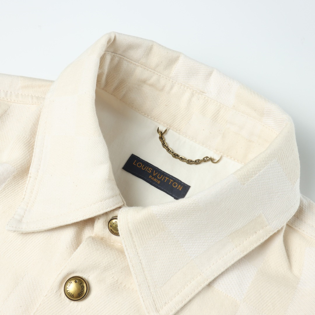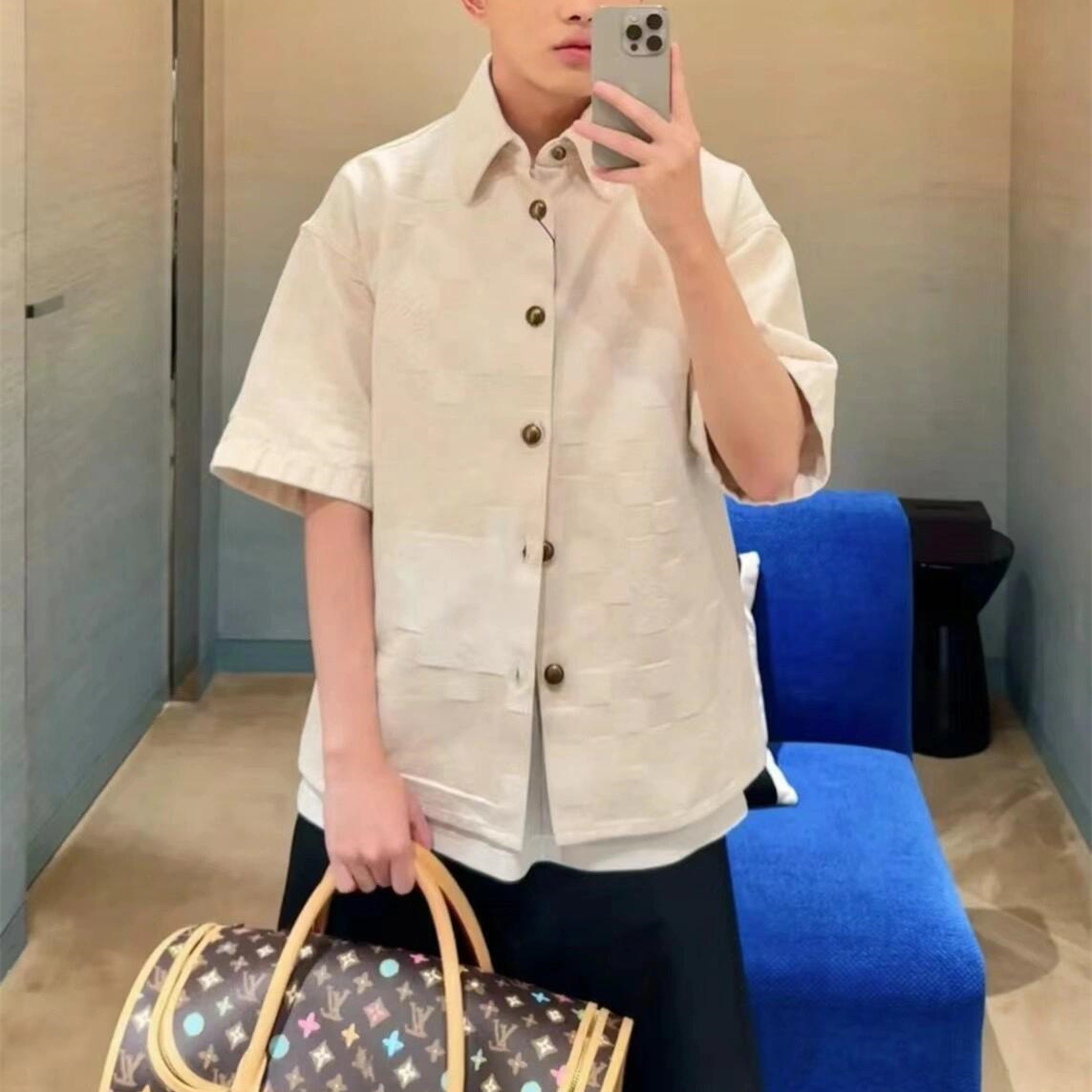 高仿LV*SS24系列1AFQZJ格子刺繡短袖襯衫米色