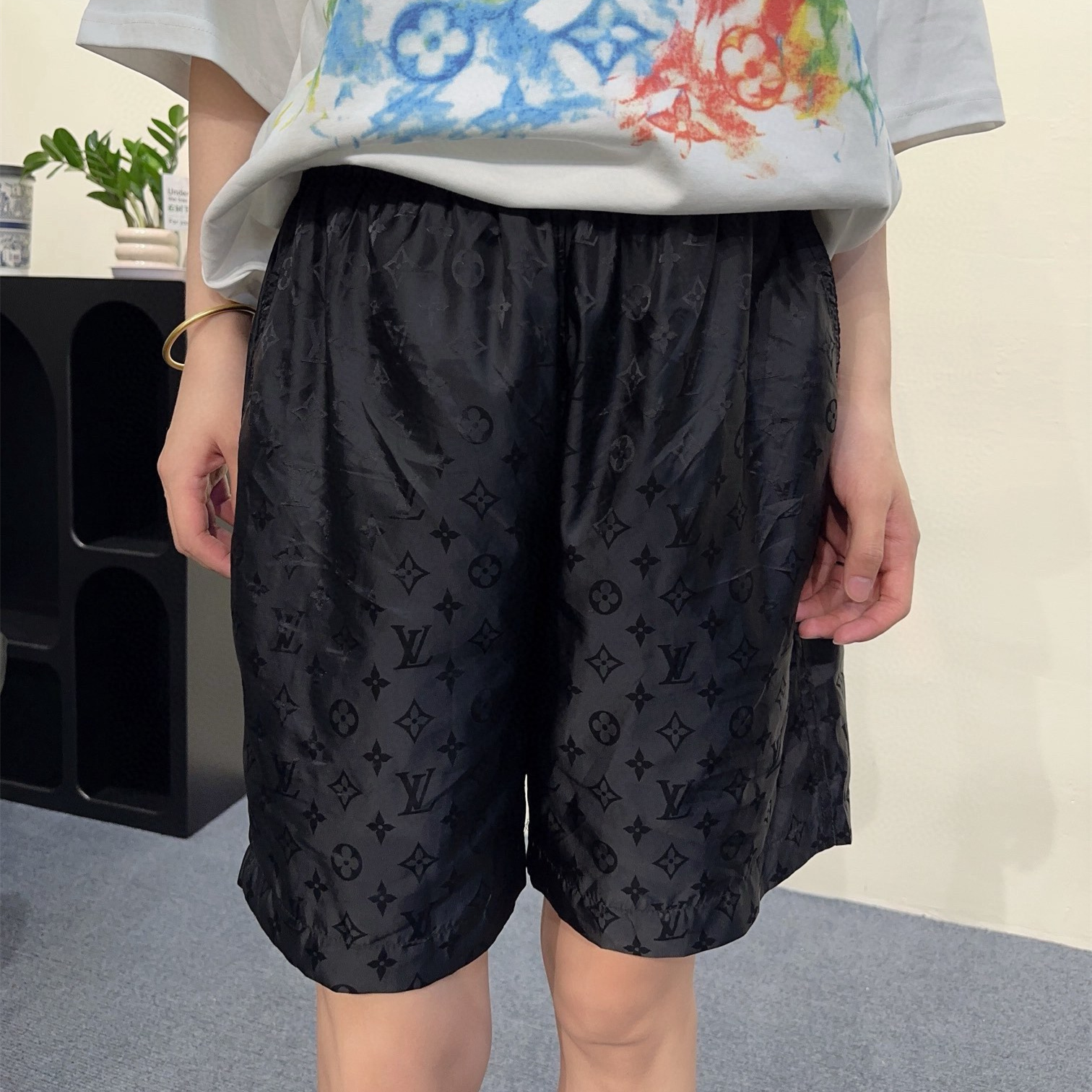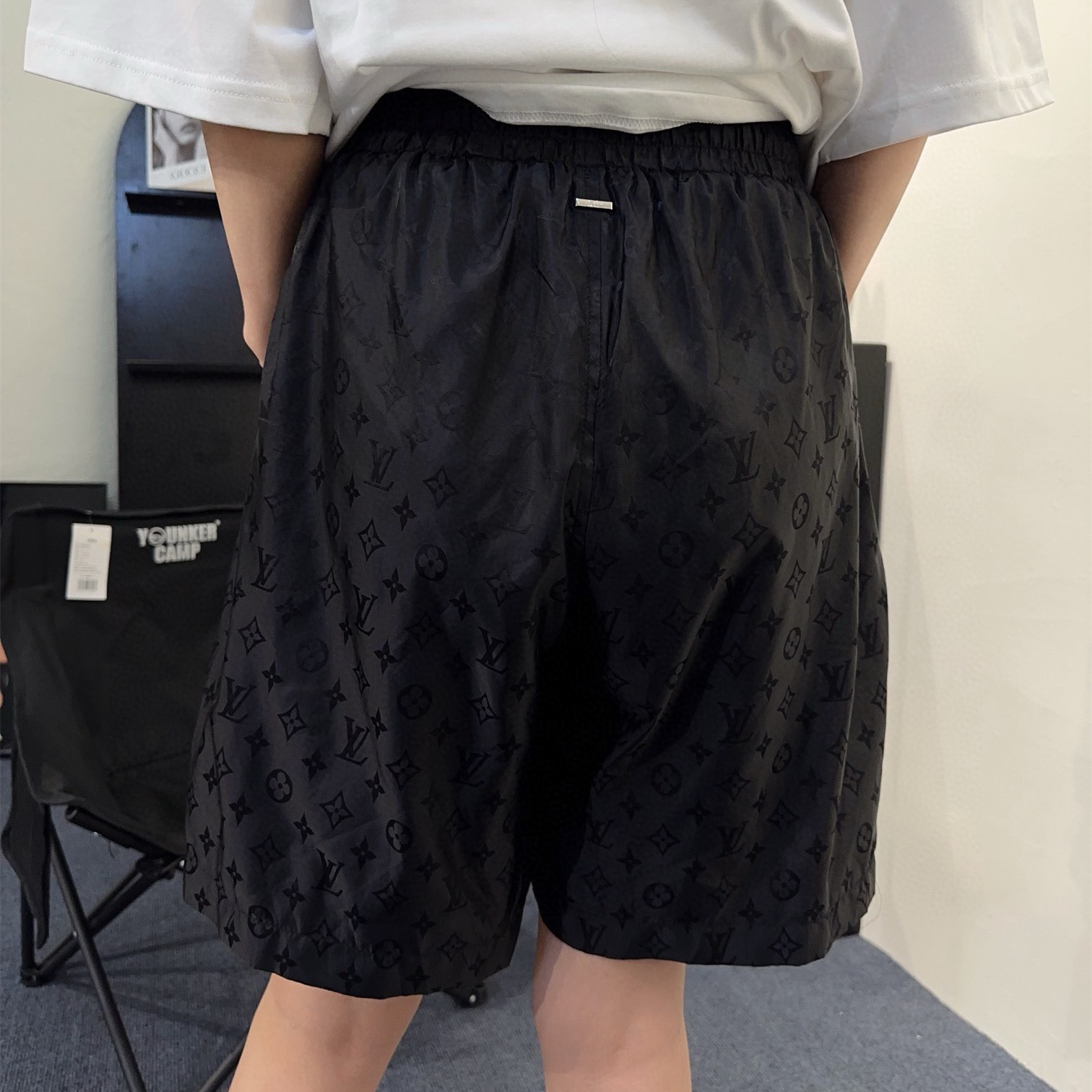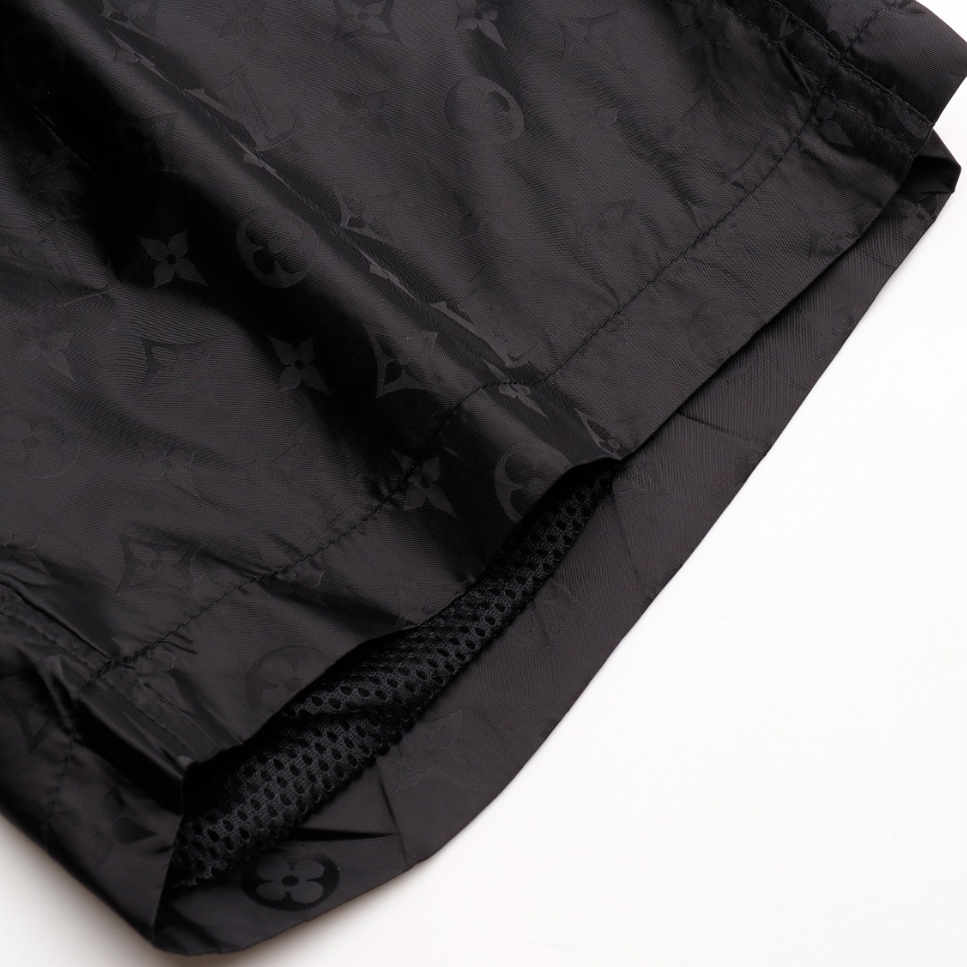 Louis Vuitton經典滿印暗紋老花沙灘短褲.高密絲綢提花面料,百分百覆刻.褲身采用立體剪裁縫紉工藝,內襯全錦網眼,後幅標志性LVSE訂制五金,細節還原高達99%.全套吊牌,主嘜,輔料,1:1原版開模,寬松版型,男女同款.