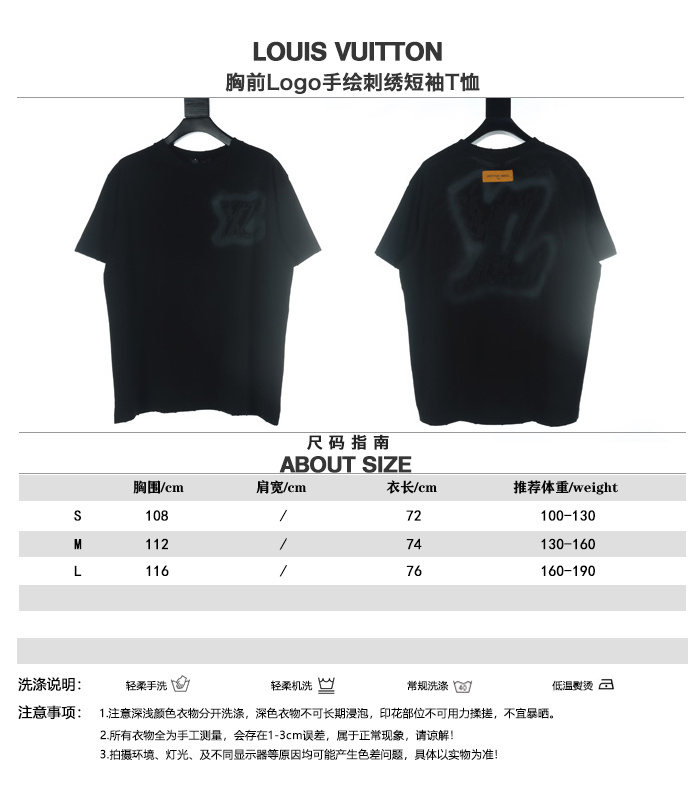/ 高仿LV*SS24系列1AFR0014手繪刺繡短袖黑色